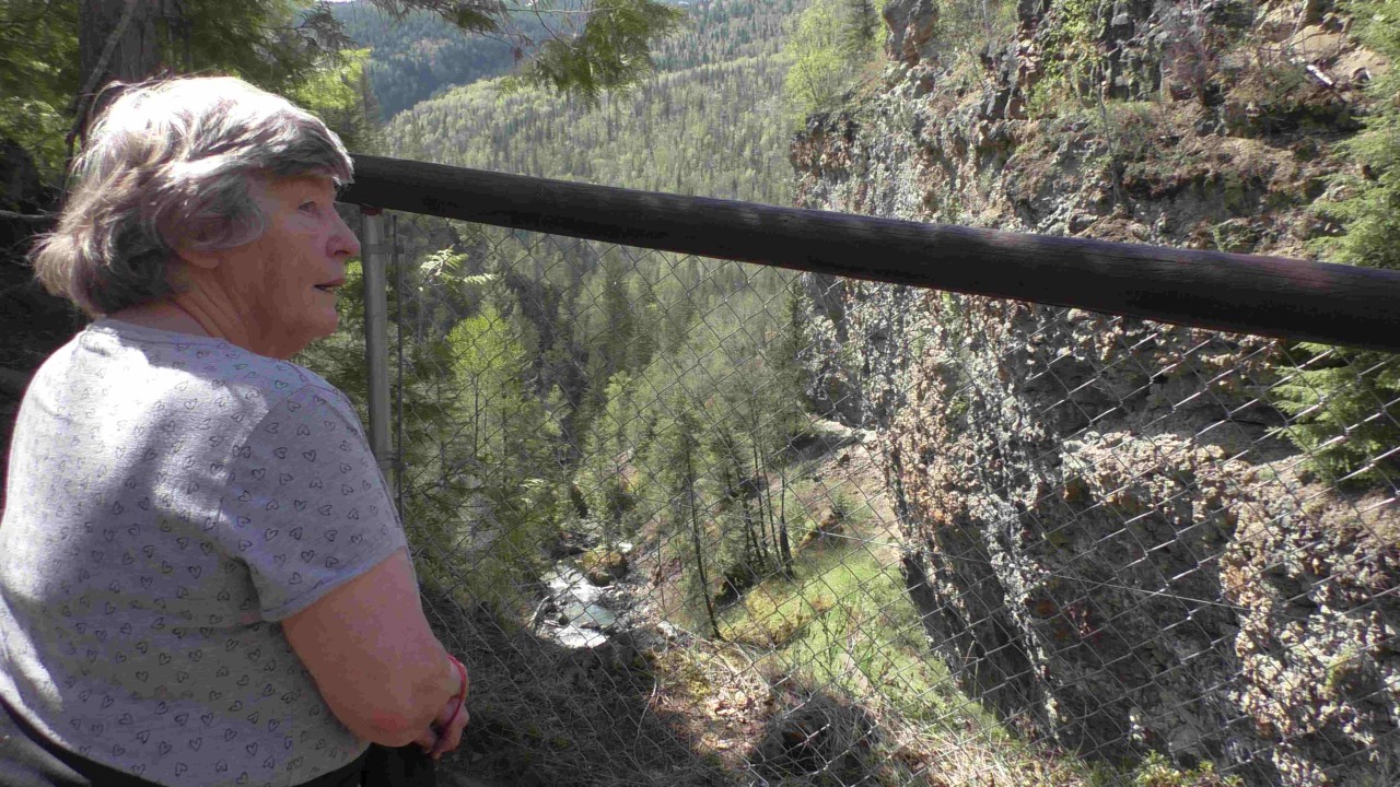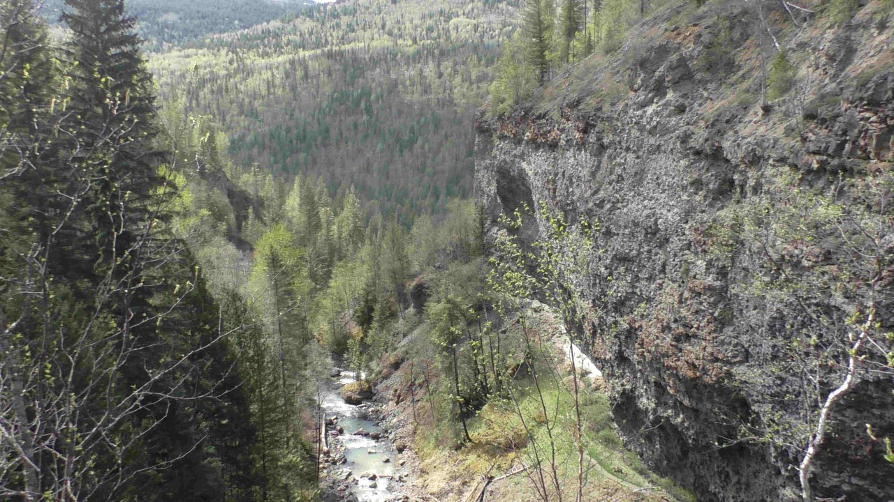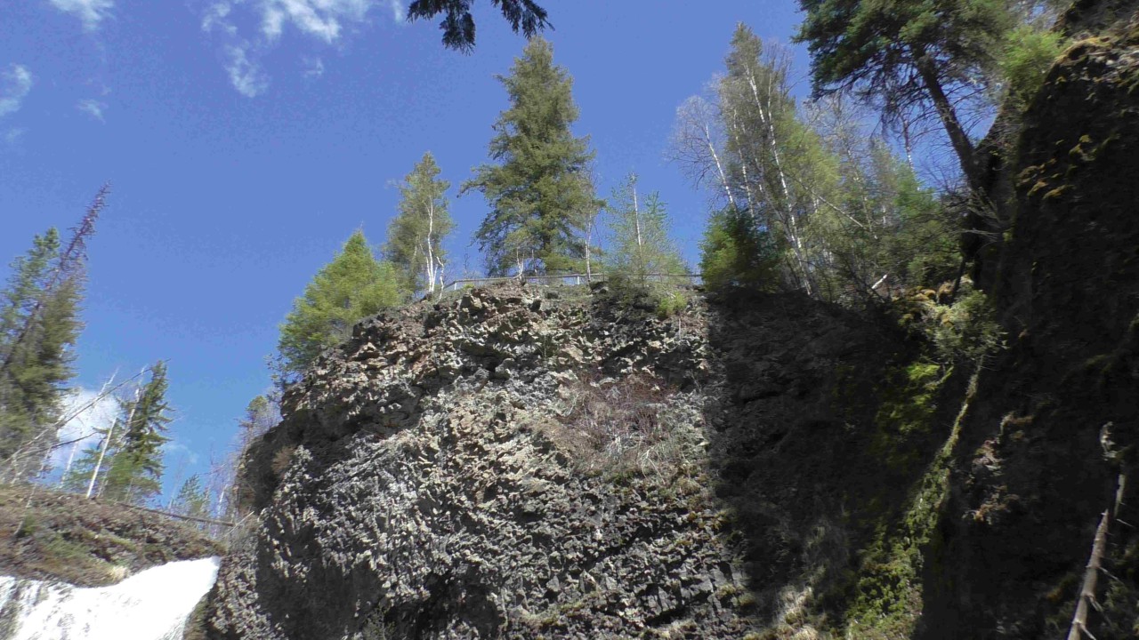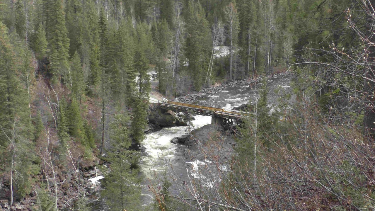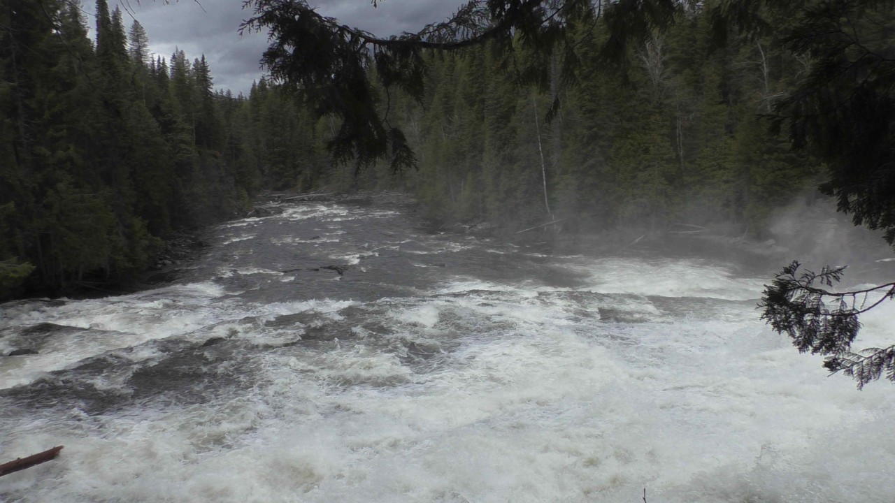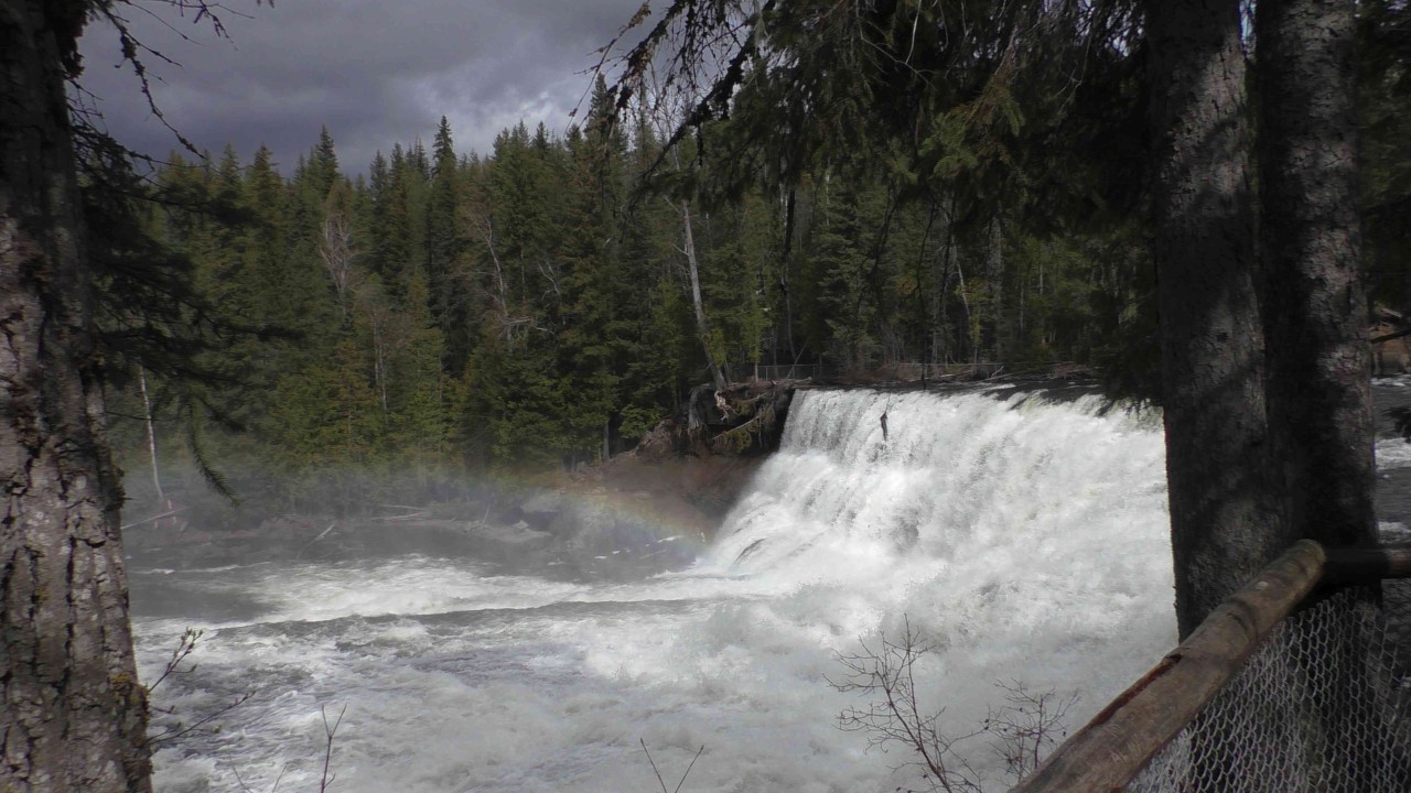 We rijden naar de ingang van Grey Wells Provicial Park, we hebben helaas geen goede kaart waarop precies de trails en de watervallen zijn, maar ik weet er nog een paar van 5 jaar geleden en ook hebben we nog een foto gemaakt van het infobord aan het begin van het park. Internet hebben we in het park niet (we hebben niet eens gsm ontvangst).