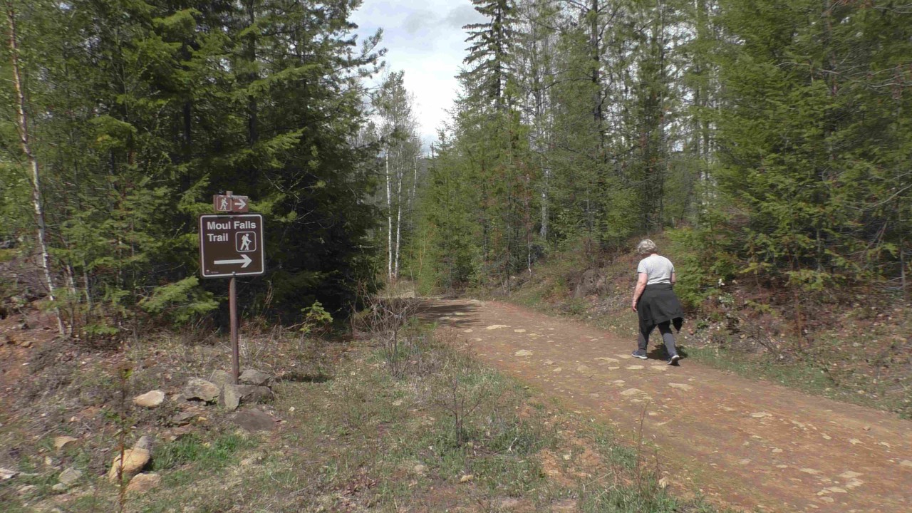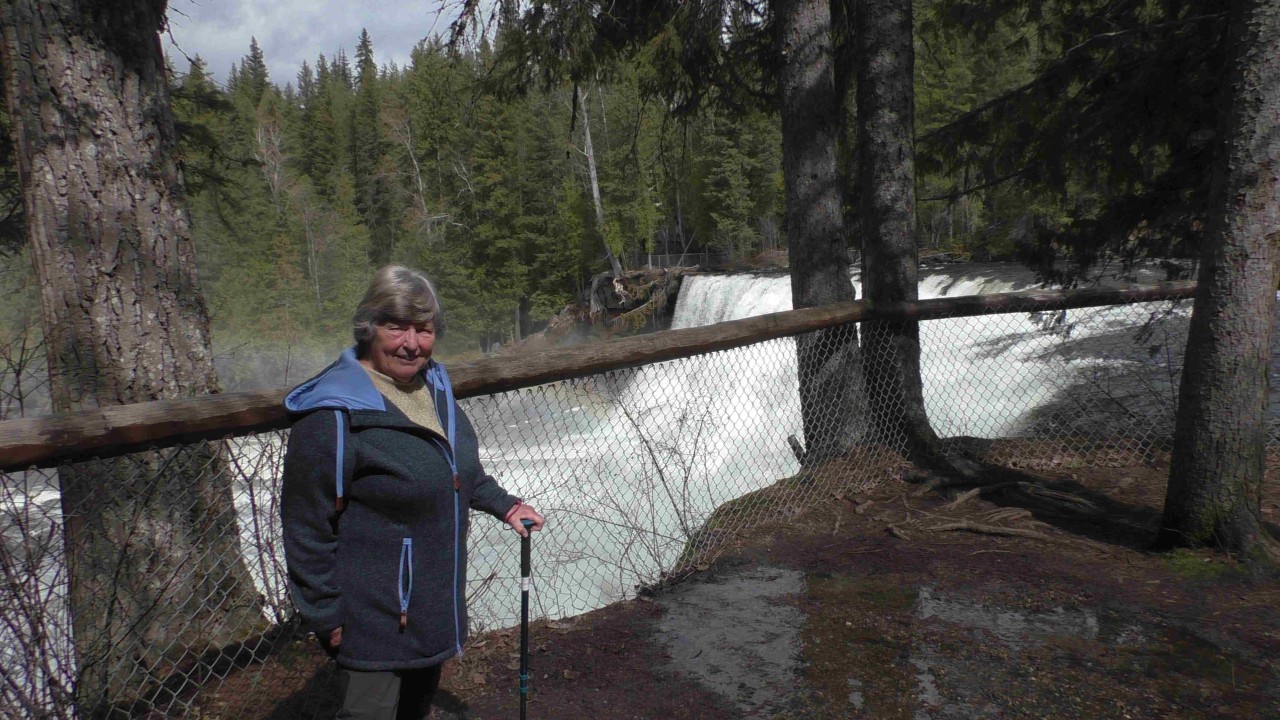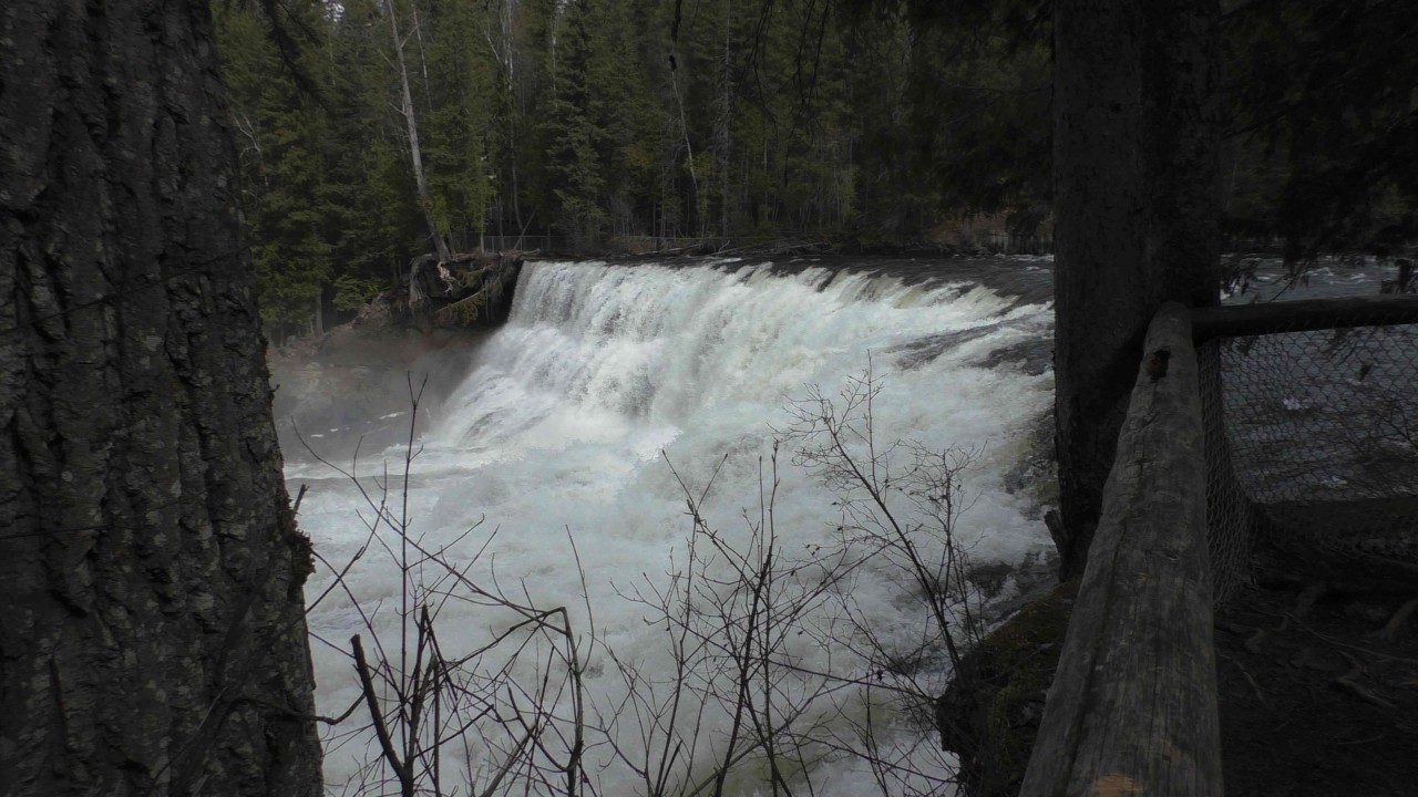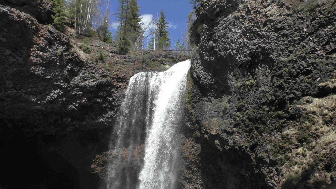 Nu zal iedereen denken die wel eens in Grey Wells is geweest dat de volgende de Spahats Falls zijn, mis, die slaan we over en we nemen de Moul Falls, deze waterval is alleen maar bereikbaar via een een hike van +/- 3 km (enkele reis). De laatste meters van de trail zijn wel steil, maar je kan achter de waterval doorlopen. Aangezien de knieën van moeders goed aanvoelen gaan we de uitdaging aan en we moeten zeggen het wat een geweldige trail en de beloning, de waterval. Erg mooi. Nu weer 2.9 km terug………;-)