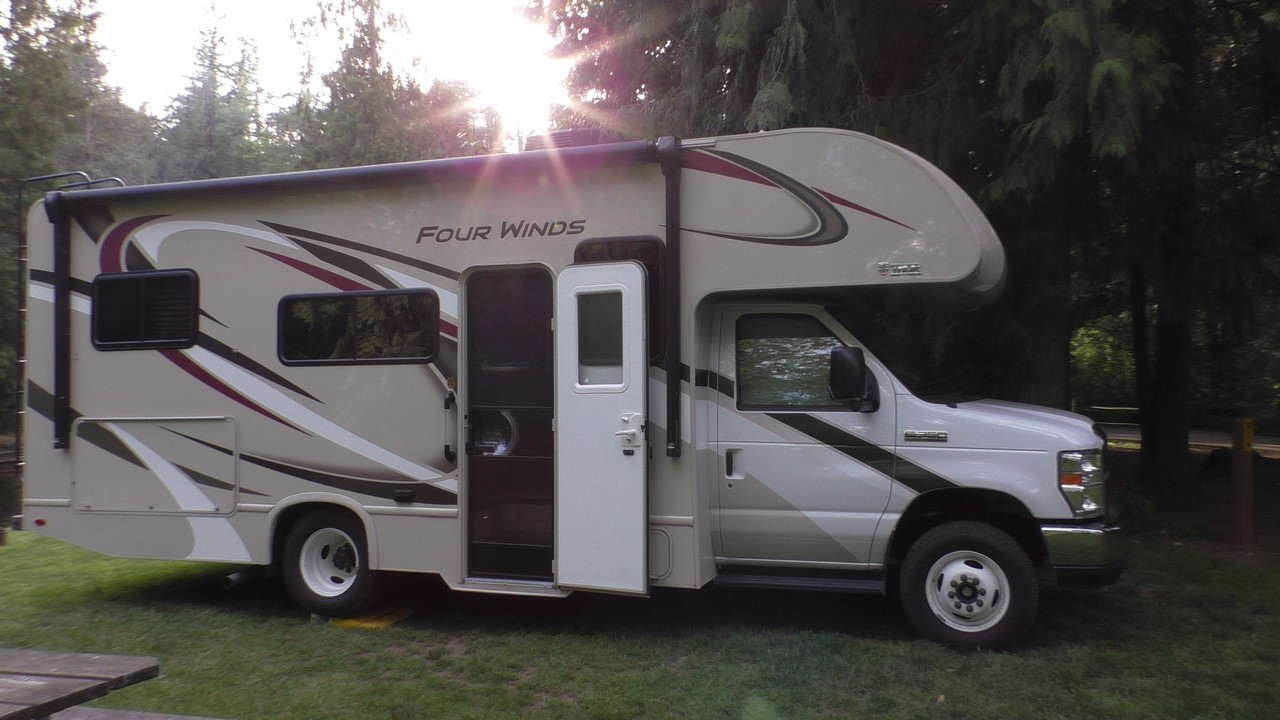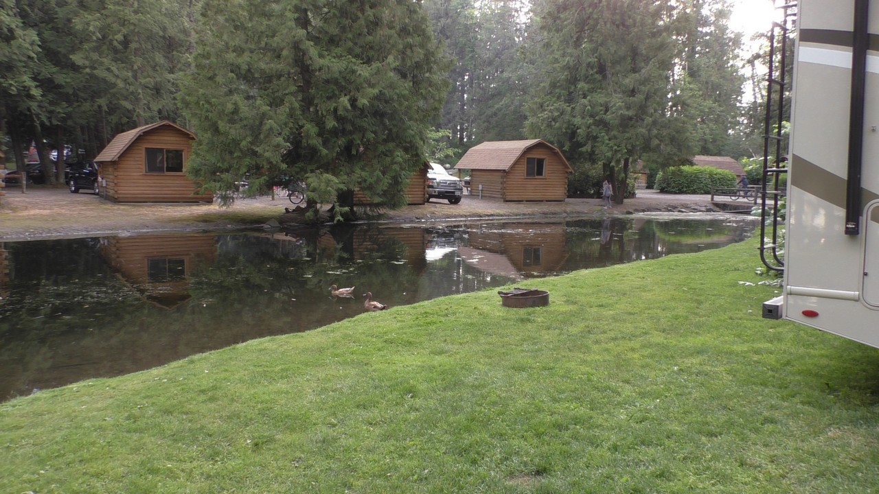 Op de taxi standplaats de Uber app. geactiveerd en prompt 12 minuten later kwam de taxi voorrijden en bracht ons ook vlot naar de camper verhuurder Road Bear. Eigenlijk hadden we pas een afspraak op 11.00 uur, maar alles ging zo vlot zodat we al iets over 9.00 uur binnen stapte. We hebben de situatie uitgelegd en ze vonden het bij Road Bear helemaal niet erg en zijn direct begonnen met klaarmaken van onze camper. De formulieren en andere papieren werden ingevuld en na een rondje uitleg rondom de camper zaten we om 10.00 uur al op de snelweg richting de Walmarkt voor de eerste boodschappen. Na een flinke winkelwagen te hebben volgeladen hebben we op de parkeerplaat van de Walmarkt geluncht. Goed gesterkt doorgereden naar de 1e camping van deze tour, KOA Lynden. Deze is net voor de Canadese grens, die we morgen oversteken om een bezoek te brengen aan Juul Heijblom die net over de grens in Canada woont.
