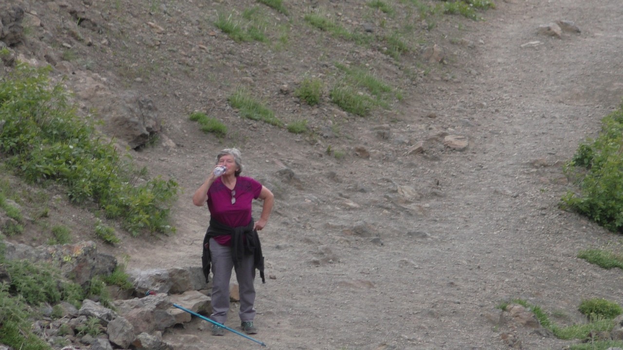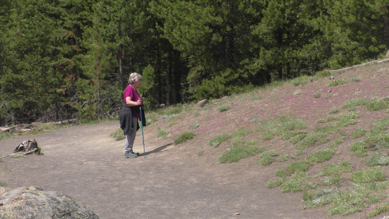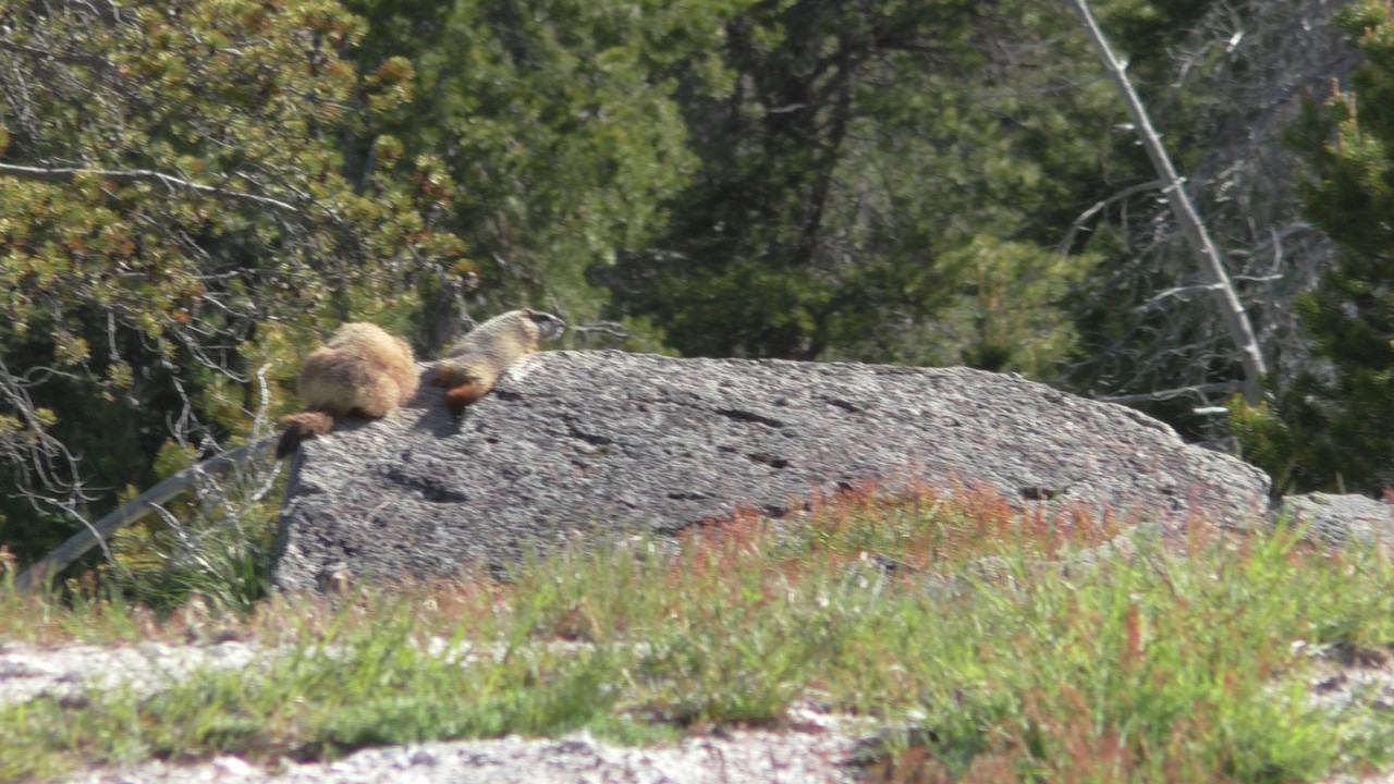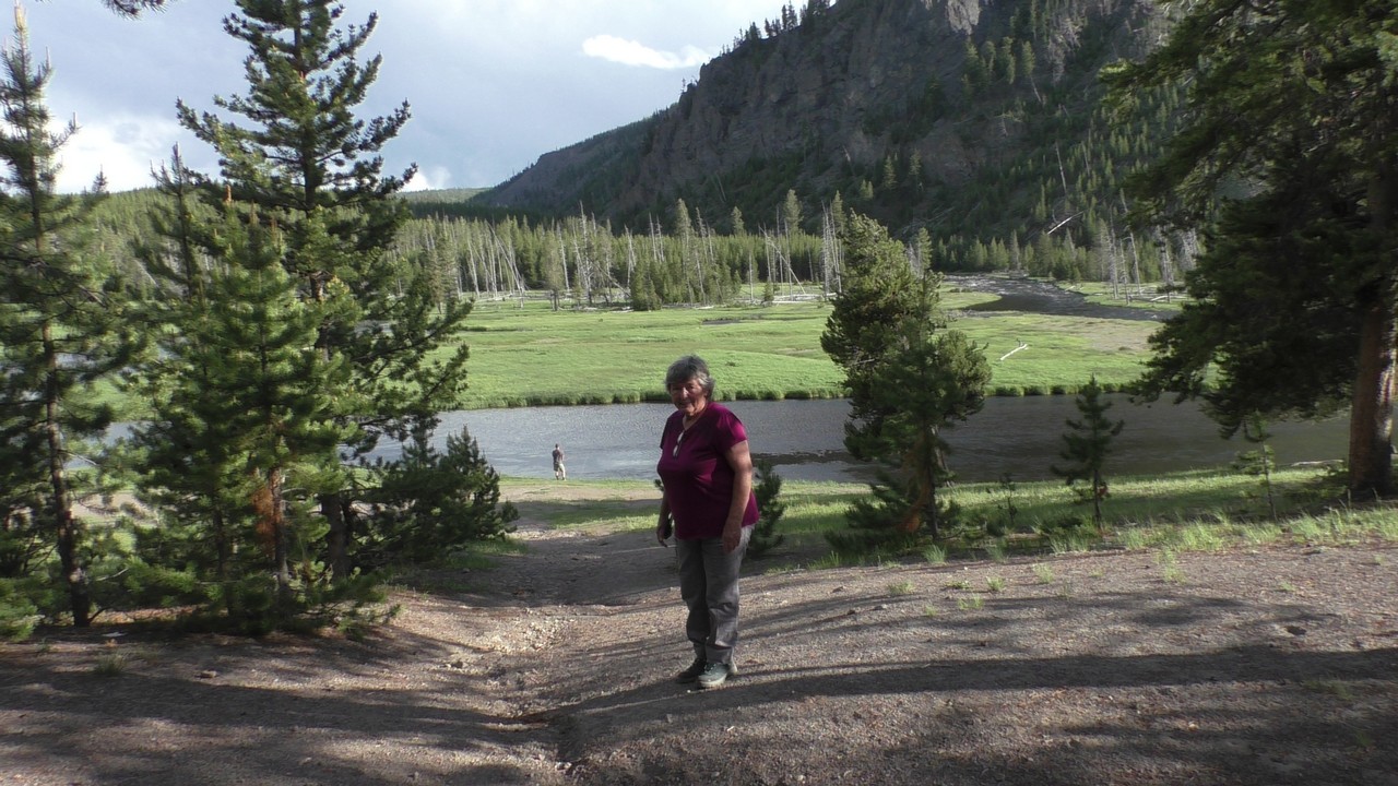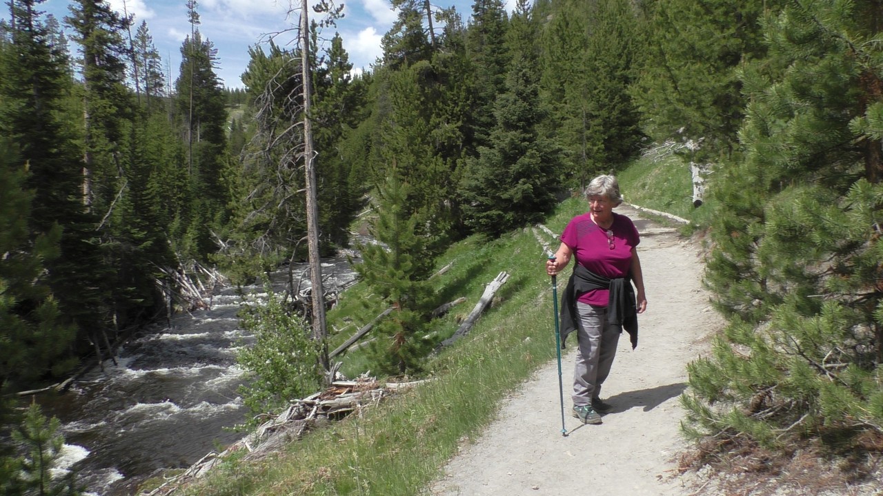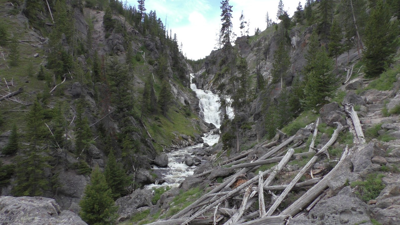 Na de koffie door naar een andere Geiser gebied. Die van de Biscuit Basin. Ook hier de boardwalk trial gedaan, maar halverwege was er en mooie hike route naar de Mystic Falls. Volgens de wandelkaart een 2,4 miles (4 km) (heen en terug), maar zou moderately strenous zijn (redelijk zwaar), maar Moeders voelde zich goed dus wij de stoute “wandel”schoenen aan en de trial op. Nou dit trial viel reuze mee, afgelopen weken hebben we zwaardere hikes gedaan. En zoals gewoonlijk was de trip weer de moeite waard. Een zeer mooi wandelpad met aan het eind een geweldige waterval. Het blijft toch mooi. Onderweg alleen maar wat eekhoorntjes gezien. Helaas nog steeds geen beer…………. Daar we de afgelopen dagen toch wel een aantal routes hebben gelopen waar je zomaar een beer zou kunnen tegenkomen en omdat we de komende dagen ook nog in Bearcountry verblijven hebben we, ook op advies van de Rangers” een beerspray aangeschaft. Dit is een soort peperspray wat je kan gebruiken als er een beer naar je toe zou komen. Uiteraard is het wel belangrijk om eerst de andere maatregelen te hebben gedaan en als laatste alternatief zou je de spray in kunnen zetten. Hopelijk hoeven we hem niet te gebruiken deze vakantie………