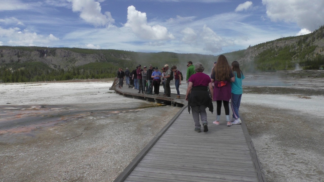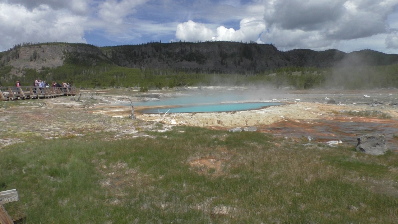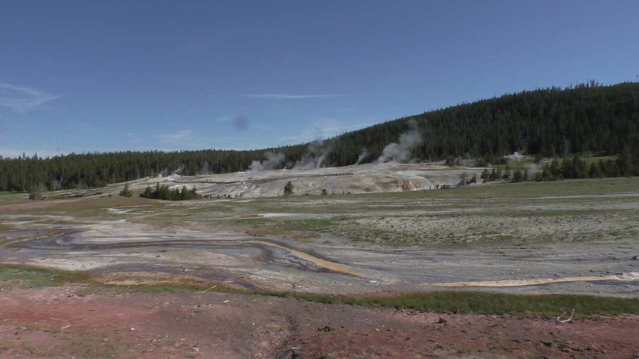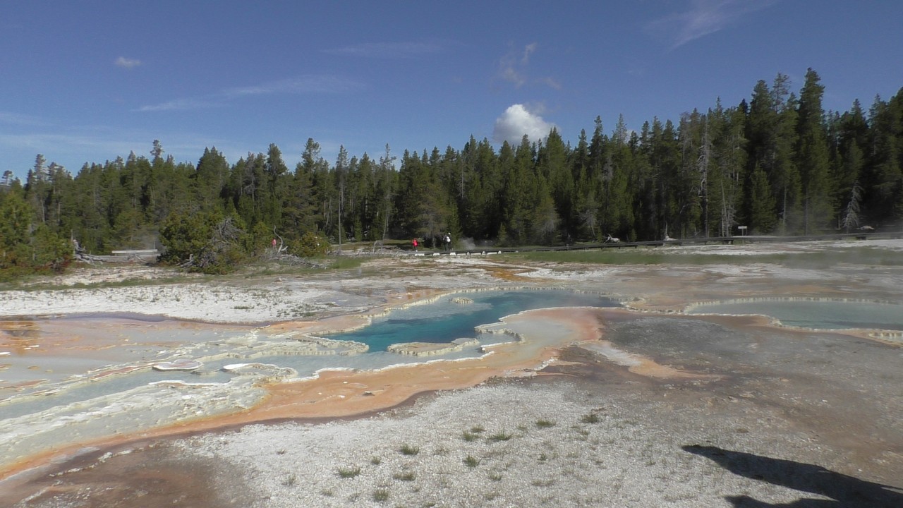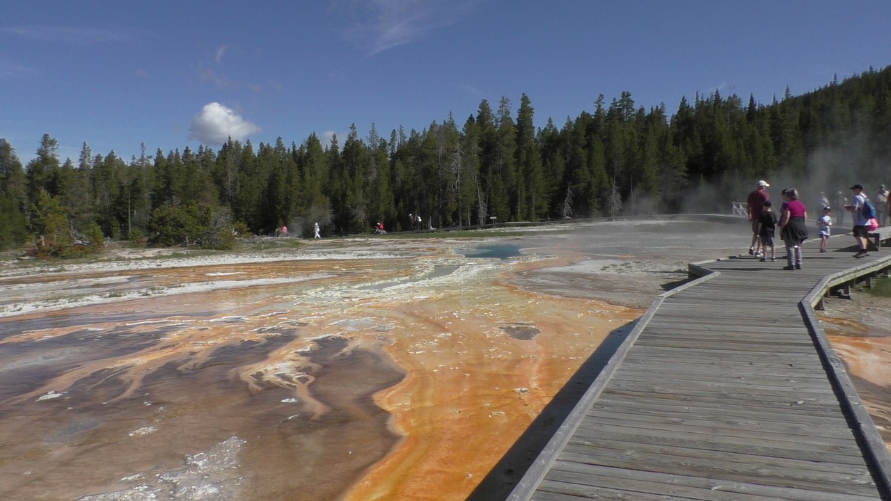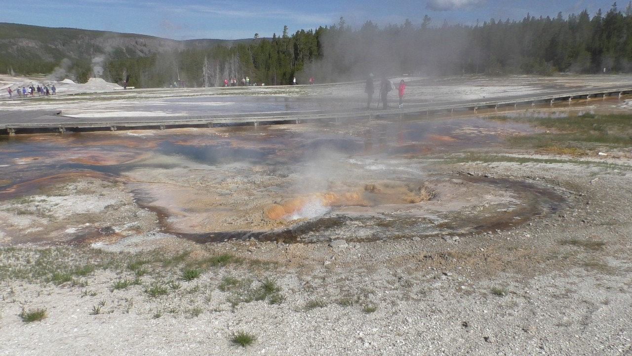 Na deze mooie trail zijn we verder gereden naar een andere groep geisers, Norris Gysers Basis, deze ligt ten noorden van onze camping. Ook hier een gecombineerde boardwalk en hikepad gedaan en weer een hele hoop andere soort geisers, waterpoelen etc. gezien. Erg indrukwekkend allemaal.