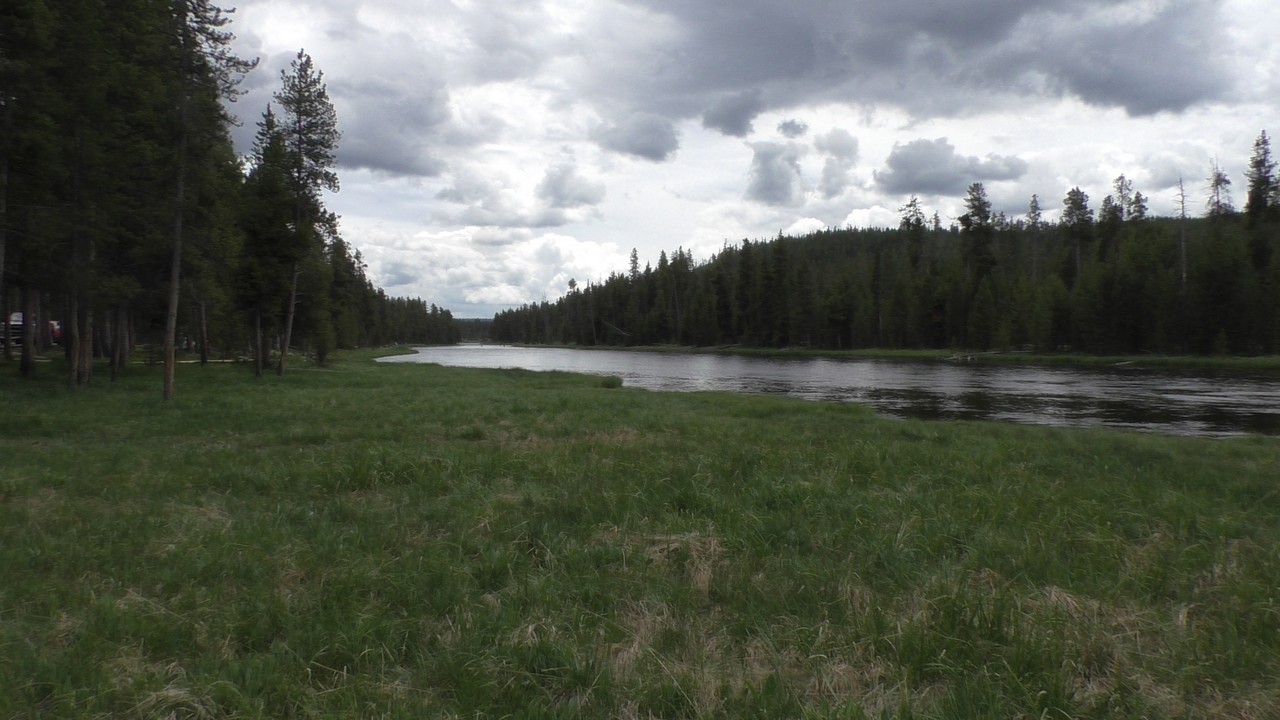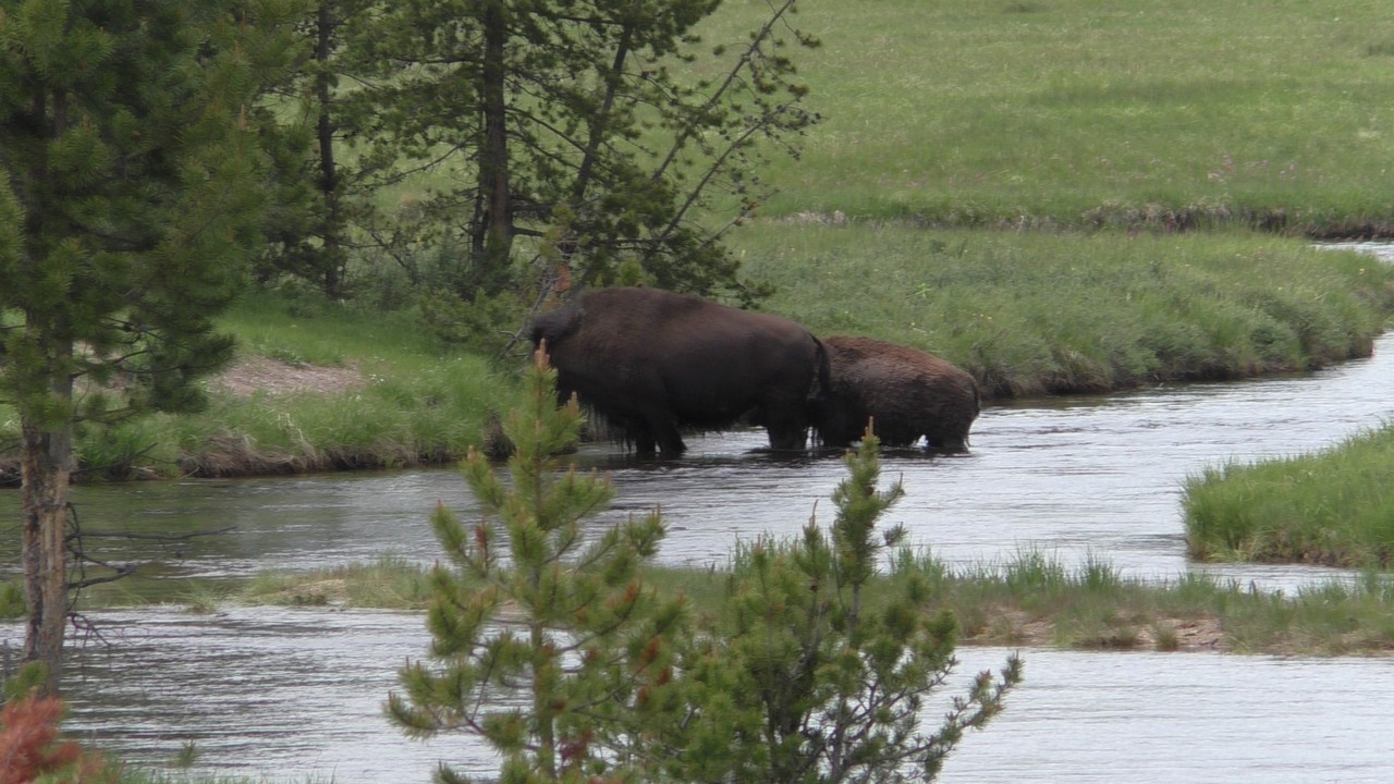 ‘s Avonds hebben we weer de BBQ aangestoken en een lekker stuk vlees erop klaargemaakt en na het eten even naar het kleine riviertje achter de camping, deze stroomt dwars door grasland en ook hier lopen bizons, beren, herten en elanden vaak gewoon doorheen. Je heb dan vanaf de camping een geweldig uitzicht. Helaas hebben wij ze nog niet kunnen spotten…………………….