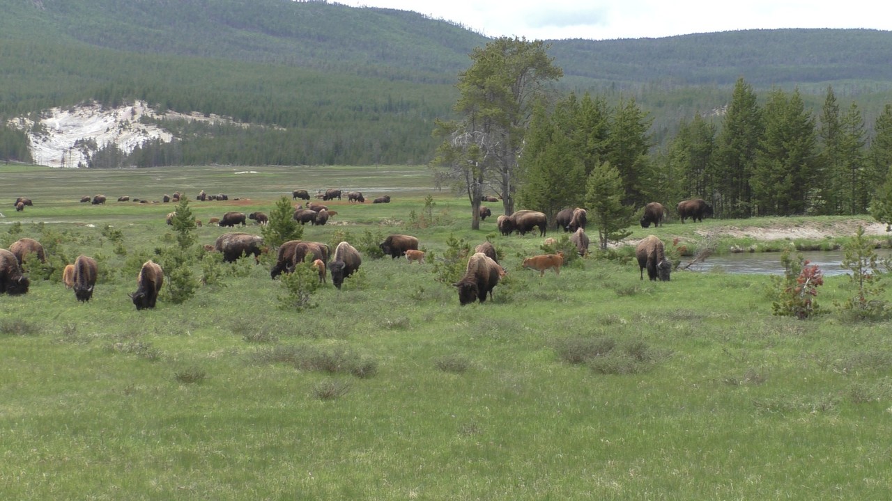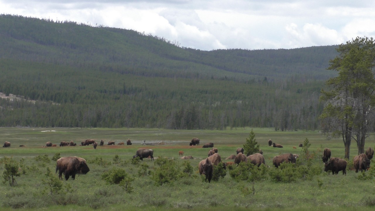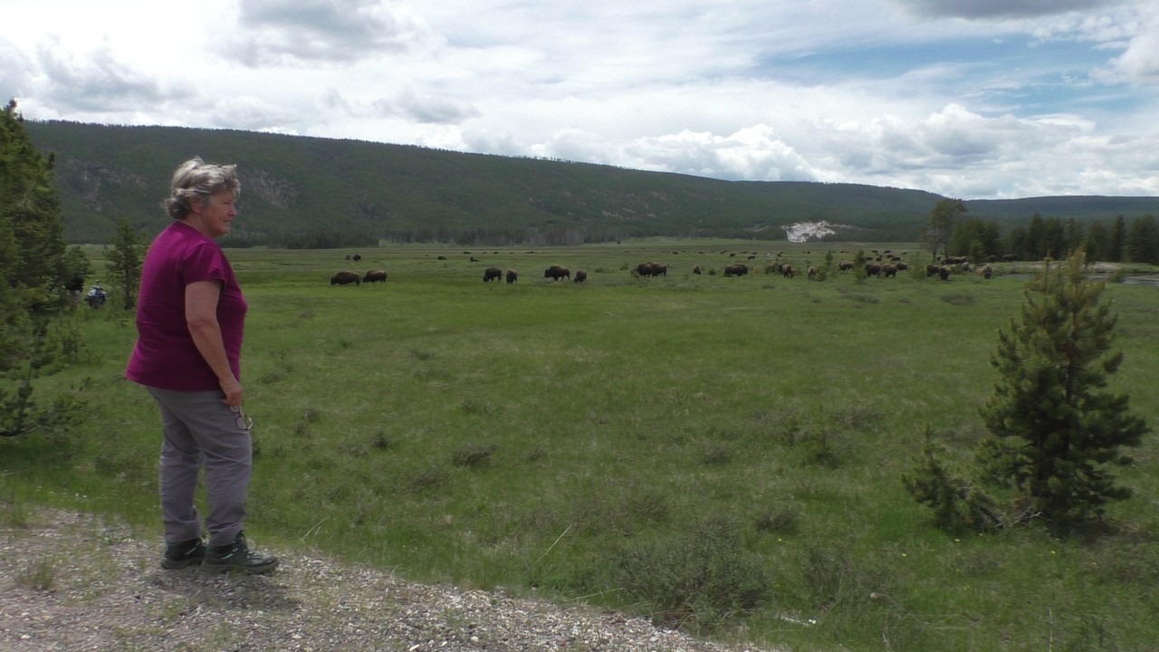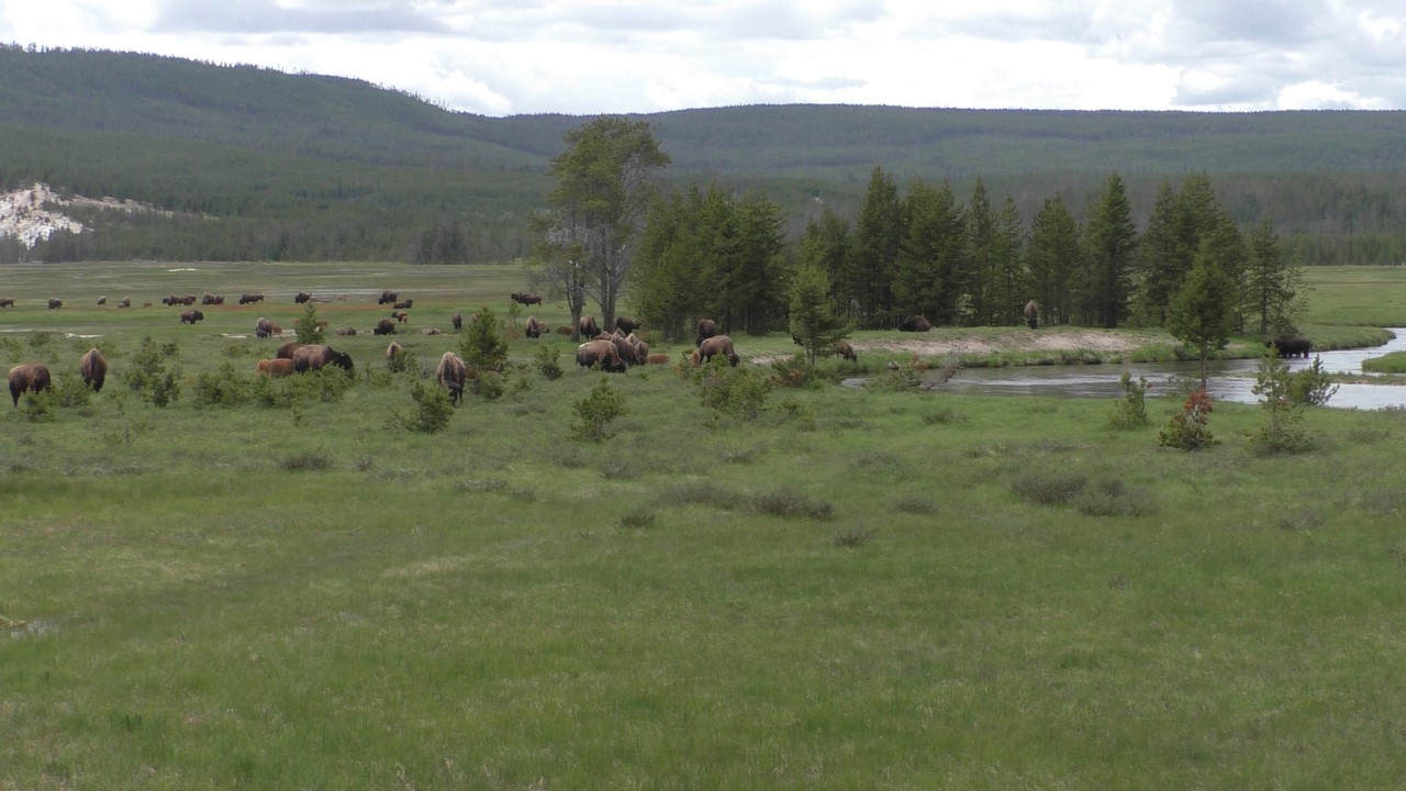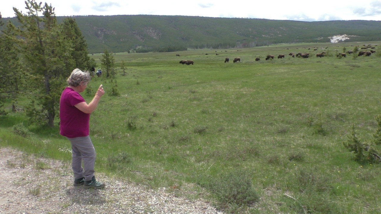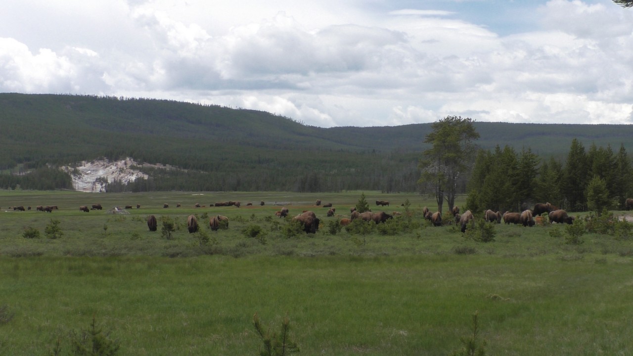 Onderweg kwamen we ook nog een paar bizons tegen, ze liepen met z’n alle in het veld een paar meter van de weg af. Ik heb geprobeerd ze te tellen en kwam al op minimaal 80 uit en toen had ik de achterste hoede nog niet eens meegeteld. Dus de wildlife teller m.b.t. Bizons is wel ineens heel erg hoog geworden.