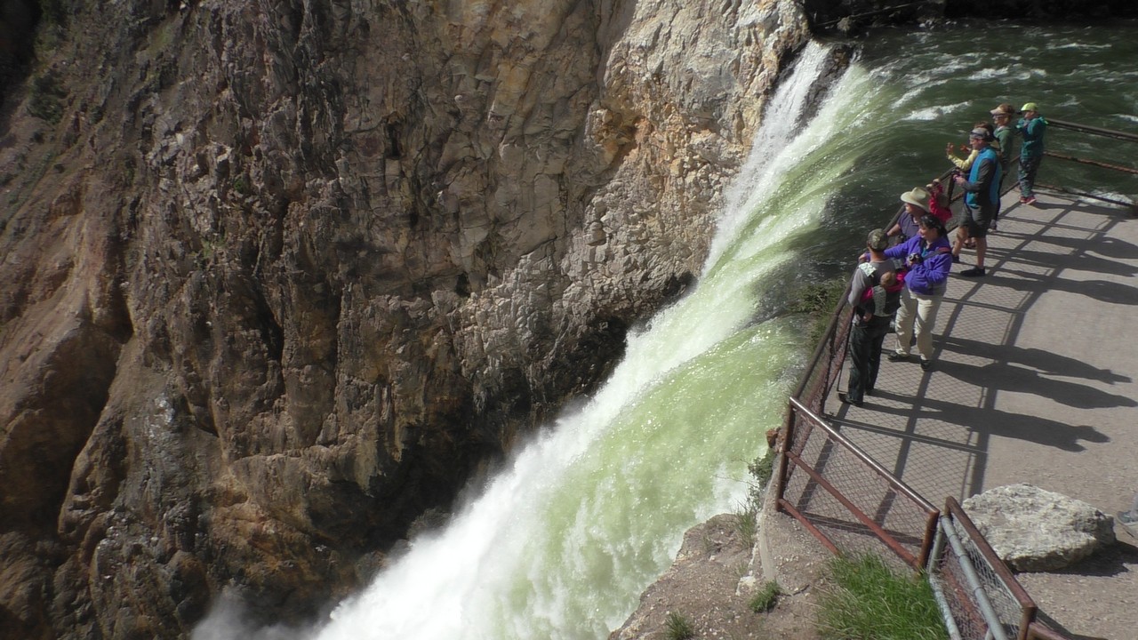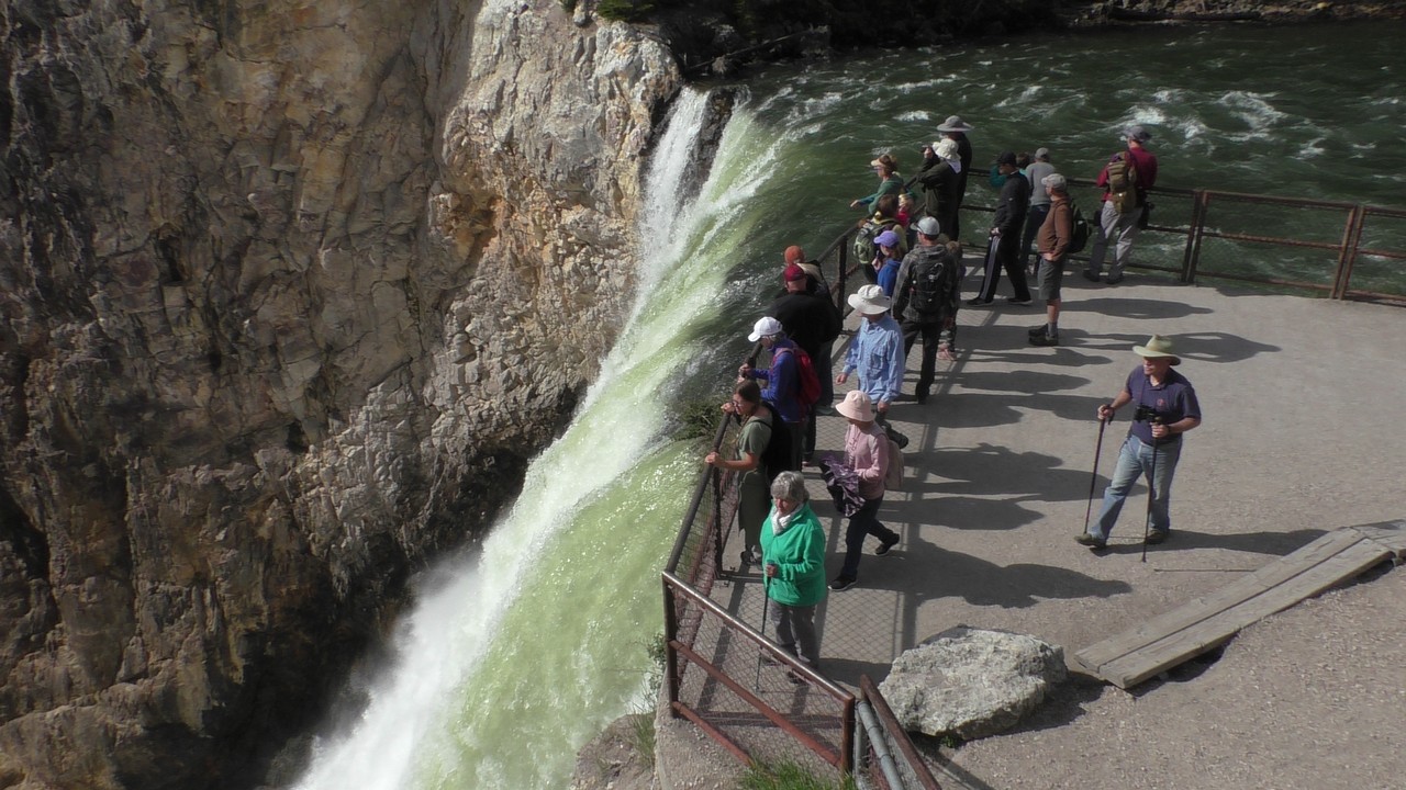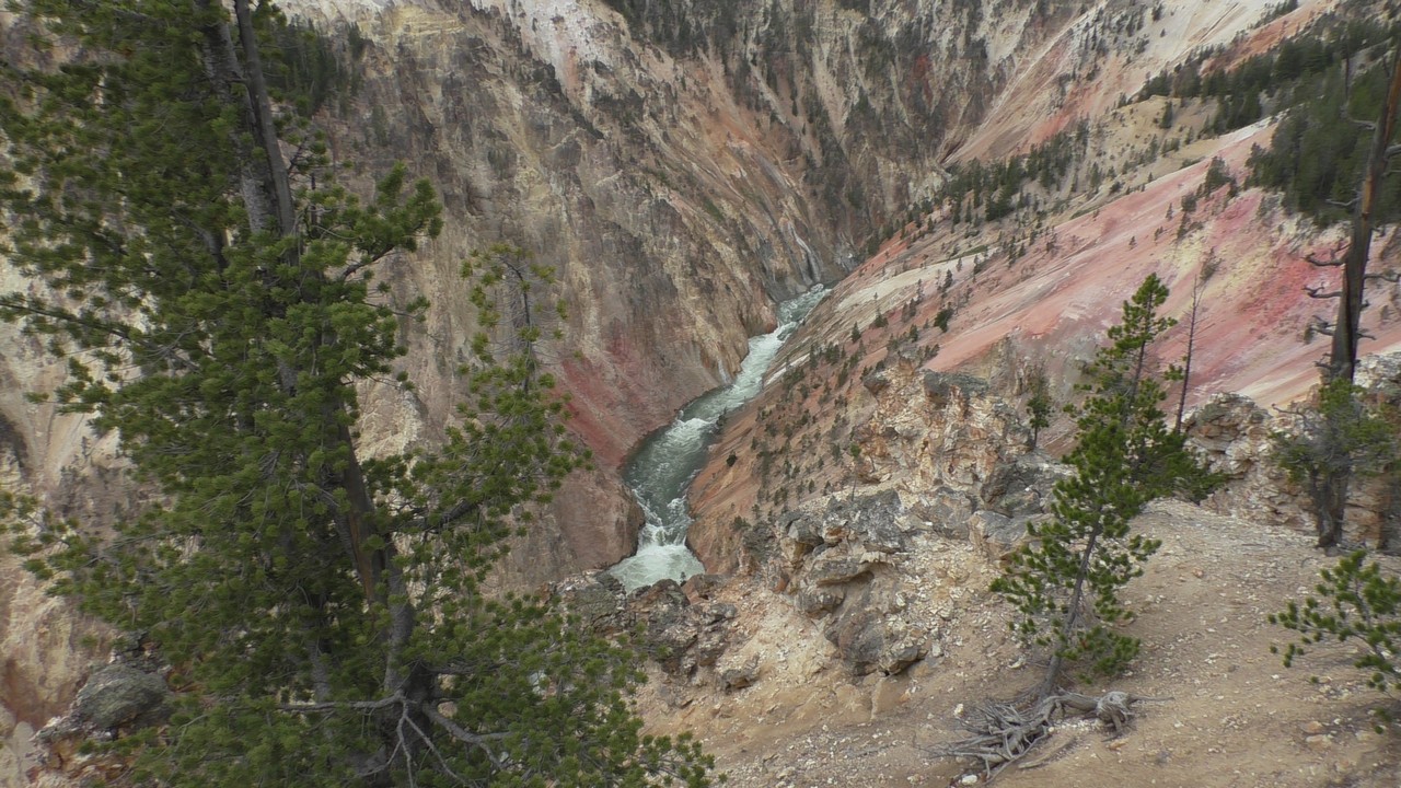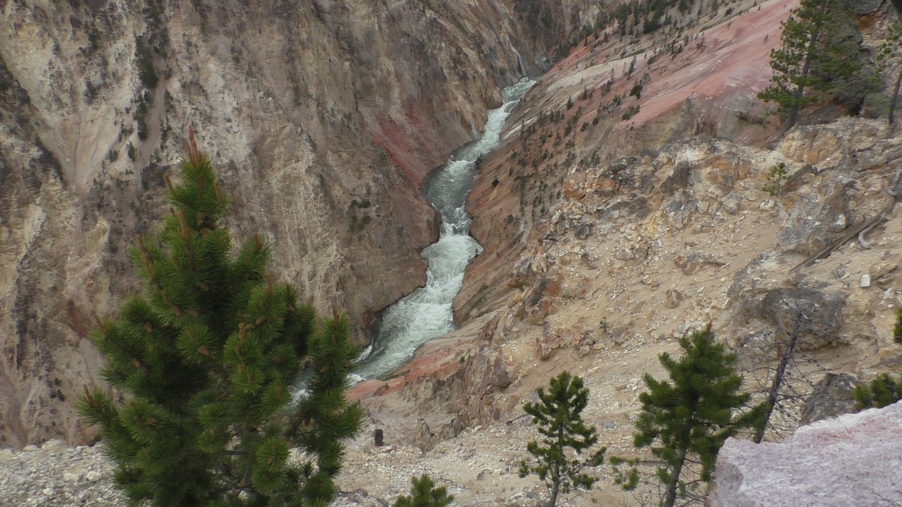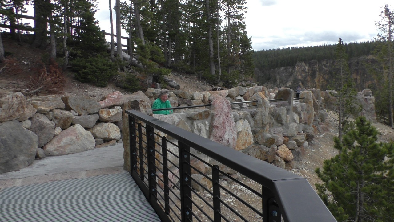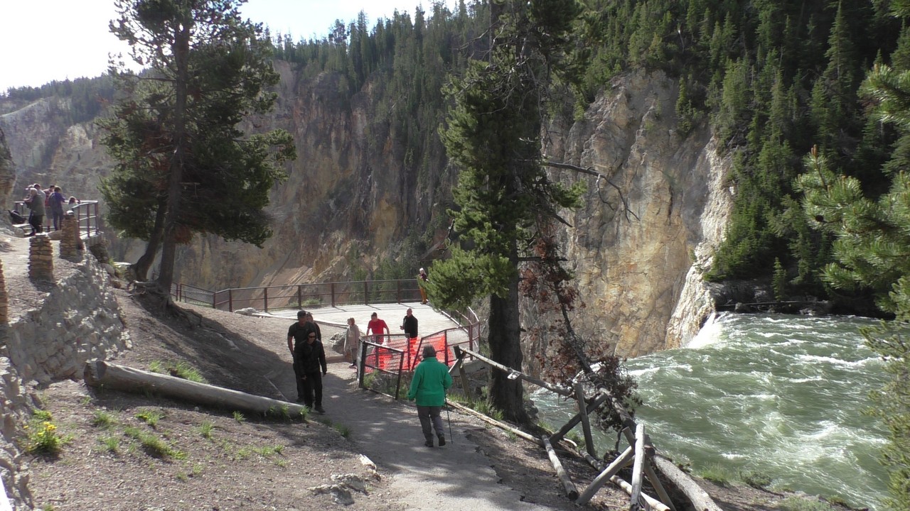 We rijden verder en dieper het park in en stoppen uiteindelijk bij de Grand Canyon van Yellowstone. Er zijn 2 geweldige watervallen en we besluiten naar één daarvan te lopen. Pfffff. Dat was best een tippel en we zijn nu alleen maar bergaf gegaan, we moeten straks weer bergop. Maar het uitzicht is adembenemend en we weten niet welke kant je op moet kijken. Goed, genoeg foto’s gemaakt, we moeten nu uiteindelijk weer naar boven. Boven aangekomen hebben we het toch maar weer gedaan. Ben trots op je moeder……..