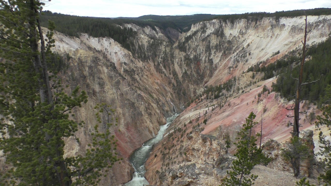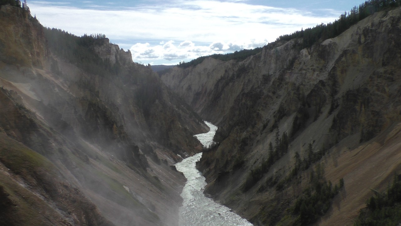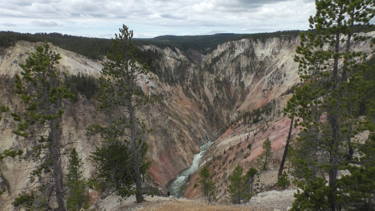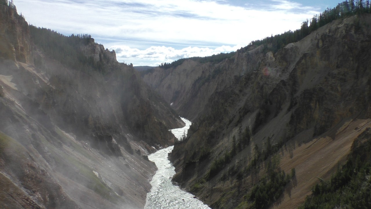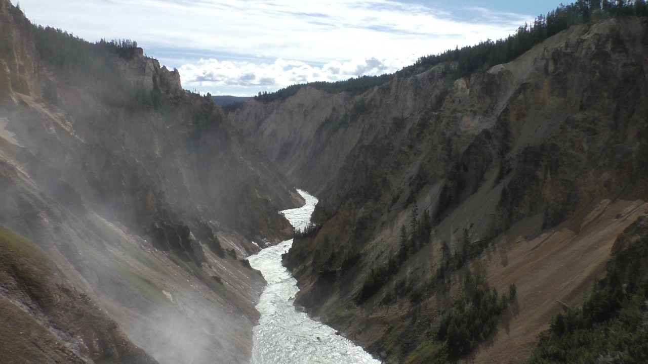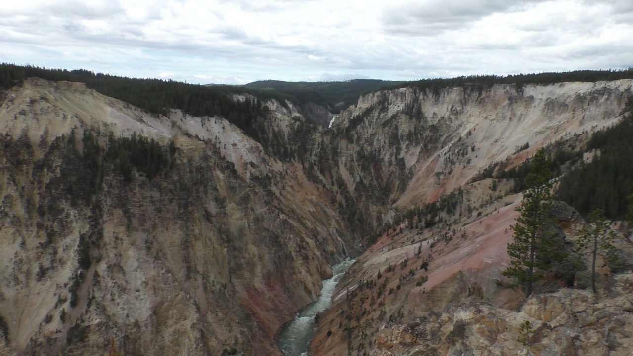We rijden verder en dieper het park in en stoppen uiteindelijk bij de Grand Canyon van Yellowstone. Er zijn 2 geweldige watervallen en we besluiten naar één daarvan te lopen. Pfffff. Dat was best een tippel en we zijn nu alleen maar bergaf gegaan, we moeten straks weer bergop. Maar het uitzicht is adembenemend en we weten niet welke kant je op moet kijken. Goed, genoeg foto’s gemaakt, we moeten nu uiteindelijk weer naar boven. Boven aangekomen hebben we het toch maar weer gedaan. Ben trots op je moeder……..