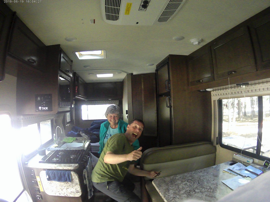 De camper op zijn plek en even een wandelingetje naar het meer, is zeker 1 minuut lopen. Er loopt ook een trial vanaf de camping naar het visitorcentrum en een aantal restaurants en een giftshop. Leuke afsluitende hike, waarbij we onszelf beloond hebben met een diner in één van de restaurant. Vanavond hoeven we geen BBQ aan te steken en niet af te wassen.