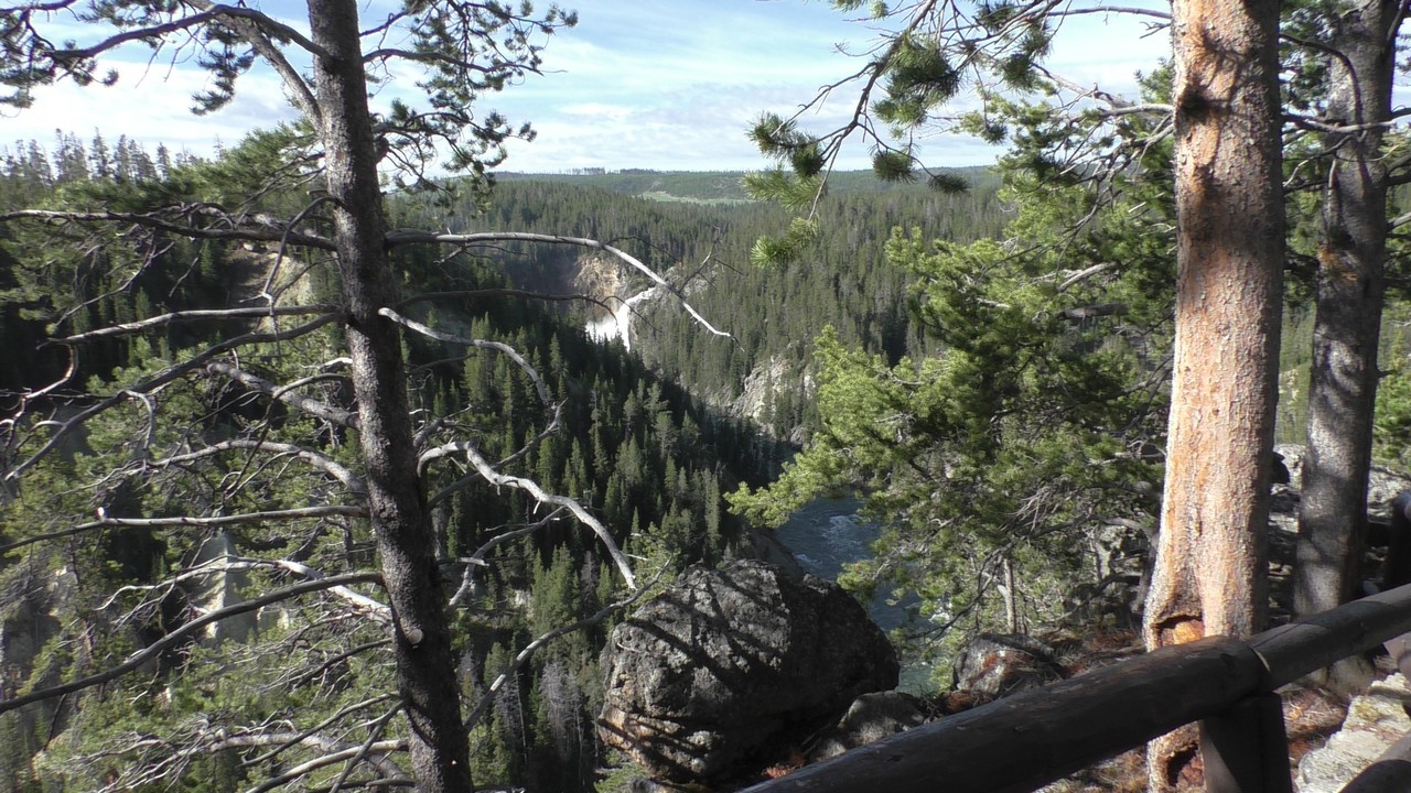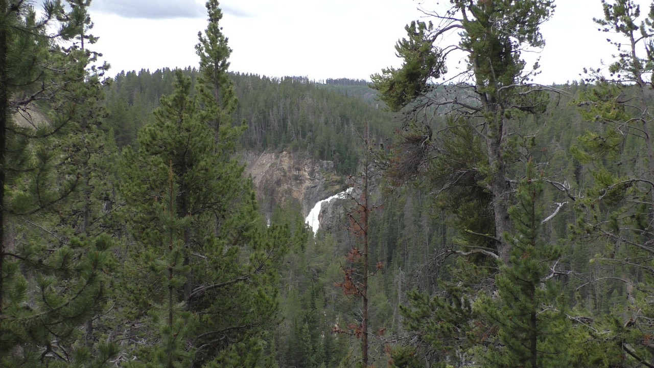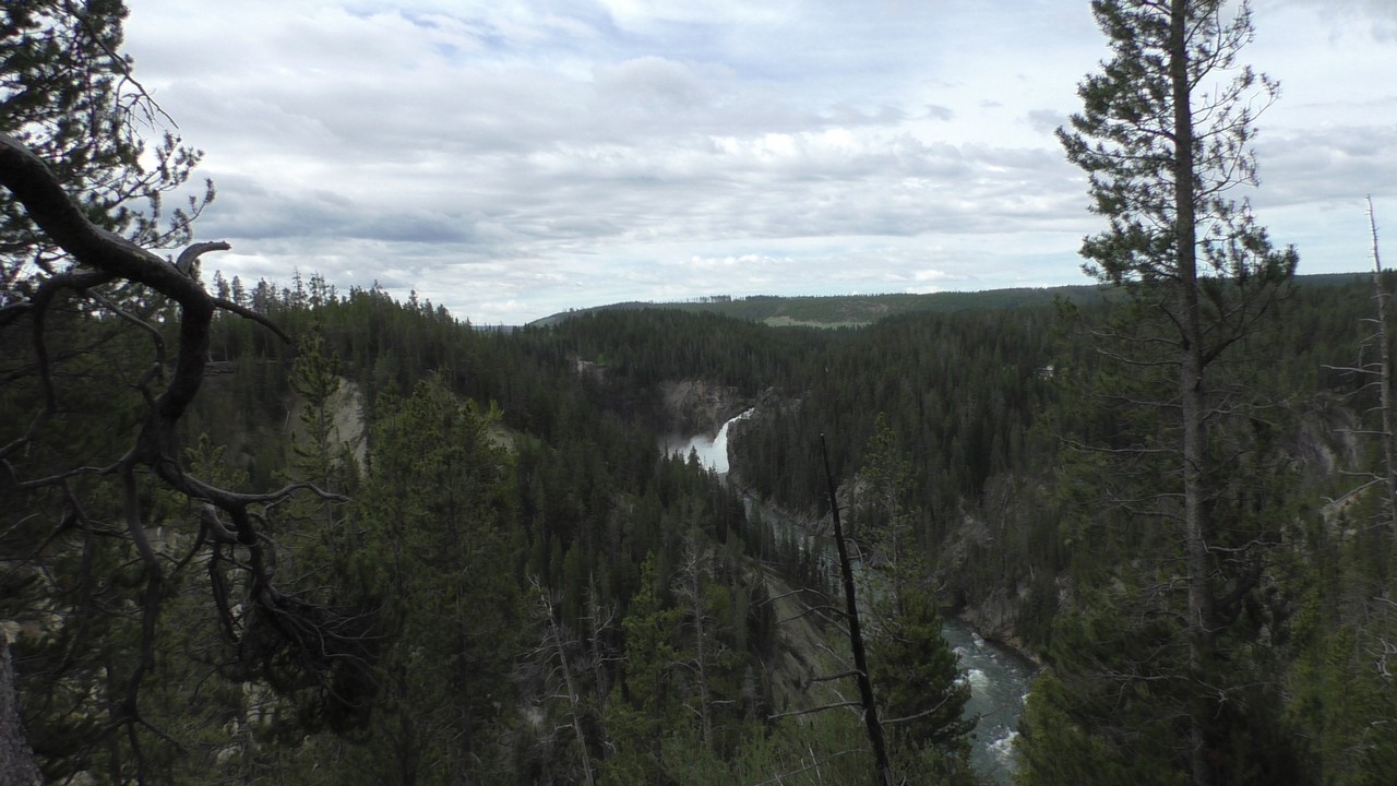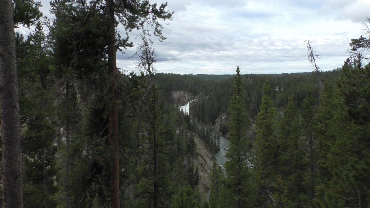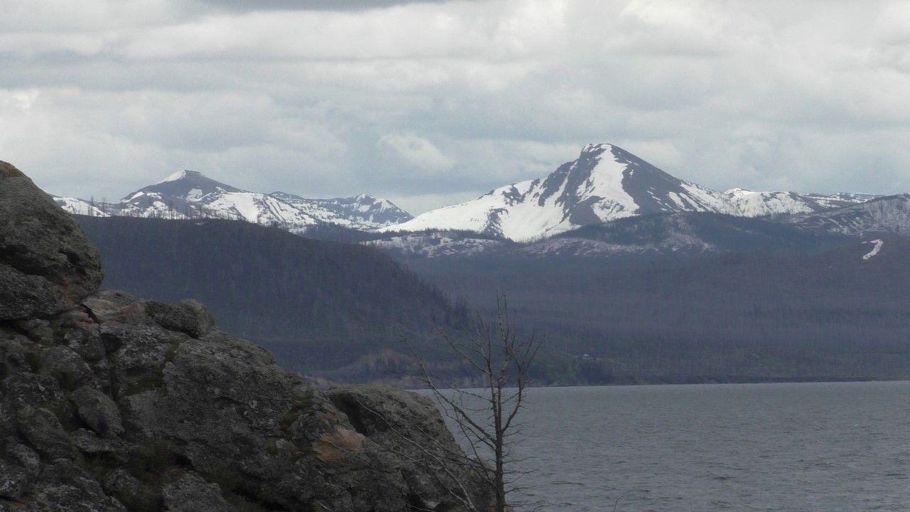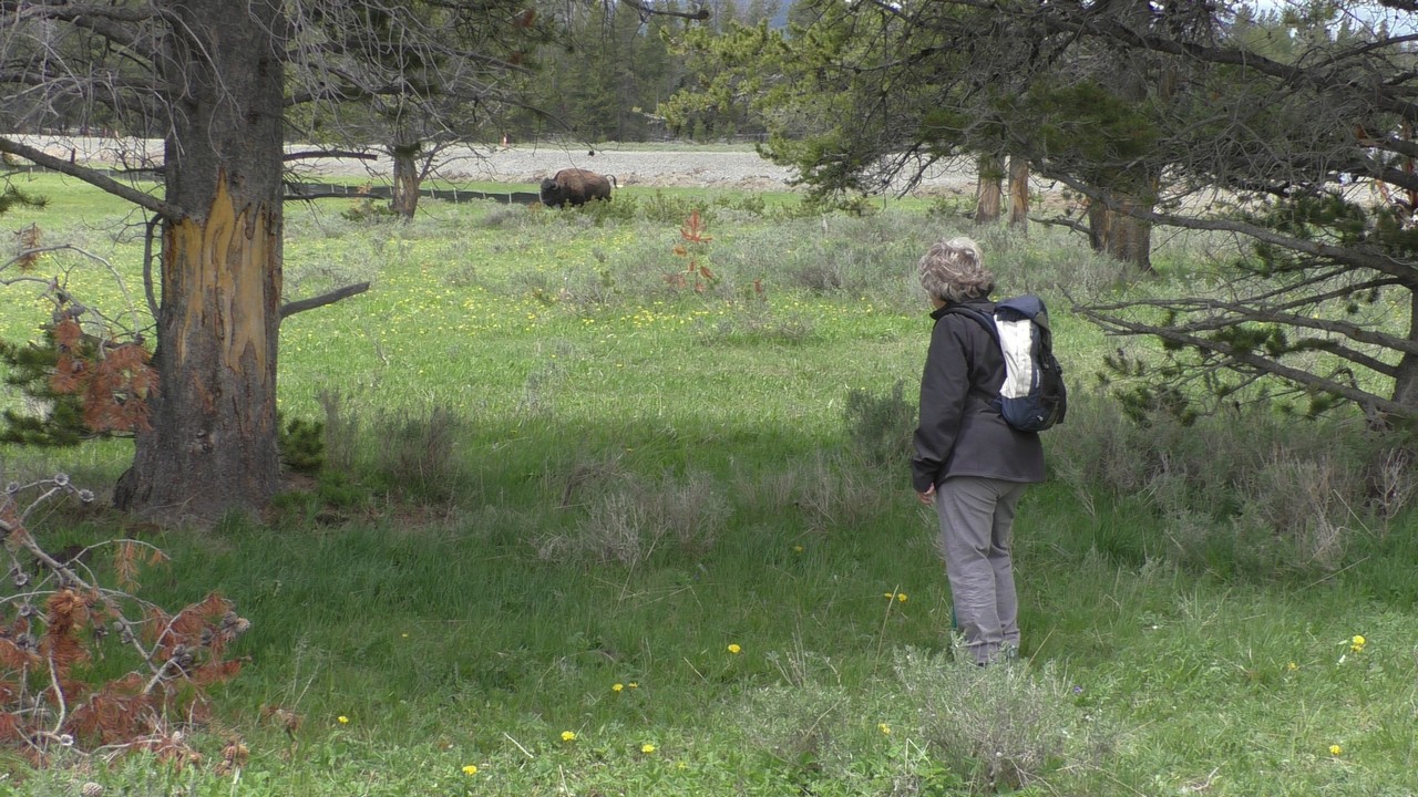 Na het ontbijt met uitzicht gaan we verder en nog dieper het park in. De bergen met witte toppen worden steeds zichtbaarder en we komen ook steeds dichterbij. We zitten dan ook al op 8000ft. (2438meter) hoog.We hebben een hike gezien die richting het meer van Yellowstone zou gaan, het heet StormPoint, nou dat klopt, het waaide daar flink. Op de wandelkaart stond dat hier veel beren zouden kunnen zitten, dus er werd nog extra gewaarschuwd. Wij zijn ze (helaas) niet tegengekomen. Wel weer een paar bizons, maar inmiddels hebben we er zoveel gezien dat we ze niet eens meer op de foto/video zetten en zijn ook gestopt met tellen.