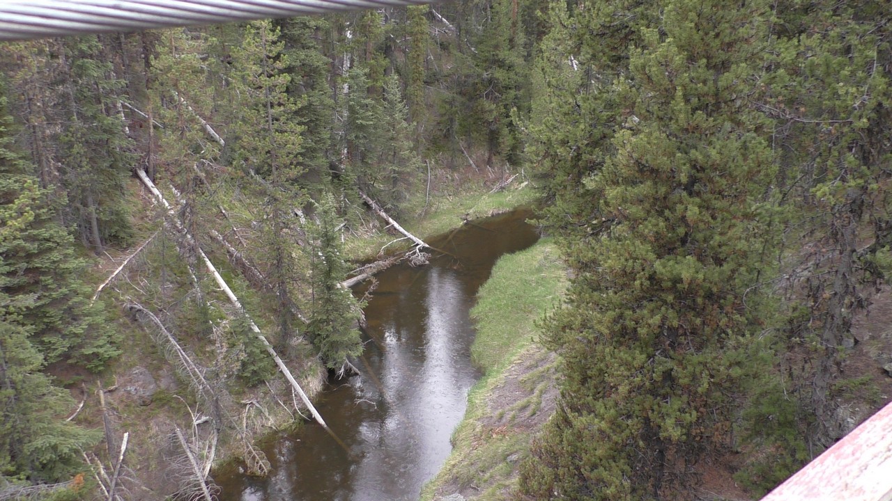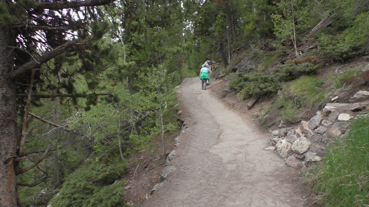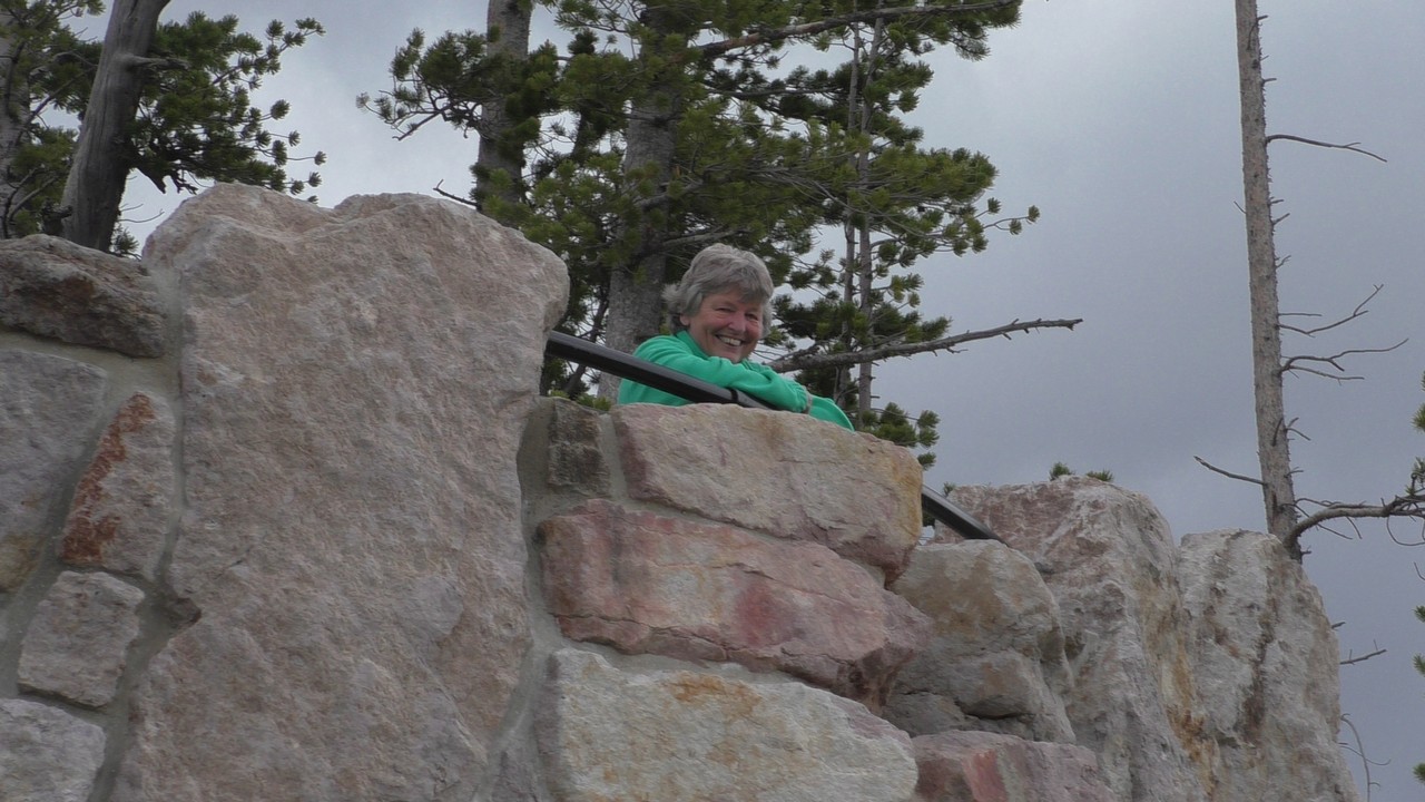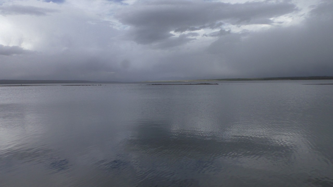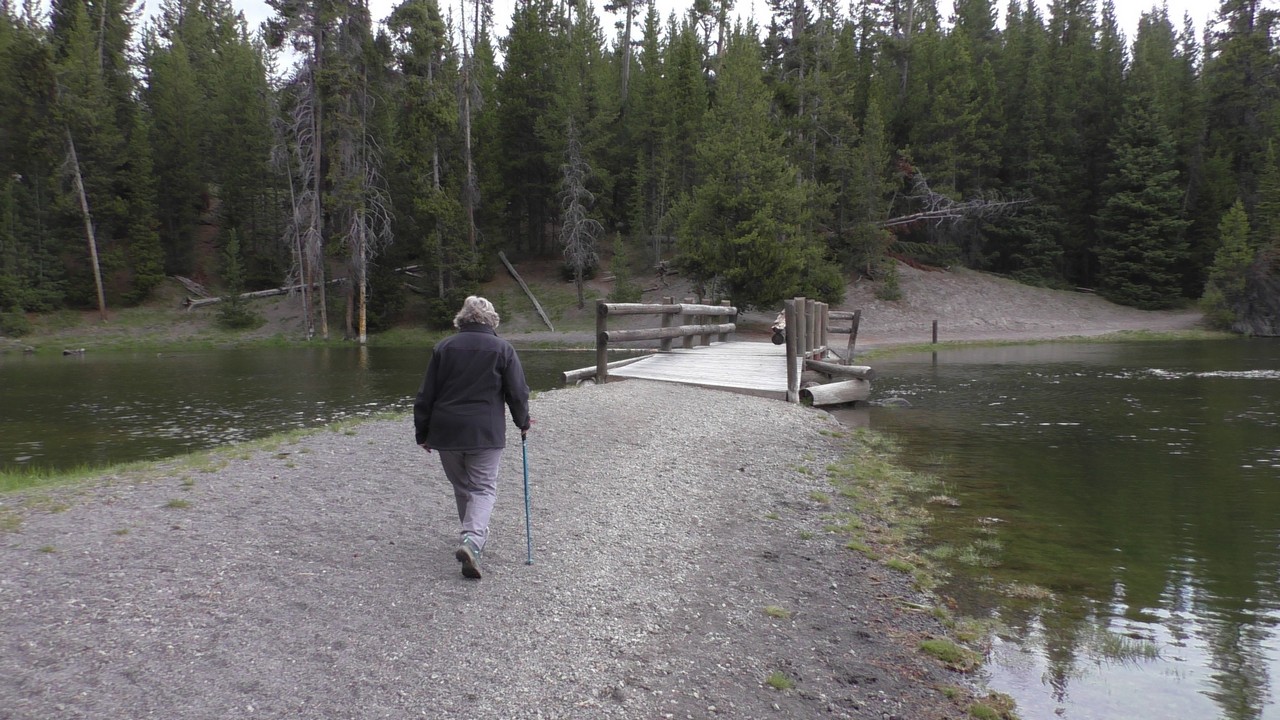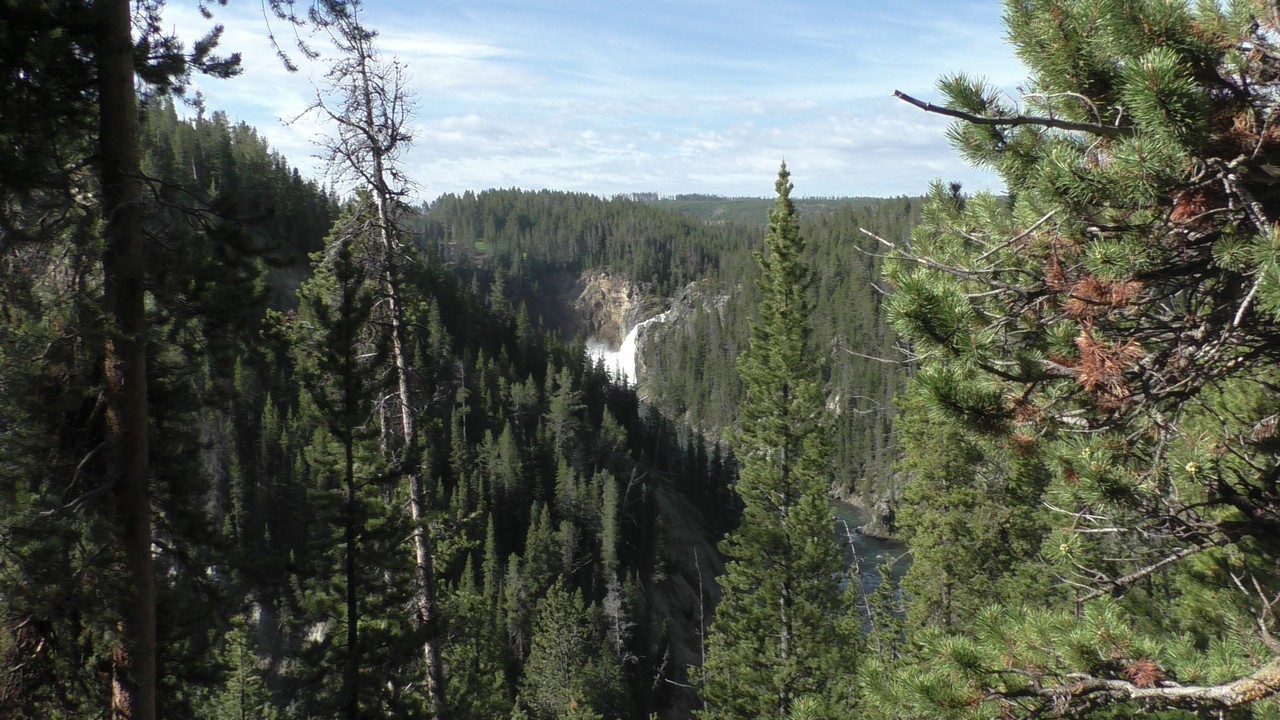 Na het ontbijt met uitzicht gaan we verder en nog dieper het park in. De bergen met witte toppen worden steeds zichtbaarder en we komen ook steeds dichterbij. We zitten dan ook al op 8000ft. (2438meter) hoog.We hebben een hike gezien die richting het meer van Yellowstone zou gaan, het heet StormPoint, nou dat klopt, het waaide daar flink. Op de wandelkaart stond dat hier veel beren zouden kunnen zitten, dus er werd nog extra gewaarschuwd. Wij zijn ze (helaas) niet tegengekomen. Wel weer een paar bizons, maar inmiddels hebben we er zoveel gezien dat we ze niet eens meer op de foto/video zetten en zijn ook gestopt met tellen.