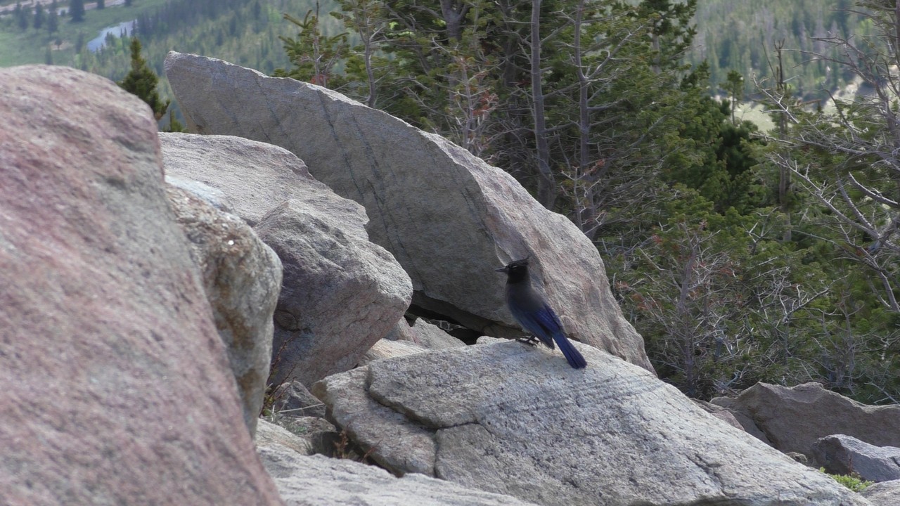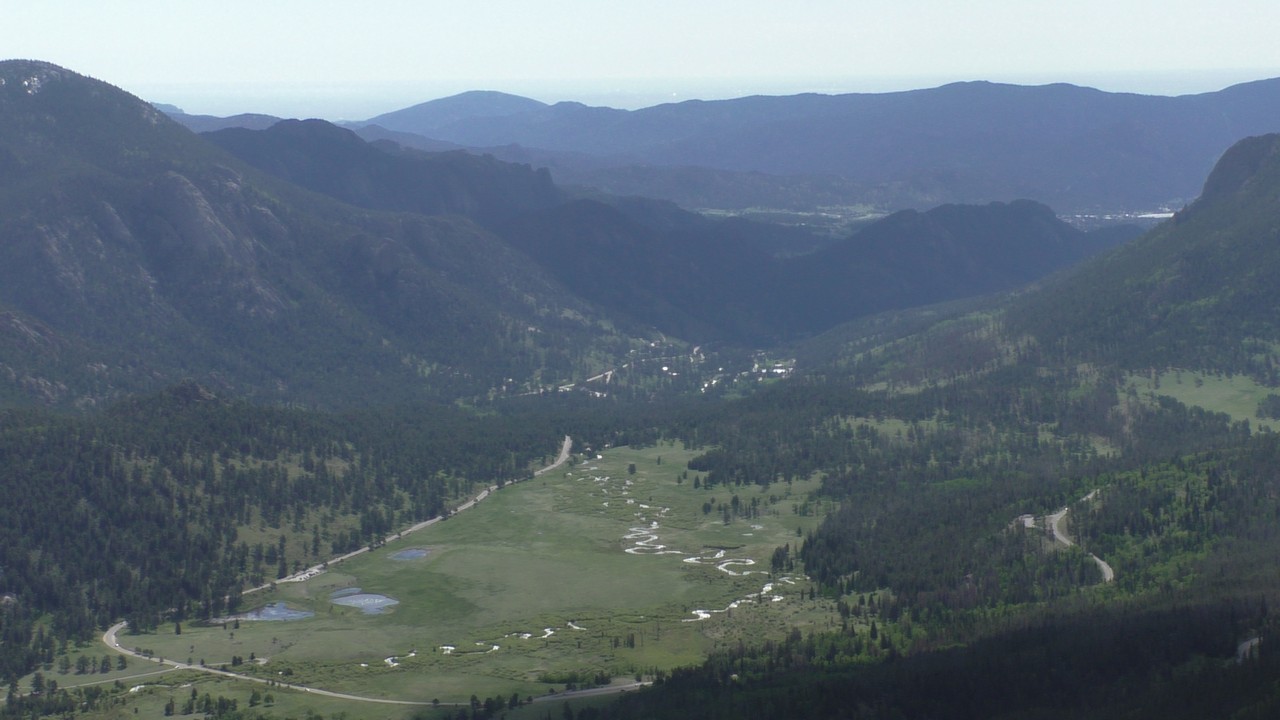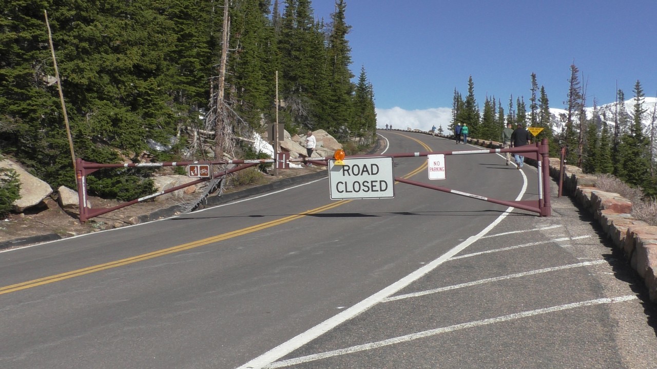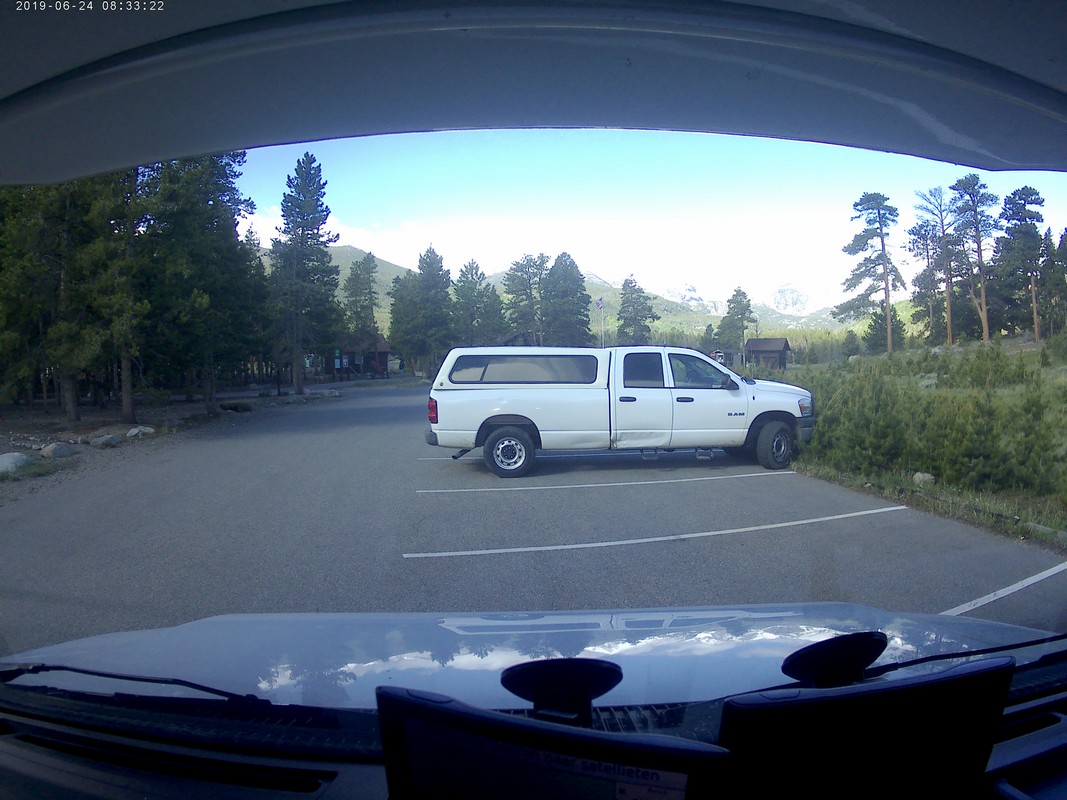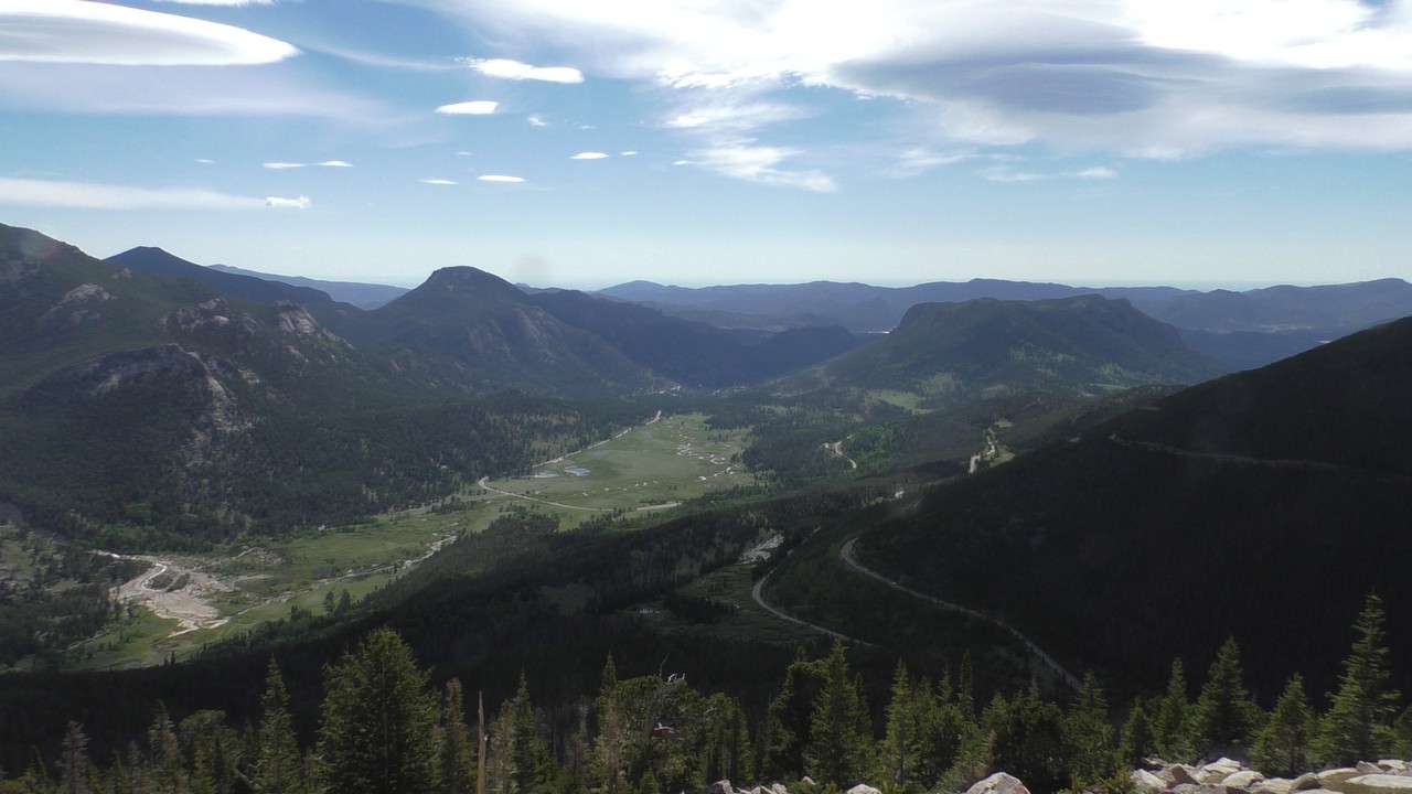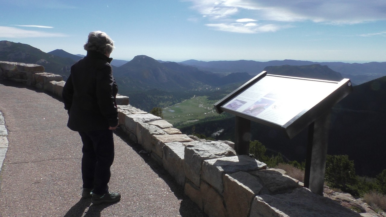 Vandaag willen we dan hopelijk de Trail Ridge Road doen en dan tot Alpine Visitor Center dat op 12183ft (3713m) ligt. Er is een hotline wat gebeld kan worden om te horen of de weg open is, maar helaas hebben wij op de camping geen bereik. Dus dan maar op goed geluk. We gaan richting het kruispunt waar het gisteren nog dicht was, en de slagbomen staan open, dus we hebben geluk. Langzaam stijgt de weg en we hebben de ene na de andere haarspeldbocht en super mooie uitzichten. We naderen Rainbow Curve, dat op 10.000 ft (3048meter) ligt,daar zou je een indrukwekkend uitzicht hebben over de vallei, het is er nog niet druk dus we vinden makkelijk een parkeerplek. Helaas zijn we iets verder een bord staan waarop staat dat de rest van de weg nog afgesloten is i.v.m. sneeuwschuifwerkzaamheden. Bij navraag of de weg op korte termijn opengaat krijgen we het antwoord : “misschien wel, maar misschien ook niet” , dus echt veel wijzer worden we er niet van. Het wordt ook steeds drukker op de parkeerplaats en iedereen wordt uiteindelijk gelijk teruggestuurd. De parkeerplaats is vol, wij blij dat we op tijd waren.