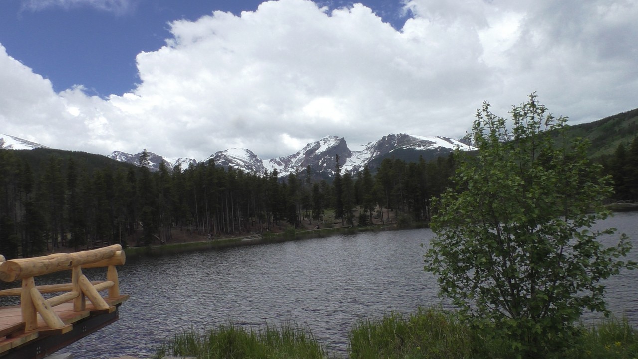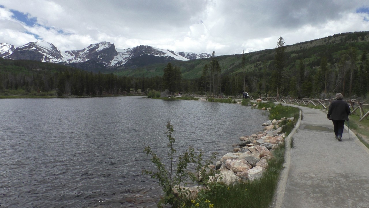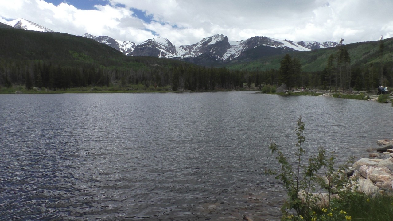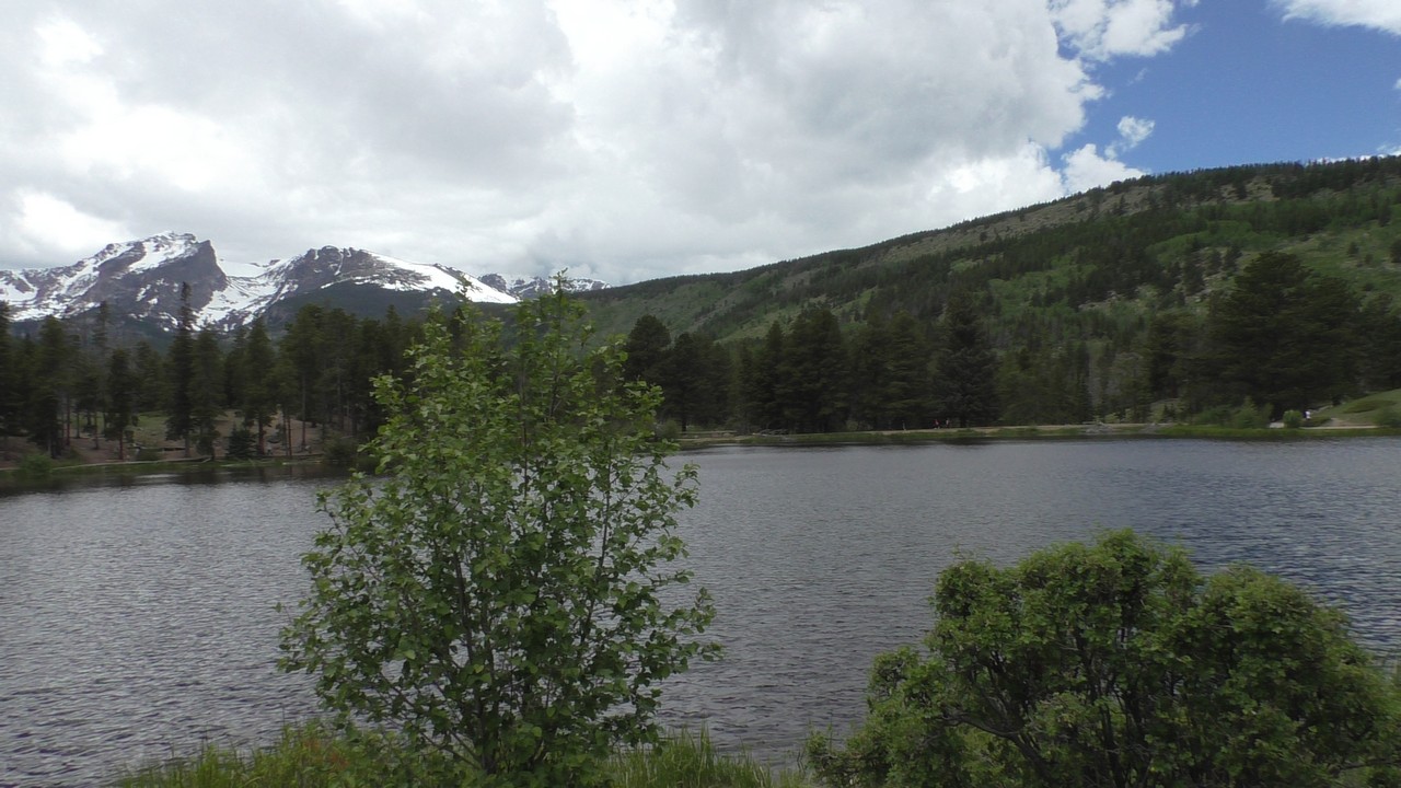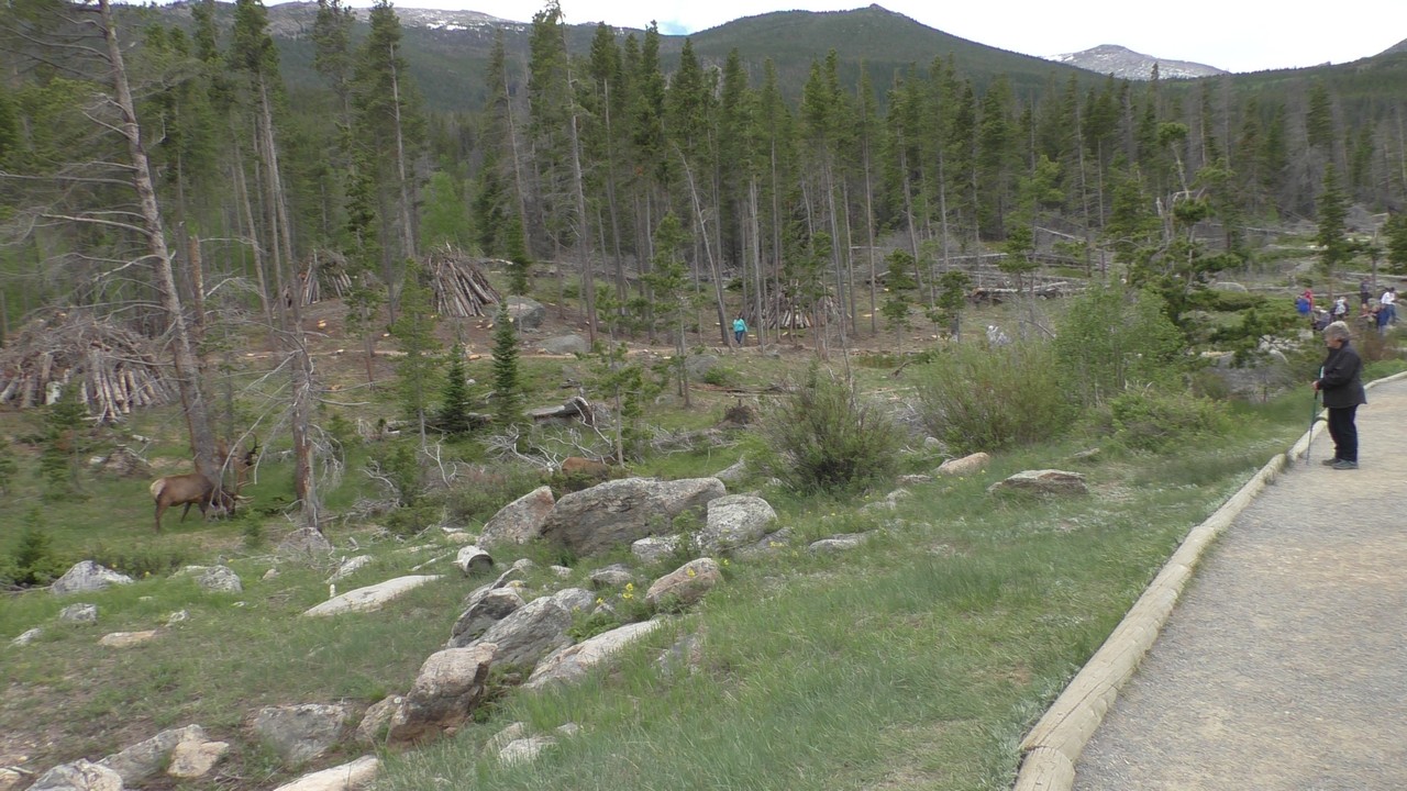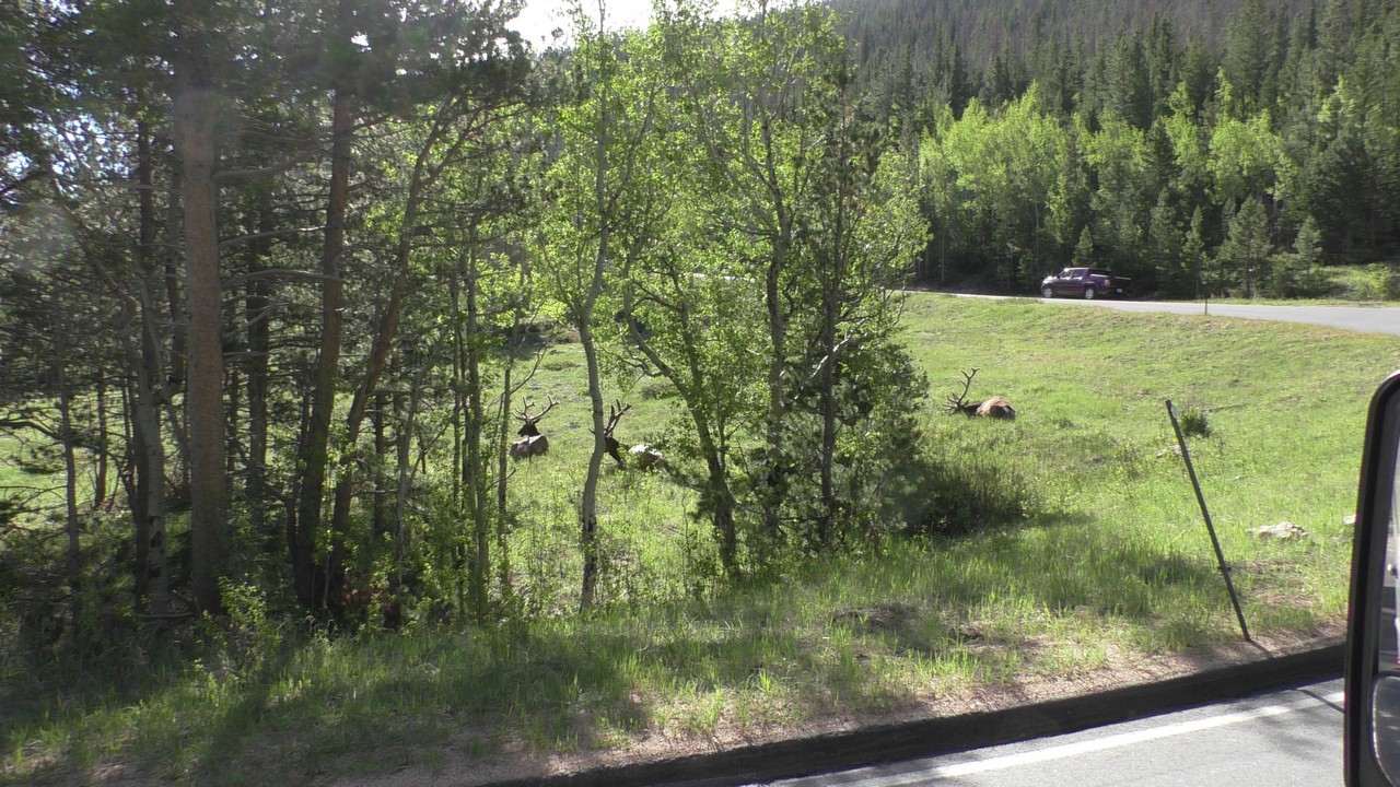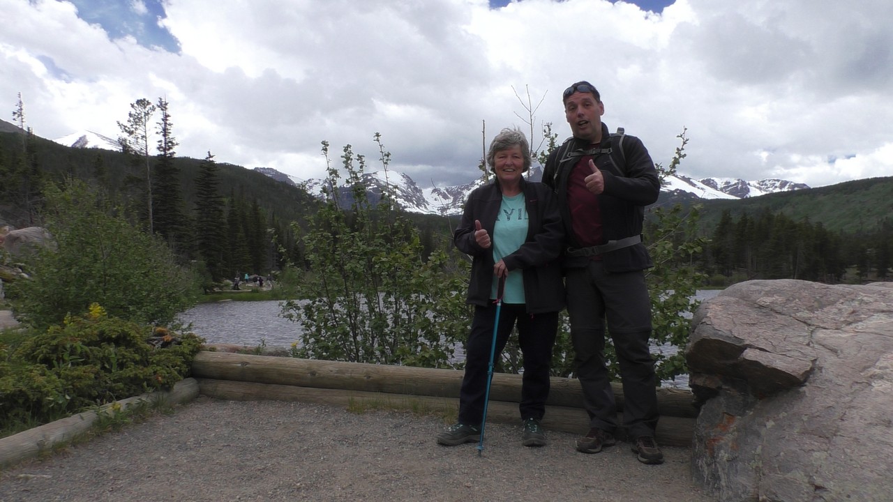 We rijden via een Fall River terug naar Estes Park, om vanuit daar weer terug te rijden naar Glacier Basin. Onderweg nog even een tussenstop voor een heerlijk cappuccino. We besluiten om terug te rijden naar de camping. Vanaf de camping start er ook een trial naar Spraque Lake, vandaag is het prachtigste weer van de wereld, waar we gisteren liepen met muts en hadden we sneeuw, lopen we nu in een T-shirt en hebben we zonnecrème op gedaan. Het is een mooie hike naar het meertje, waar je ook nog omheen kan lopen en waar je schitterend uitzicht heb op wit besneeuwde toppen. Op de terugweg lopen we nog tegen 4 Elanden aan, dus die eerst maar de ruimte gegeven en vervolgens ze op de foto/video gezet.