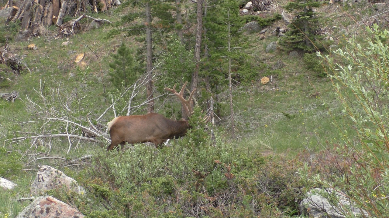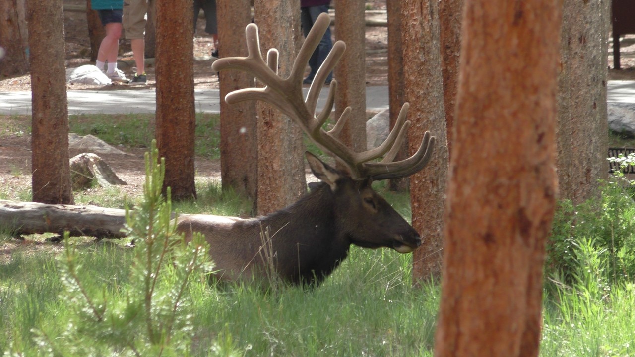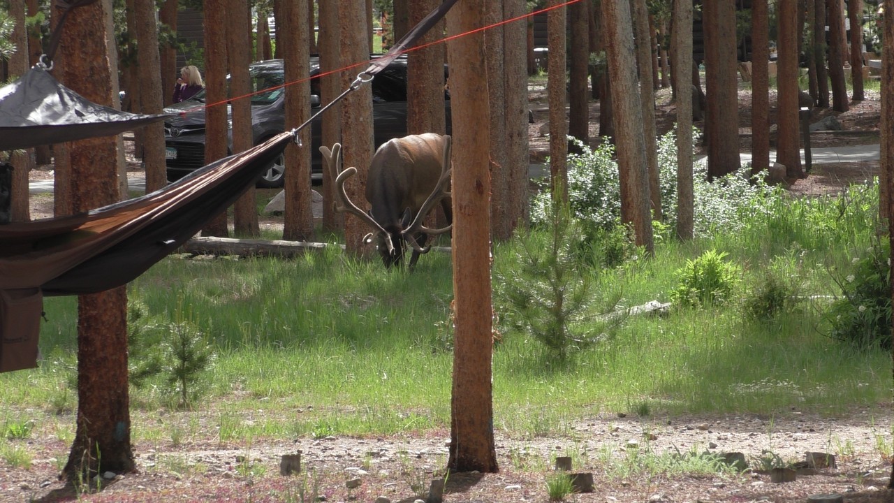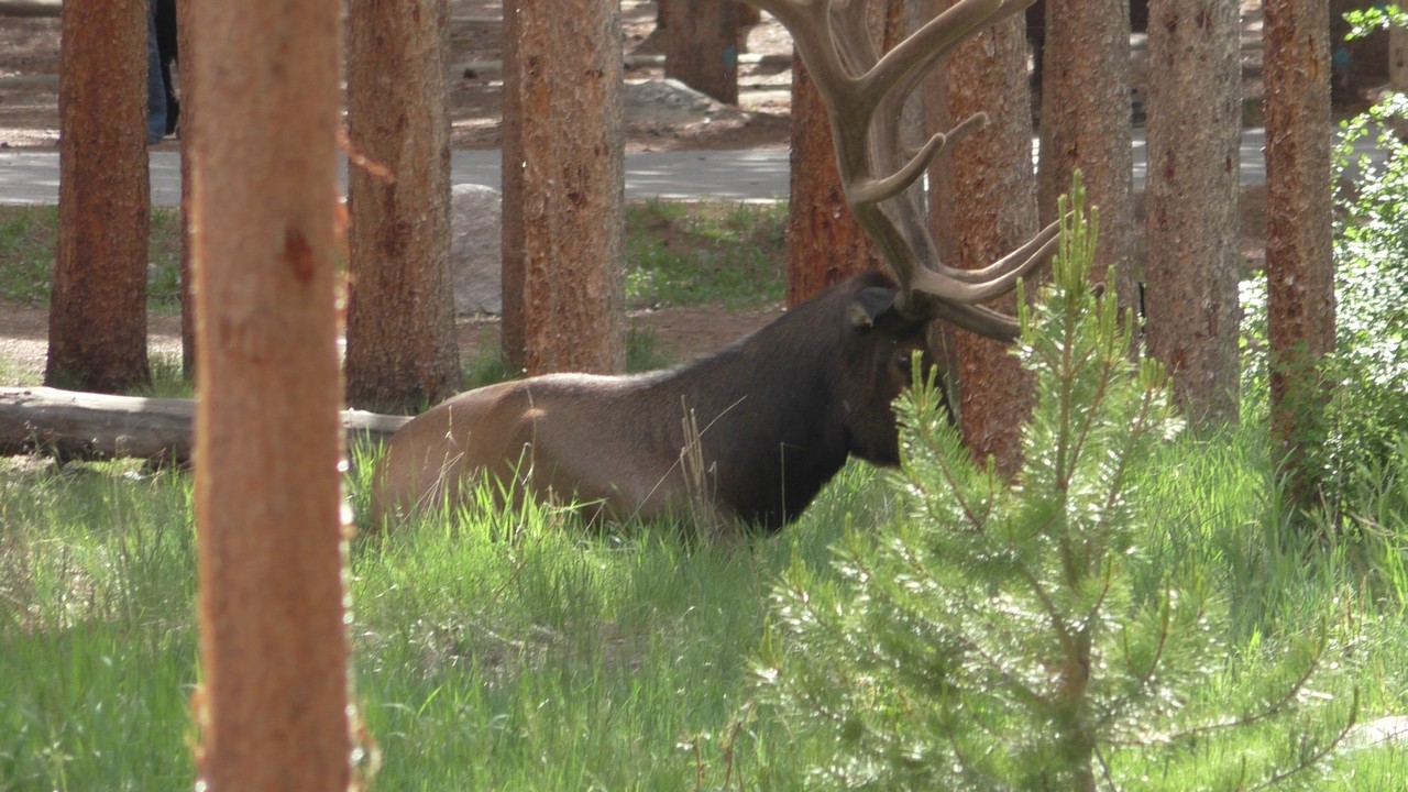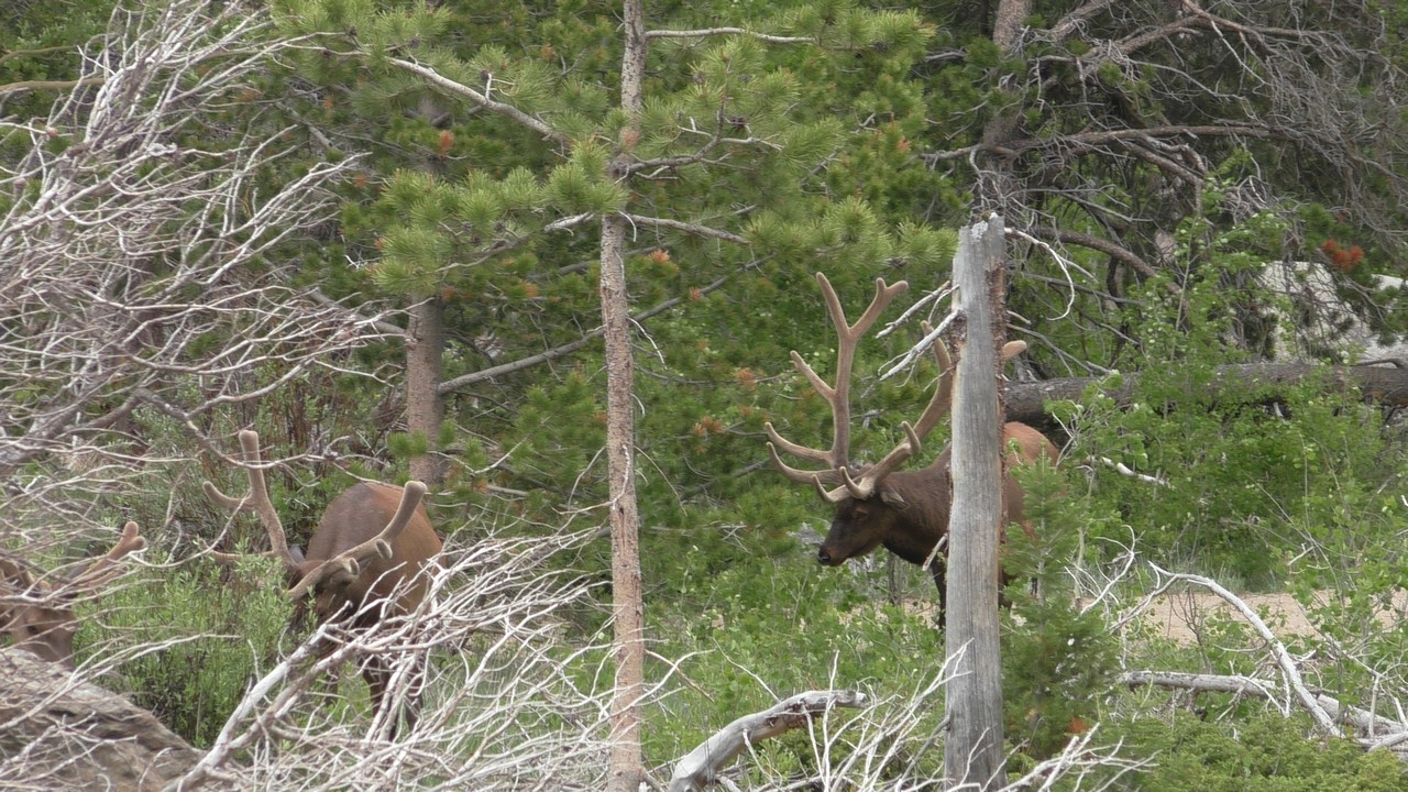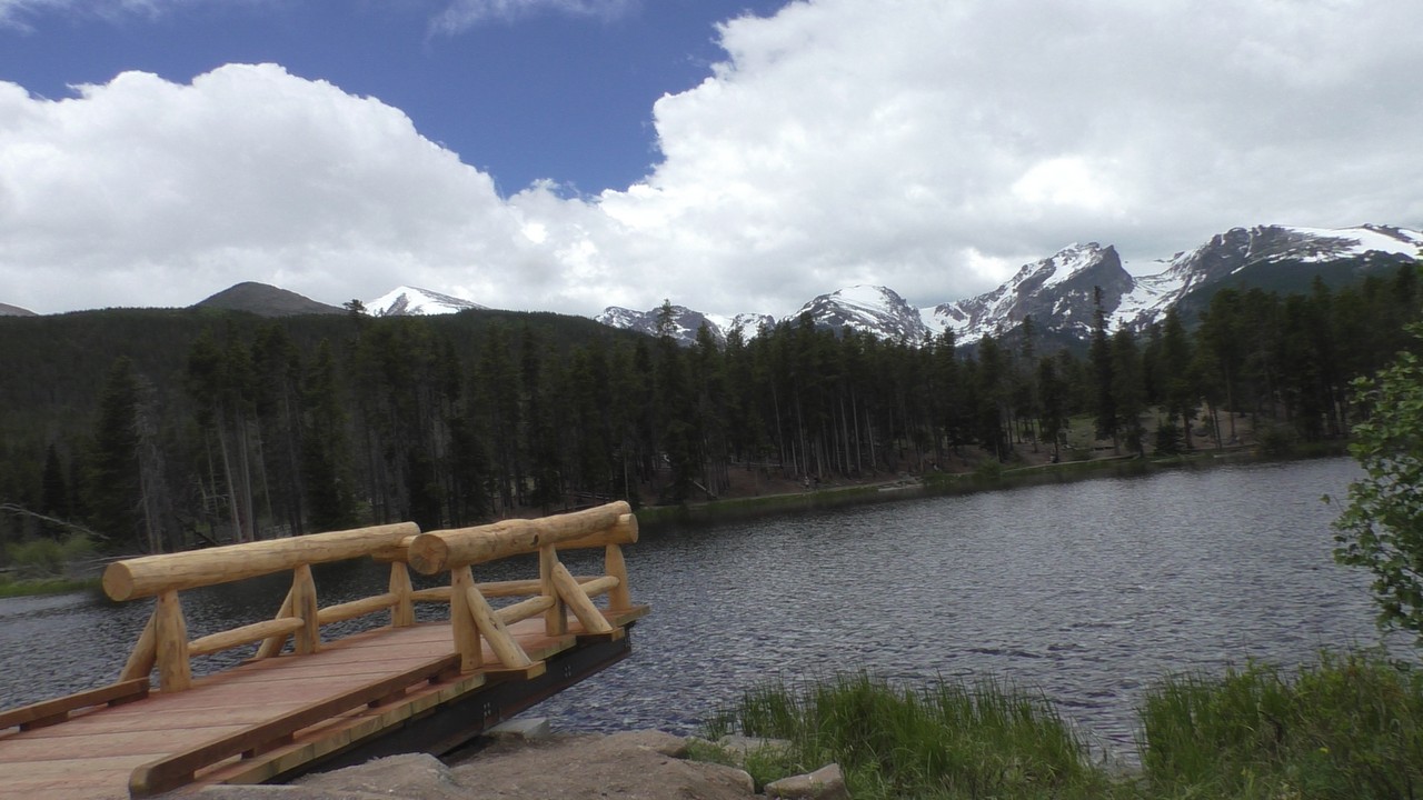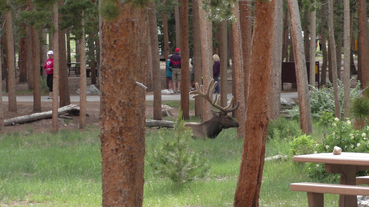We rijden via een Fall River terug naar Estes Park, om vanuit daar weer terug te rijden naar Glacier Basin. Onderweg nog even een tussenstop voor een heerlijk cappuccino. We besluiten om terug te rijden naar de camping. Vanaf de camping start er ook een trial naar Spraque Lake, vandaag is het prachtigste weer van de wereld, waar we gisteren liepen met muts en hadden we sneeuw, lopen we nu in een T-shirt en hebben we zonnecrème op gedaan. Het is een mooie hike naar het meertje, waar je ook nog omheen kan lopen en waar je schitterend uitzicht heb op wit besneeuwde toppen. Op de terugweg lopen we nog tegen 4 Elanden aan, dus die eerst maar de ruimte gegeven en vervolgens ze op de foto/video gezet.