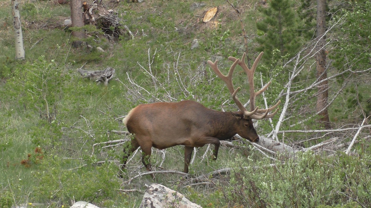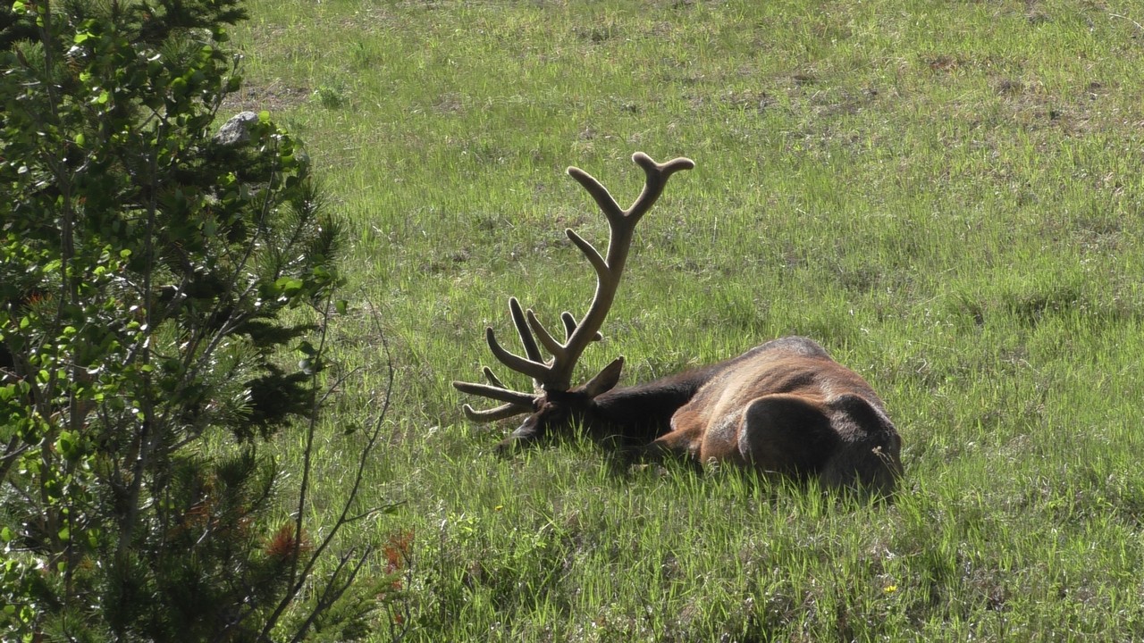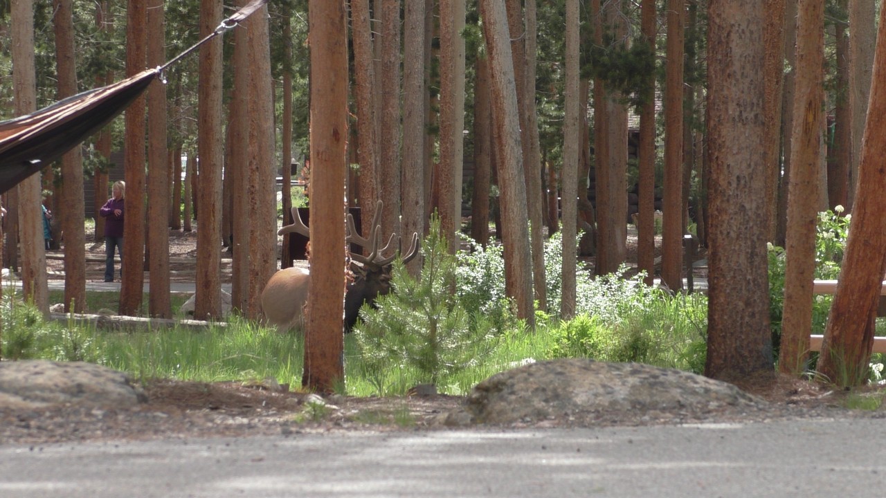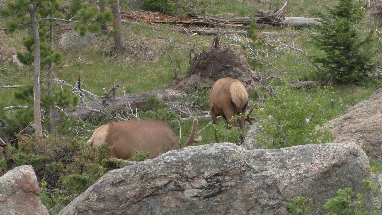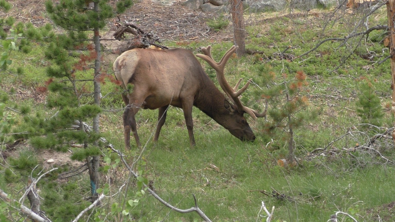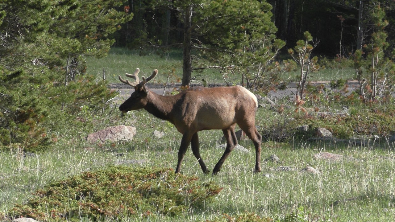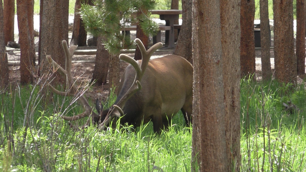 We rijden via een Fall River terug naar Estes Park, om vanuit daar weer terug te rijden naar Glacier Basin. Onderweg nog even een tussenstop voor een heerlijk cappuccino. We besluiten om terug te rijden naar de camping. Vanaf de camping start er ook een trial naar Spraque Lake, vandaag is het prachtigste weer van de wereld, waar we gisteren liepen met muts en hadden we sneeuw, lopen we nu in een T-shirt en hebben we zonnecrème op gedaan. Het is een mooie hike naar het meertje, waar je ook nog omheen kan lopen en waar je schitterend uitzicht heb op wit besneeuwde toppen. Op de terugweg lopen we nog tegen 4 Elanden aan, dus die eerst maar de ruimte gegeven en vervolgens ze op de foto/video gezet.