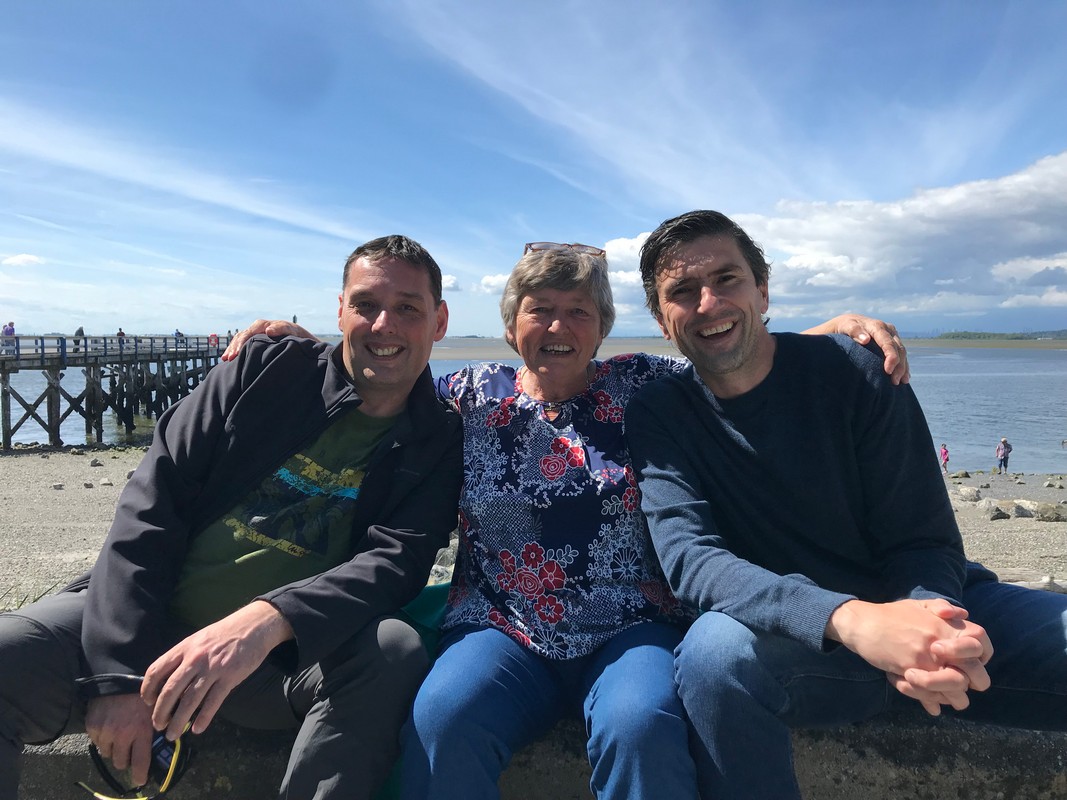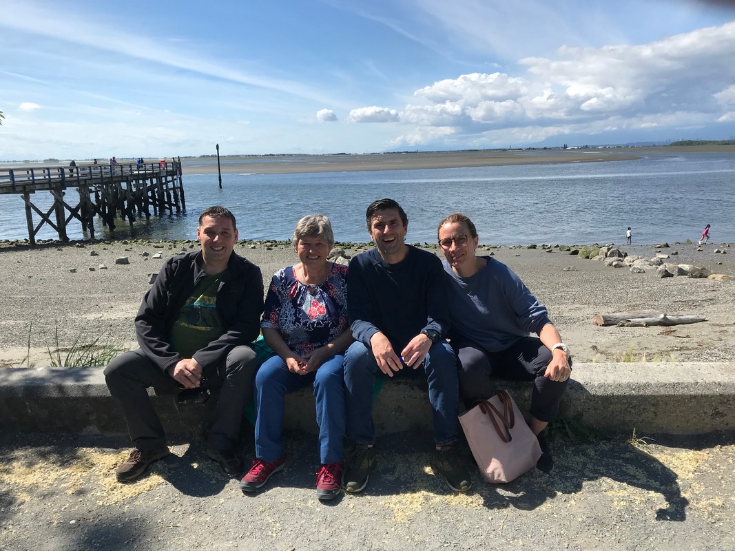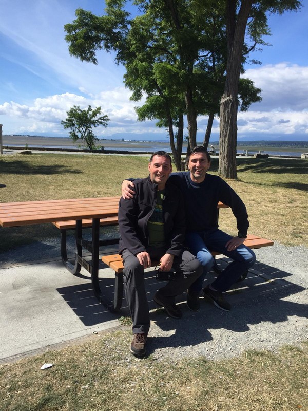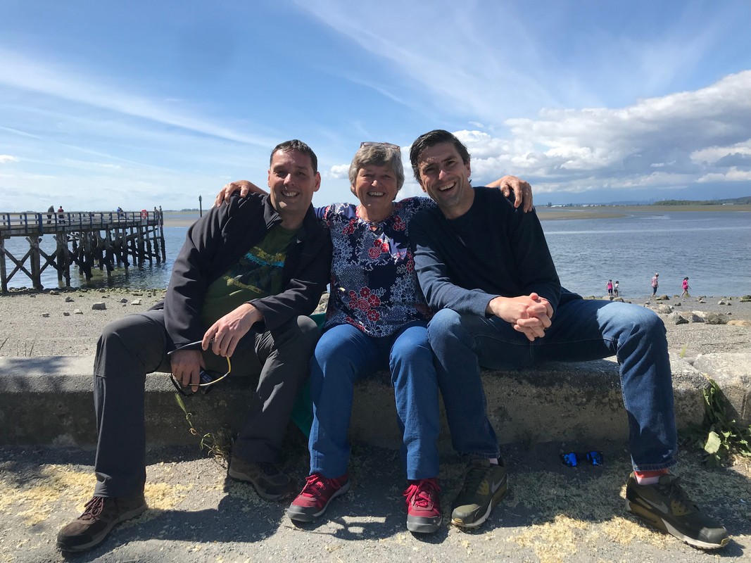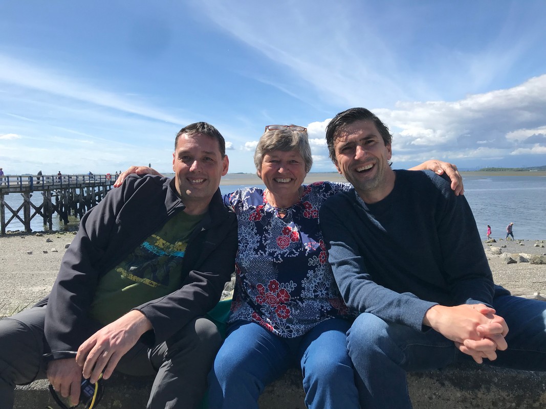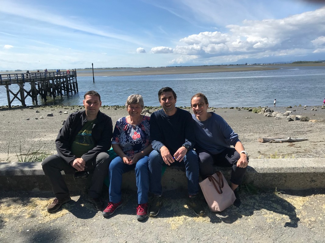 We werden wakker (gemaakt) door het piepen en kwaken van de eendjes die achter de camper “wonen”, dus nu ook weer ruim voor de wekker wakker. Eerst maar eens op ons gemak koffie gezet en de tafel gedekt voor het ontbijt. We hebben alle tijd, want vandaag gaan we op bezoek bij een jeugdvriend van Oscar die met zijn gezin in Vancouver woont. Juul en Oscar hebben mekaar zeker 30 jaar niet gezien, dit omdat we allebei naar verschillende middelbare scholen gingen en daarna studeren en zo zijn we mekaar uit het oog verloren. Bertie en Jeanny, moeder van Juul, hebben wel altijd nog contact gehouden en toen onze plannen van de reis bekend werden, is er gelijk geopperd om te kijken of we een ontmoeting konden regelen. Zo gezegd, zo gedaan en vandaag is het dan zover.