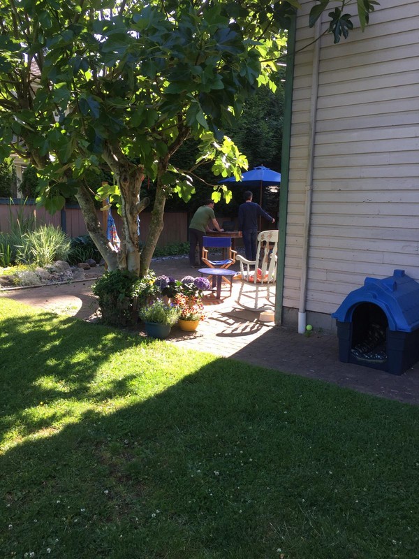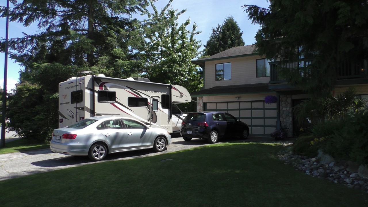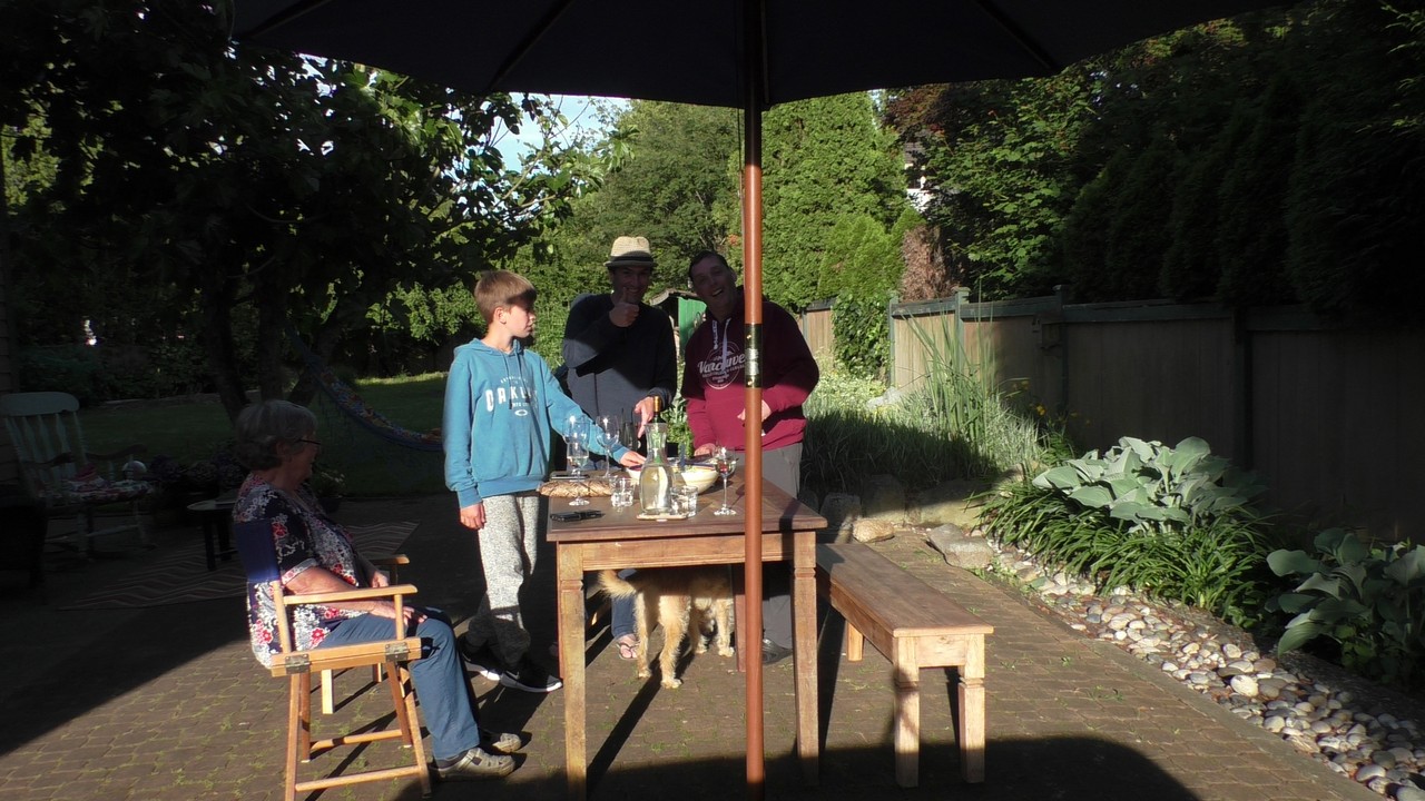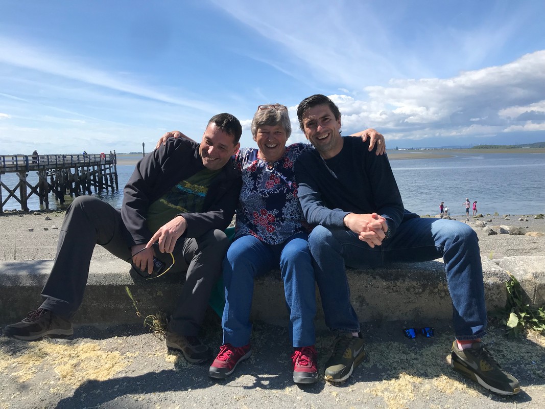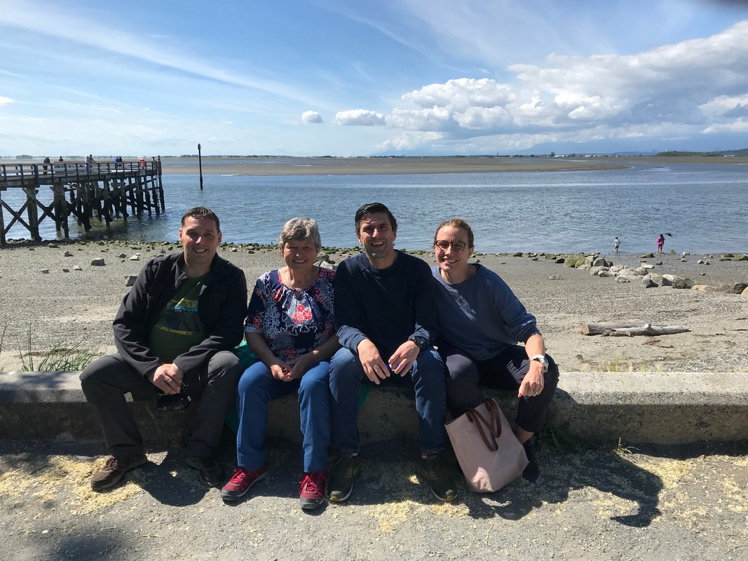 We werden wakker (gemaakt) door het piepen en kwaken van de eendjes die achter de camper “wonen”, dus nu ook weer ruim voor de wekker wakker. Eerst maar eens op ons gemak koffie gezet en de tafel gedekt voor het ontbijt. We hebben alle tijd, want vandaag gaan we op bezoek bij een jeugdvriend van Oscar die met zijn gezin in Vancouver woont. Juul en Oscar hebben mekaar zeker 30 jaar niet gezien, dit omdat we allebei naar verschillende middelbare scholen gingen en daarna studeren en zo zijn we mekaar uit het oog verloren. Bertie en Jeanny, moeder van Juul, hebben wel altijd nog contact gehouden en toen onze plannen van de reis bekend werden, is er gelijk geopperd om te kijken of we een ontmoeting konden regelen. Zo gezegd, zo gedaan en vandaag is het dan zover.