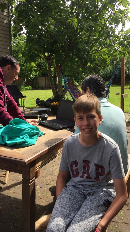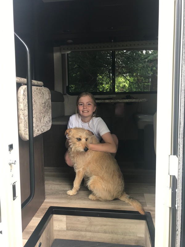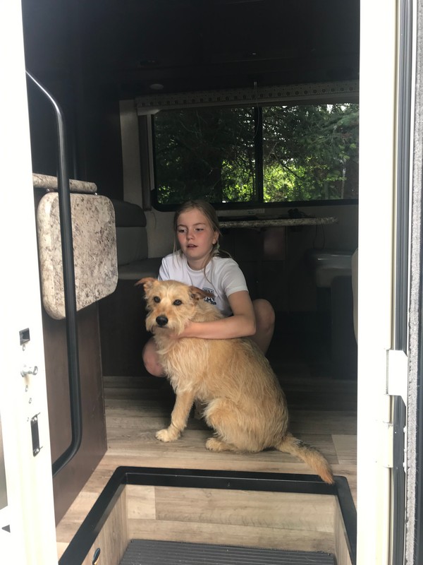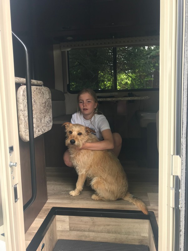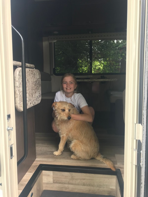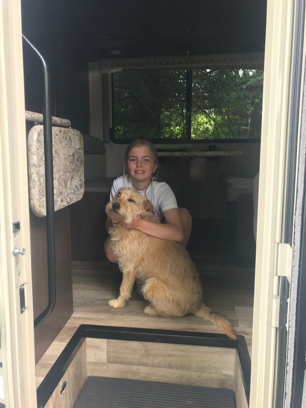 We werden zeer hartelijk ontvangen en de klik was er ook weer meteen. We hebben de camper op de oprit geparkeerd en de stroom aangesloten en hebben daarna gezellig met z’n alle koffie gedronken, daarna geluncht, de hond uitgelaten, naar het strand gereden en een stukje langs het water gewandeld en ‘s avonds hebben we heerlijk gebarbecued. We hadden zoveel aan mekaar te vertellen dat we tegen 23.30 uur schrokken van de tijd. Het was ook zo gezellig.
