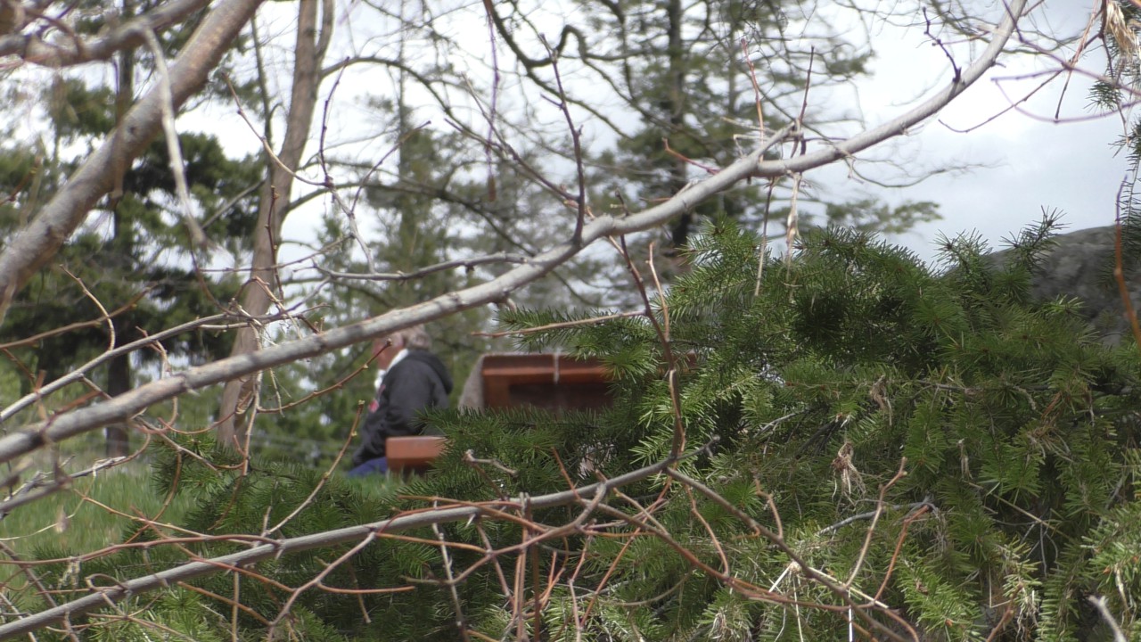 We hebben eerst ontbeten op de camping met uitzicht op sneeuw en de verwarming was nog aan. Toen om ons gemak alles weer rijklaar gemaakt, dus stroom eraf, afvoer opbergen en de waterslang ontkoppelen, ook niet de slide-out intrekken anders ben je wel heel erg breed op de weg.