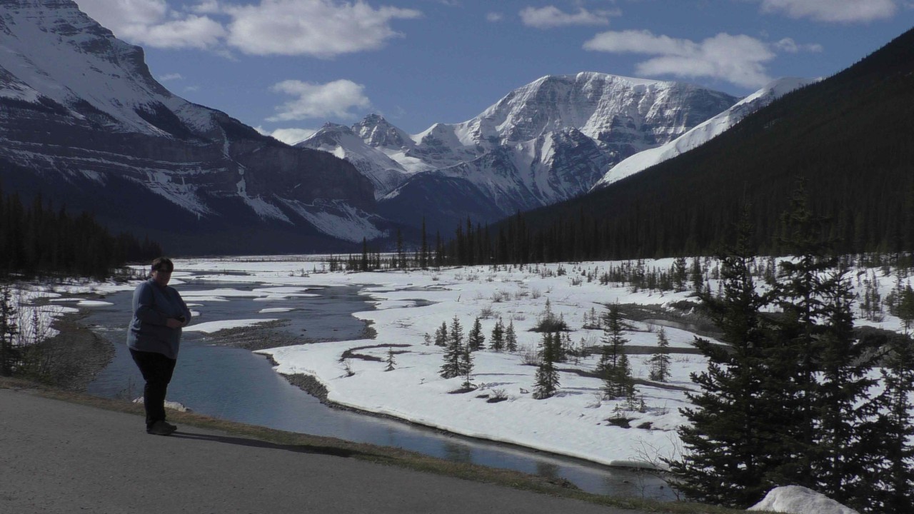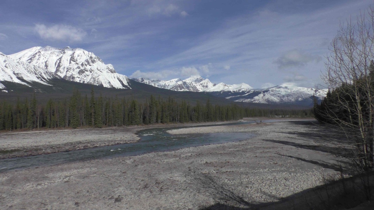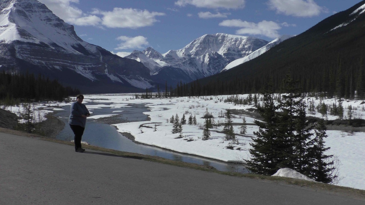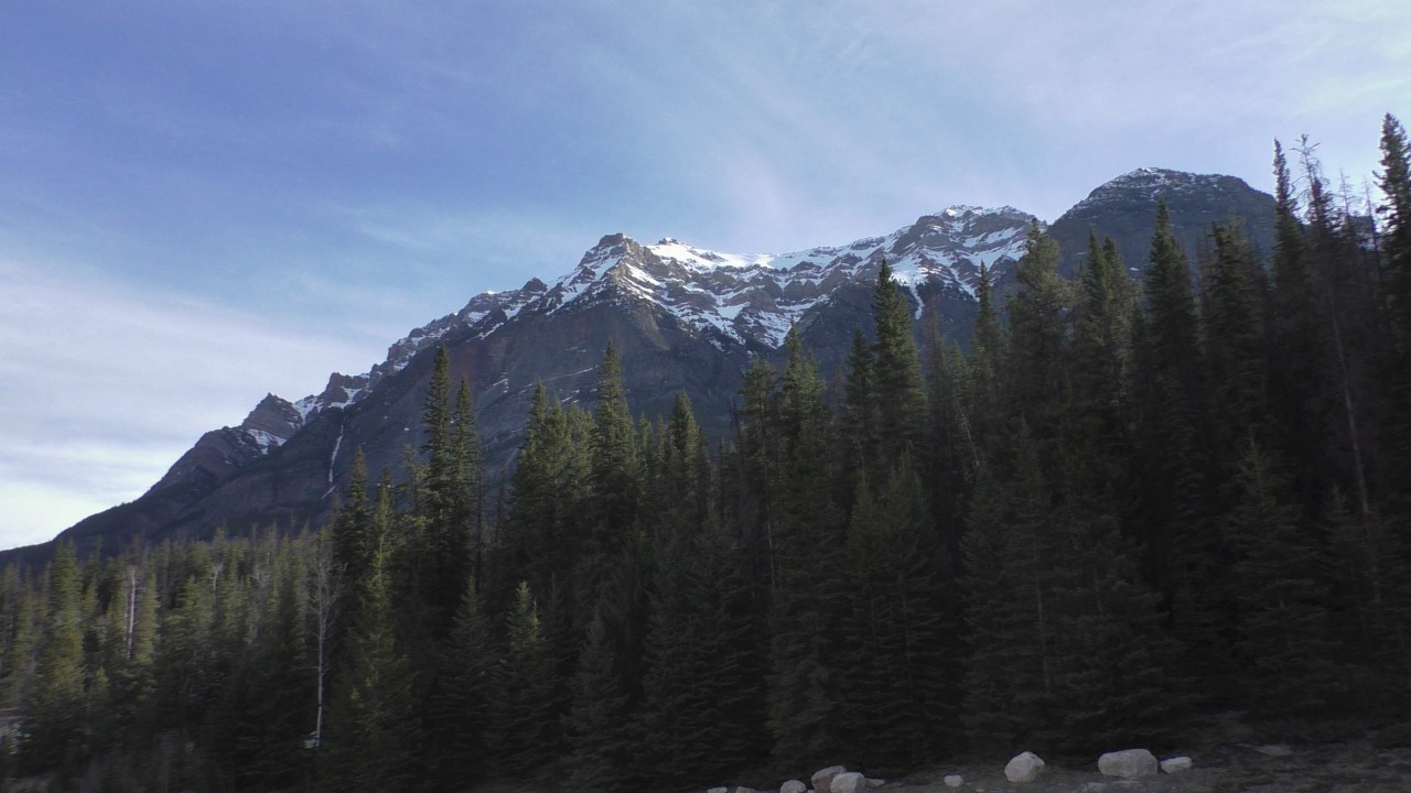 Inmiddels is de koffie ook klaar en zitten we net na 07.00 uur aan de koffie en zien de zon boven de bergen uitkomen. We maken ons verder klaar om ook op tijd te vertrekken. Vandaag doen we nogmaals de Icefield Parkway, maar nu in de andere richting EN nu ook met zon. Het ziet er compleet anders uit als eergisteren. We stoppen niet overal, maar hadden op de heenweg al een paar favoriete plekjes gezien. De eerste stop wordt dan ook de ontbijtstop en oh wat een uitzicht. Heerlijk……..