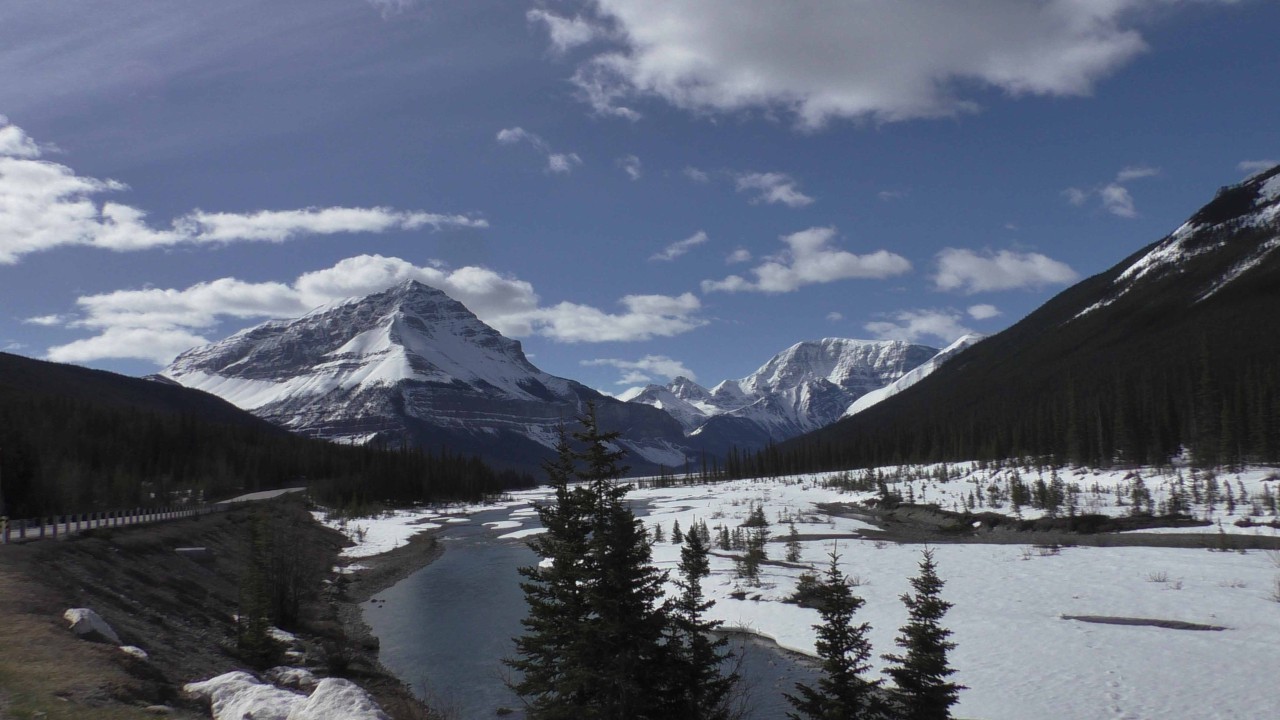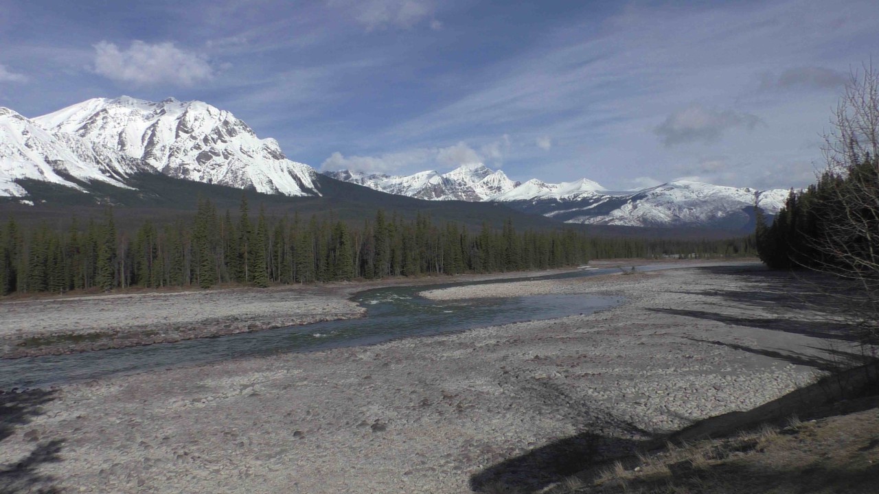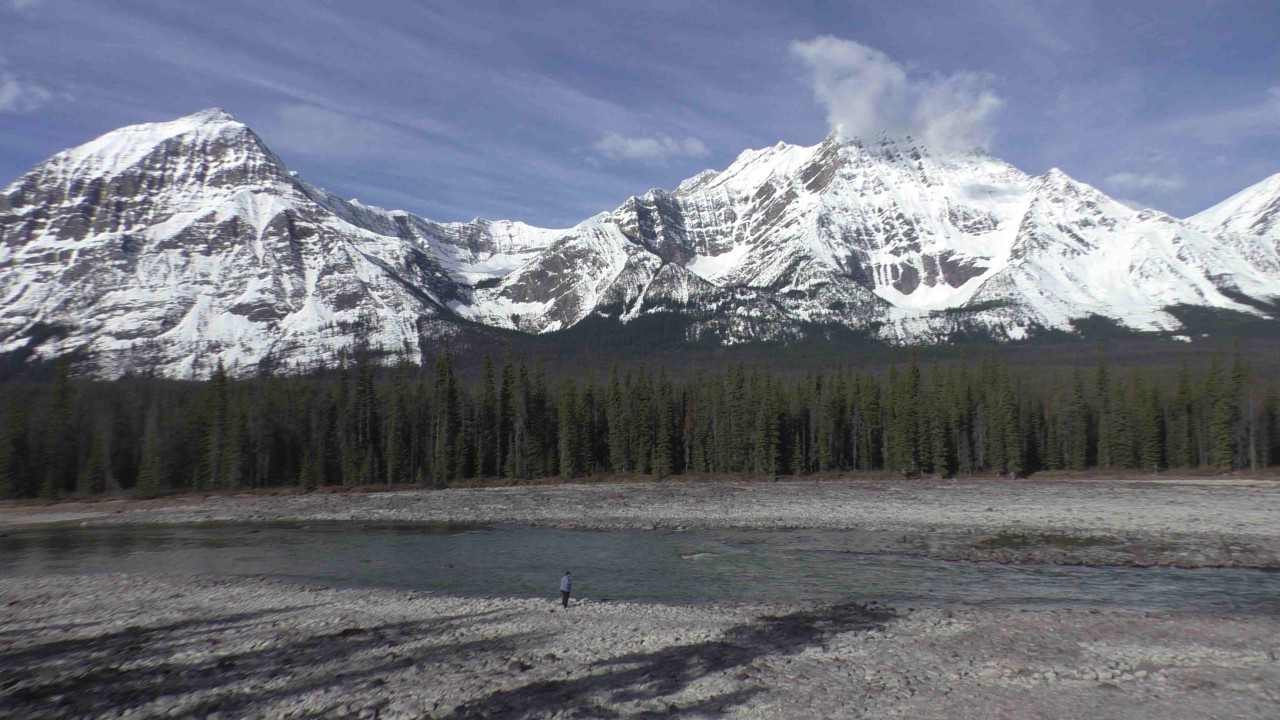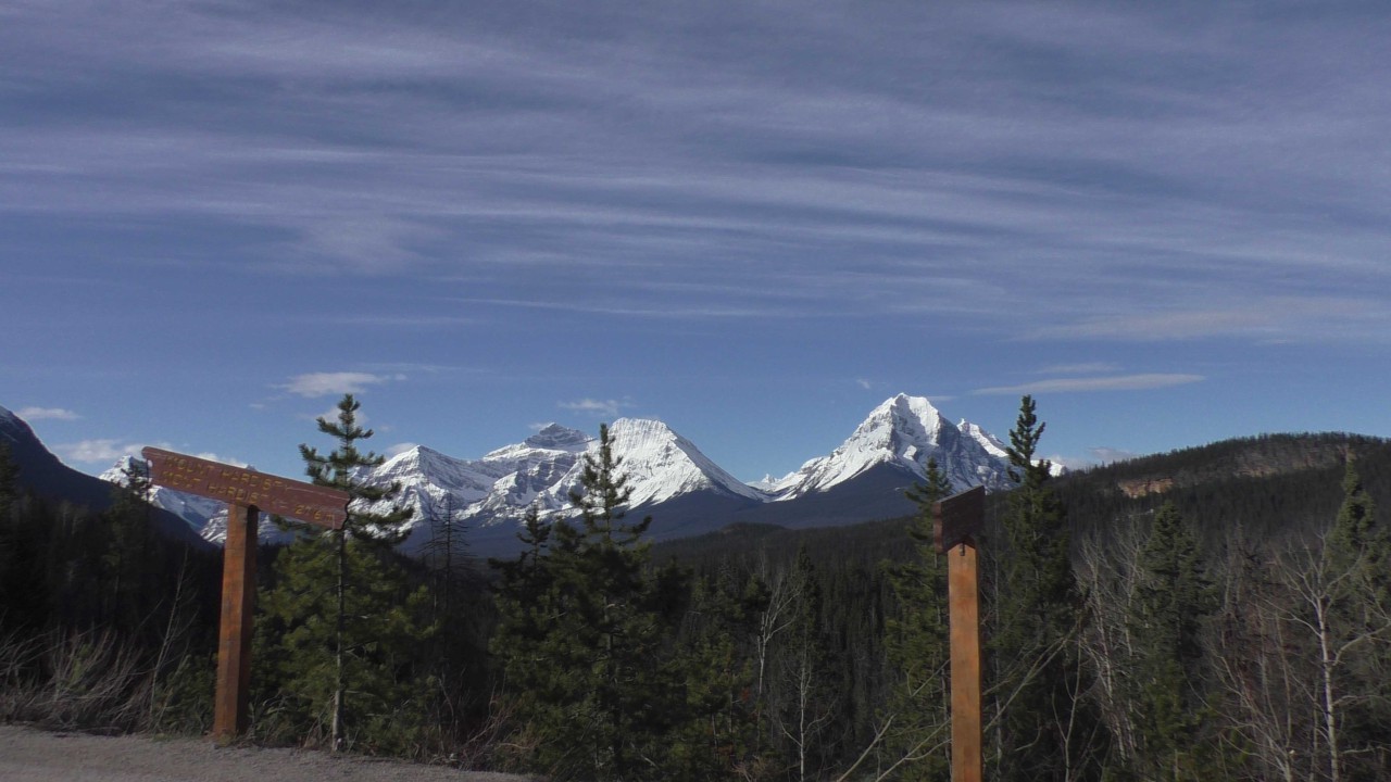 Inmiddels is de koffie ook klaar en zitten we net na 07.00 uur aan de koffie en zien de zon boven de bergen uitkomen. We maken ons verder klaar om ook op tijd te vertrekken. Vandaag doen we nogmaals de Icefield Parkway, maar nu in de andere richting EN nu ook met zon. Het ziet er compleet anders uit als eergisteren. We stoppen niet overal, maar hadden op de heenweg al een paar favoriete plekjes gezien. De eerste stop wordt dan ook de ontbijtstop en oh wat een uitzicht. Heerlijk……..