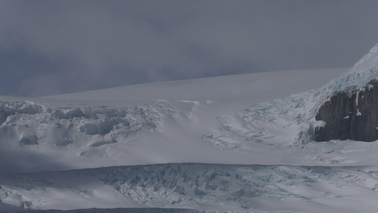 We rijden verder door de ansichtkaart en we komen uit bij de Gletsjer. Eergisteren compleet in de mist en met een ijzige koude wind, nu compleet zichtbaar en een heerlijk zonnetje. Het is er wel koud, maar daar kan je op kleden. Muts en handschoenen aan en gaan.