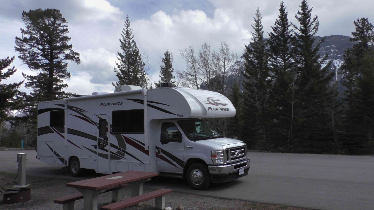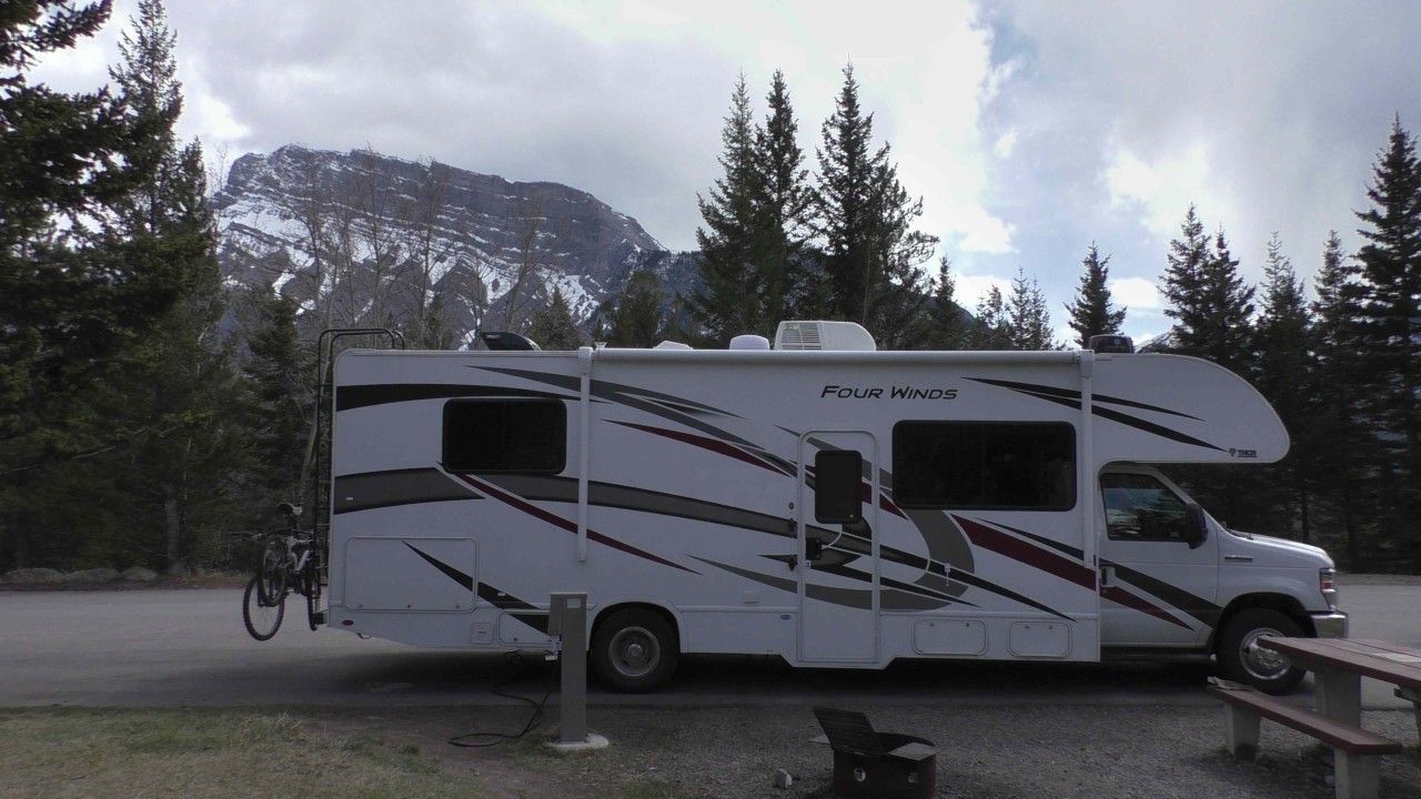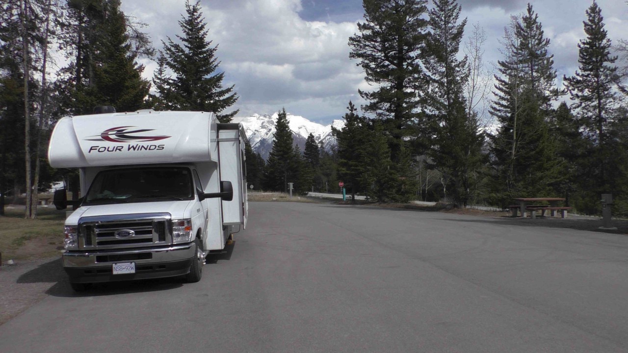 We rijden met een goed gevoel bij de gletsjer weg, fijn dat we nog een kans hadden om dit te zien met een beetje zonneschijn. Gestaag rijden we verder en stoppen nog een paar keer voor wat extra foto momentjes en voordat je het weet rij je thv Lake Louise en ben je van de Parkway af. De volgende stop is dan de camping in Banff. We staan op Mountain tunnelview II. De camping op zich is niet bijzonder, maar we kijken wel 360 graden tegen hoge bergtoppen aan.