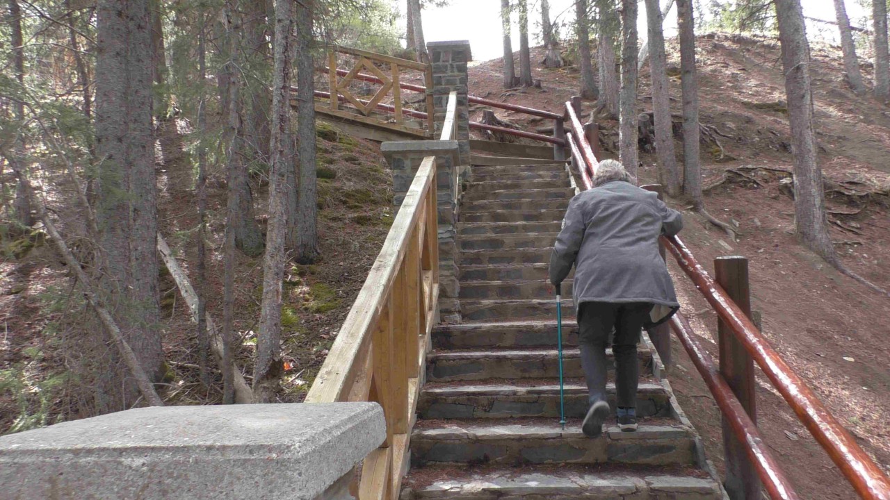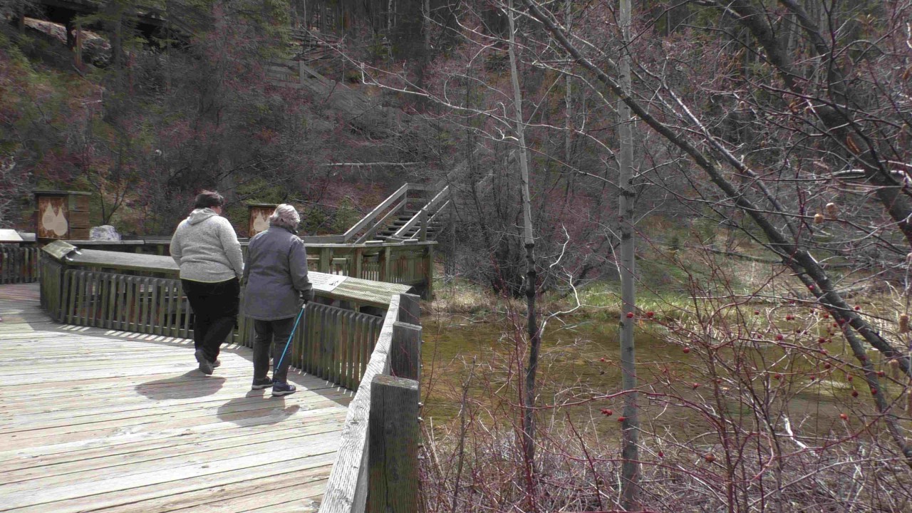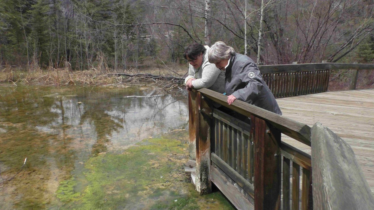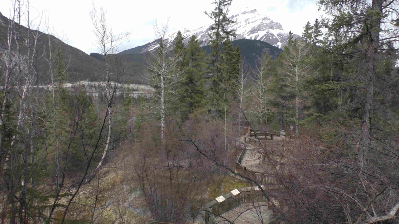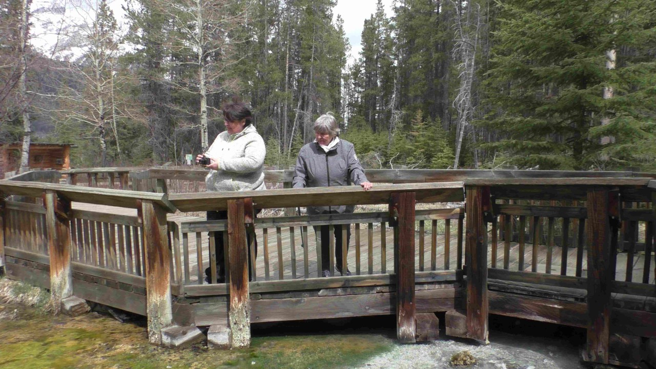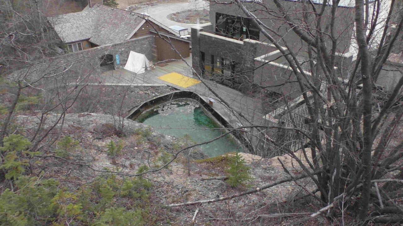 We halen de camper weer op en gaan met de camper naar de Cave en Basin Nationel Historic Site. Er is ruimte zat om onze camper te parkeren. Er is een boardwalk rondom een aantal kleine waterplassen en hier zie je het water uit de berg komen. Het water heeft een hoog zwavel gehalte en dat is ook te ruiken. Niet zo extreem als toen in Yellowstone, maar toch is de geur duidelijk aanwezig. We lopen de boardwalk en zien zo toch nog wat van de springs en een stukje van de grot(ten).