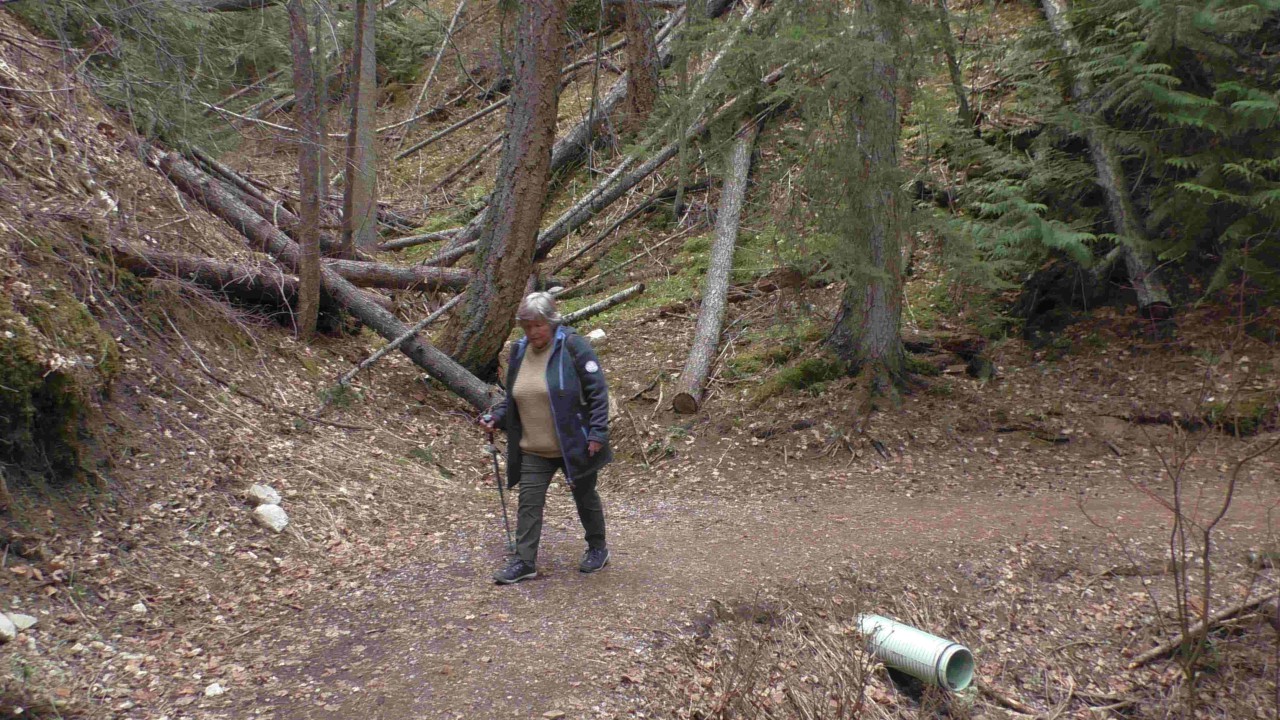 Inmiddels is ook de zon volop aan het schijnen en dan wordt het toch wel warm, dus we gaan uit het water en lopen in het zon (en soms in de schaduw van de bomen) terug naar de camping. Toch weer 2,3 km…..up & down en de knieen van moeders doen het goed. Zou dan toch het warme water zijn krachten hebben 😉