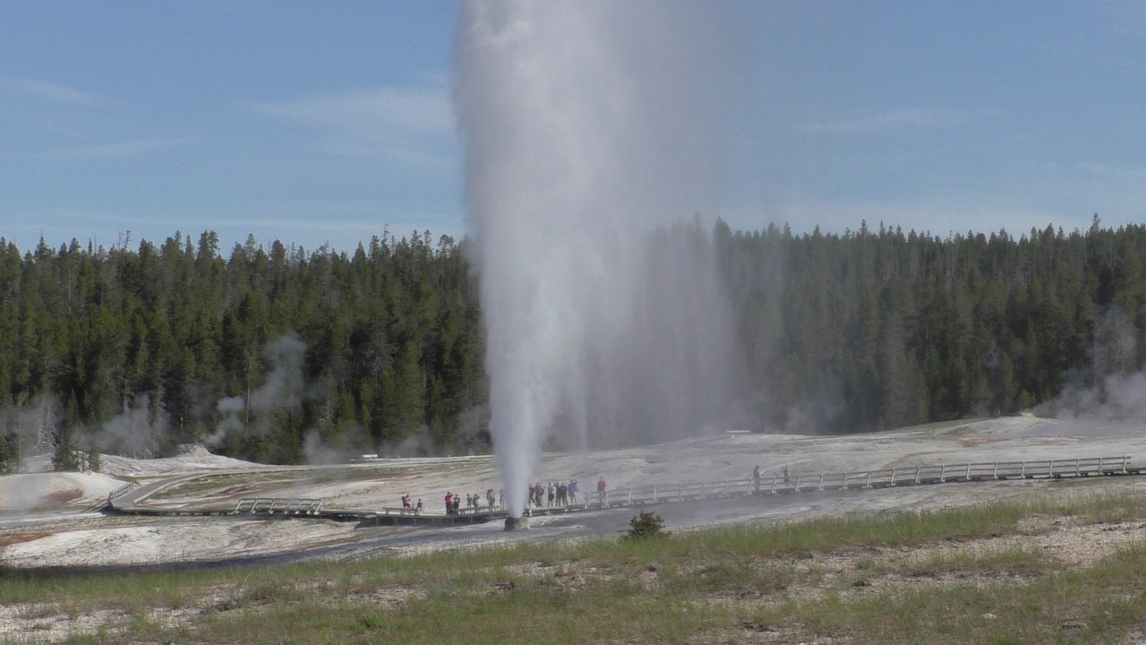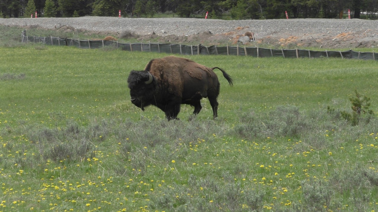 Dan volgt hier het filebericht : In Yellowstone staat er een kleine file richting noorden, dit wordt veroorzaakt door een aantal bizons op de weg. Haal niet in, blijft rechts rijden en probeer de...