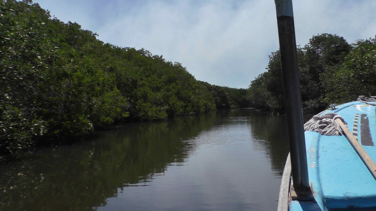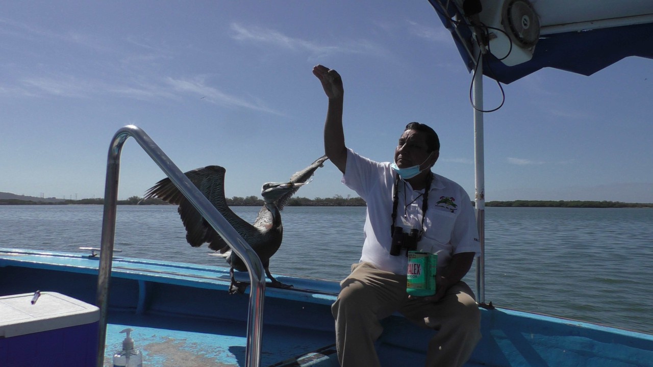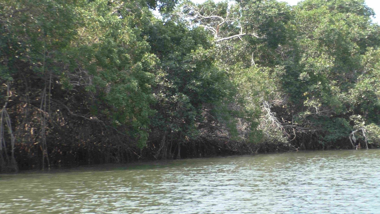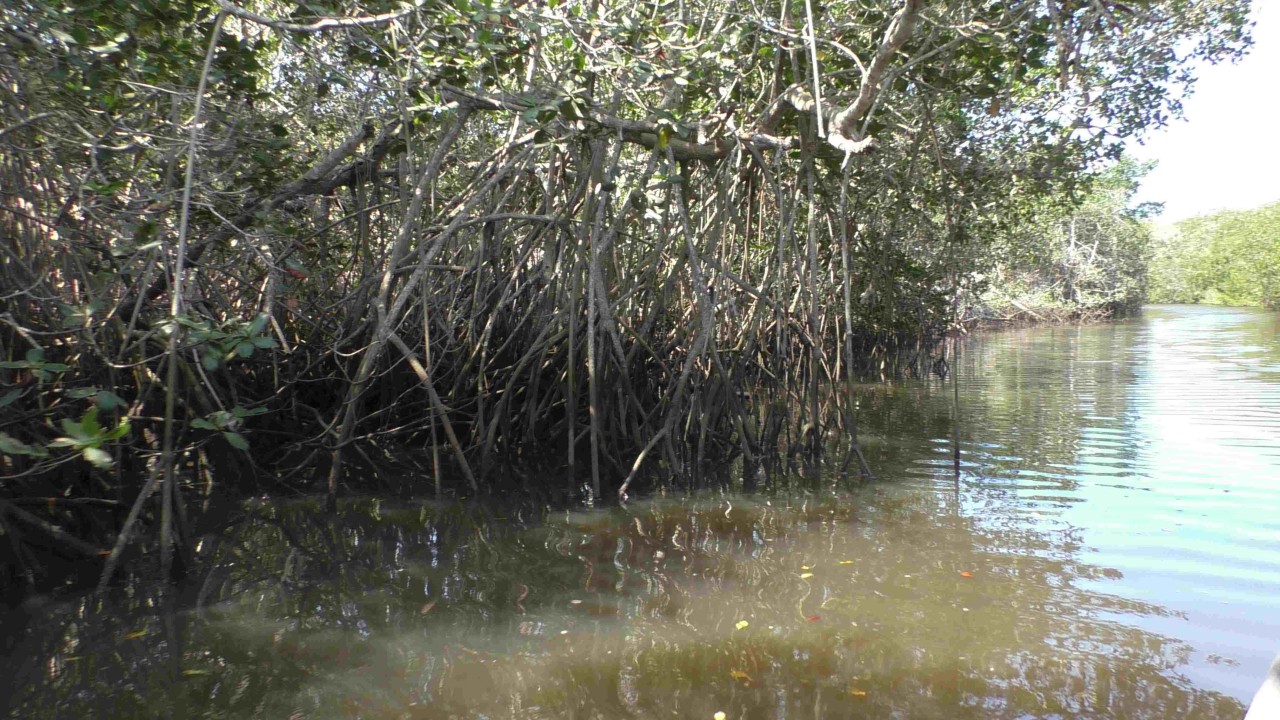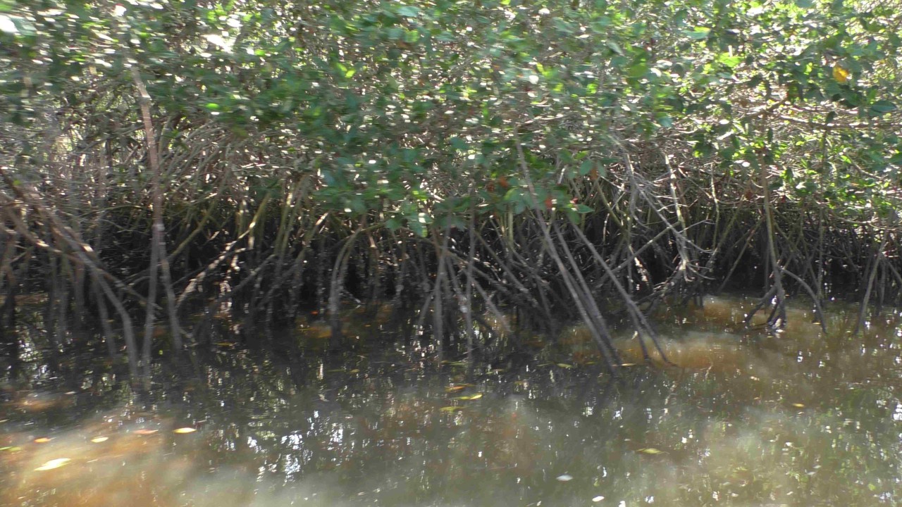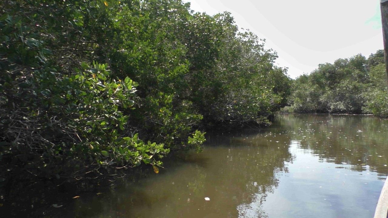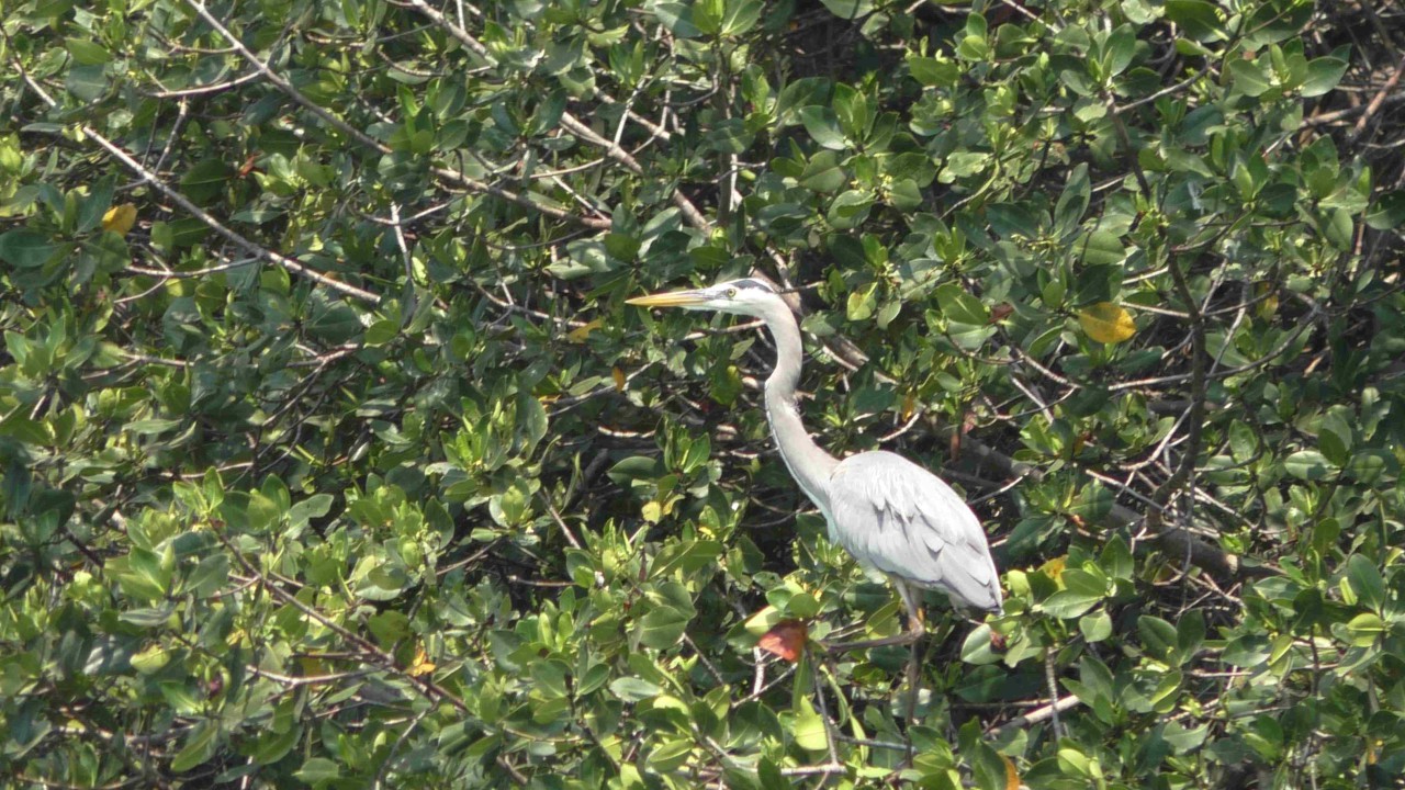 Er staat weer een bus voor ons klaar, maar de rit is maar kort, na 10 minuten staan wij bij het bootje waarmee we de mangroves in gaan. Onze gids, die voor zijn pensionering piloot is geweest op een privéjet, heeft er plezier in om ons wat te vertellen over de streek en de wildlife die hier is. Ook is zijn Engels goed en krijgen we daardoor elke keer een mooi verhaal te houden. Hij zit vol met grapjes en grollen en de stemming is goed. Hij verteld dat hij een 3-tal pelikaan vrienden heeft en wellicht dat er straks iemand op bezoek komt……de boot ligt dubbel van het lachen, maar opeens vliegt er een pelikaan rondom de boot die daarna heel gemoedelijk op de boeg gaat zitten en is absoluut niet bang. Hij krijgt een visje van onze gids (schijnbaar gebeurt dit dus echt vaker) en de halve reis blijft hij als een soort boegbeeld op boot zitten. Hij bedelt niet om nog meer vis, maar blijft zitten totdat we de echte dichte mangroves binnenvaren, dan heeft hij genoeg gerust en vliegt rustig weg. Echt heel bizar en leuk.