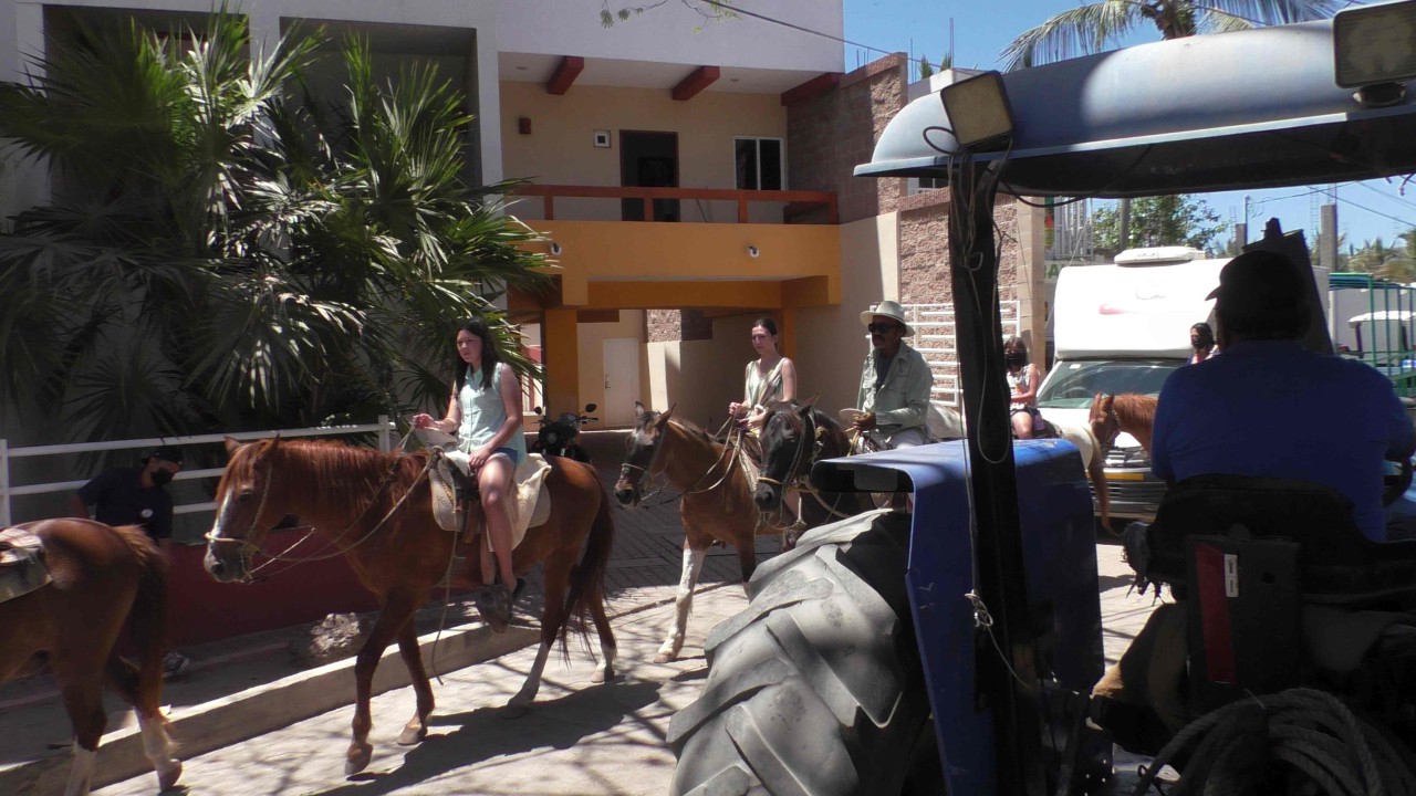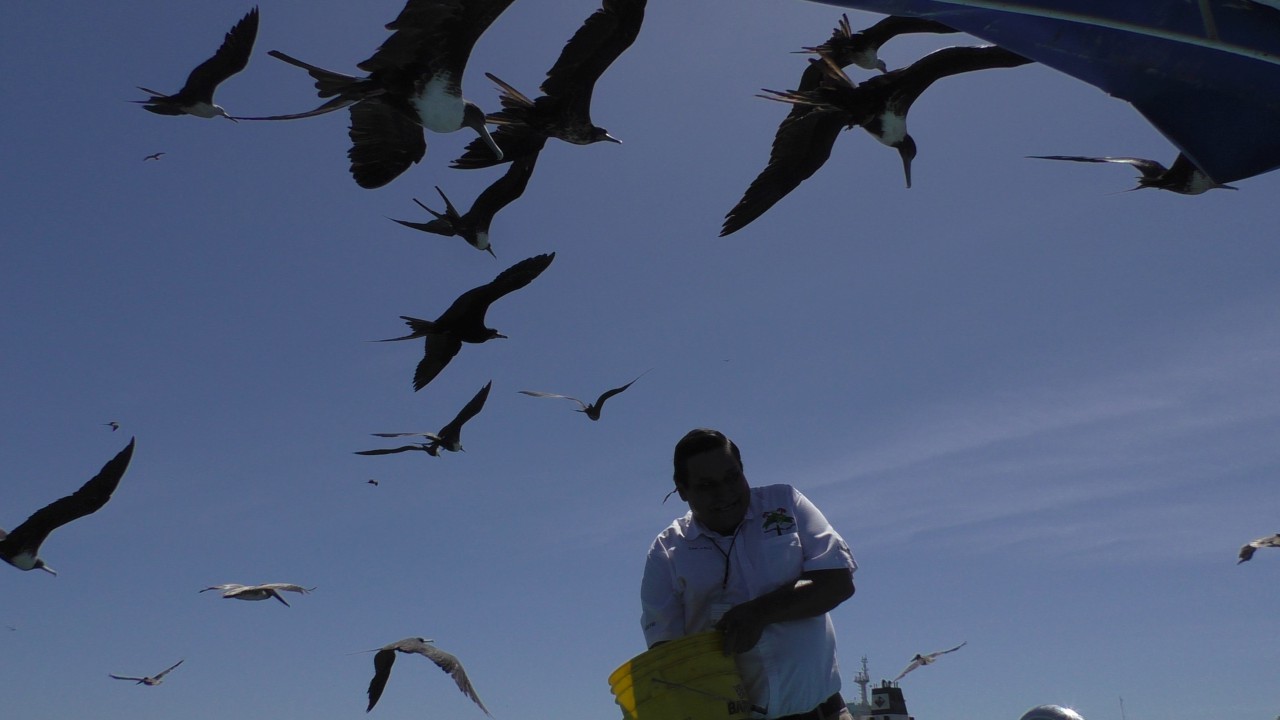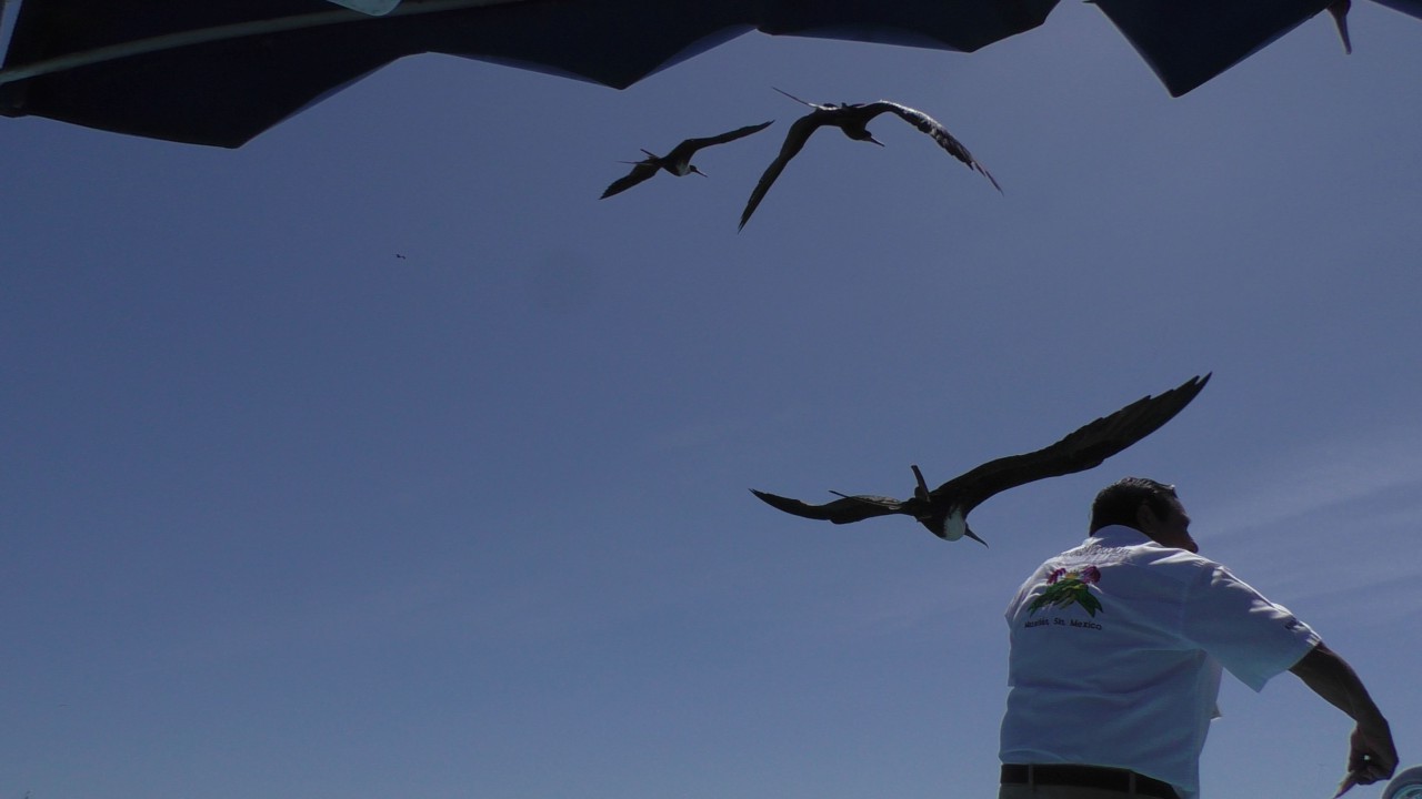 Na een leuke en hobbelige rit achter de trekker stoppen we bij een restaurant aan het strand. Hier wordt een Mexicaanse lunch geserveerd. Niet zo’n snack als gisteren, maar een normale lunch die ook erg lekker was. Ook was er gelegenheid om even het strand op te lopen. Het strand was ook druk bezocht door de locals (en ook wat Amerikaanse toeristen). We gaan na de lunch weer verder met paard- en wagen uhhhh oh nee, met trekker en wagen en worden afzet bij een bootje die ons weer overzet naar de andere kant van de haven. Onderweg worden er nog een paar vissen gevoederd aan wat overtrekkende en rondvliegende vogels. Het was een prachtige excursie en de dag was ook weer zo voorbij.