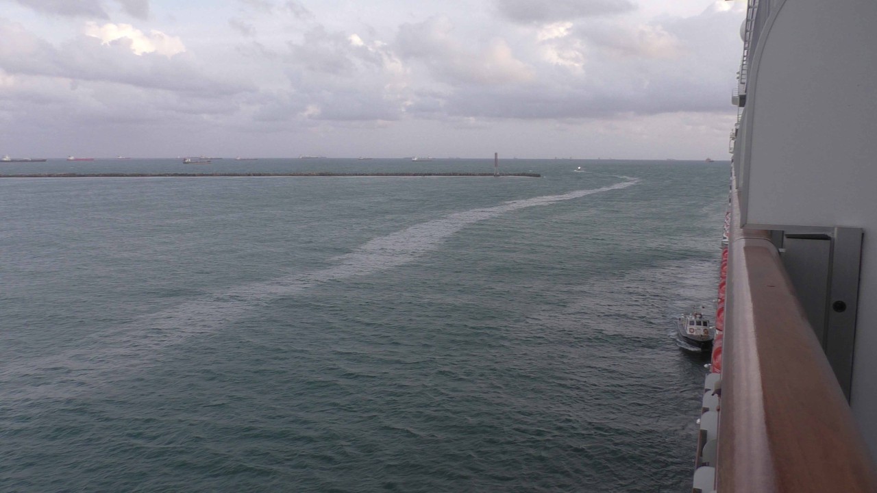 Maar wellicht willen jullie iets meer horen, dus ik ga proberen een wat uitgebreidere samenvatting te geven. Ondanks dat het vakantie is toch de wekker om 6.30 uur gezet. De kapitein wilde rond de klok van 08.00 uur de sluizen binnen varen en aangezien wij op ons balkon het wilde volgen moesten we op tijd in de ontbijtzaal zijn. Nou ja ontbijtzaal, wij eten eigenlijk elke morgen nog buiten op het zwembadterras op het achterdek.