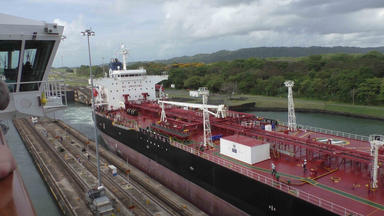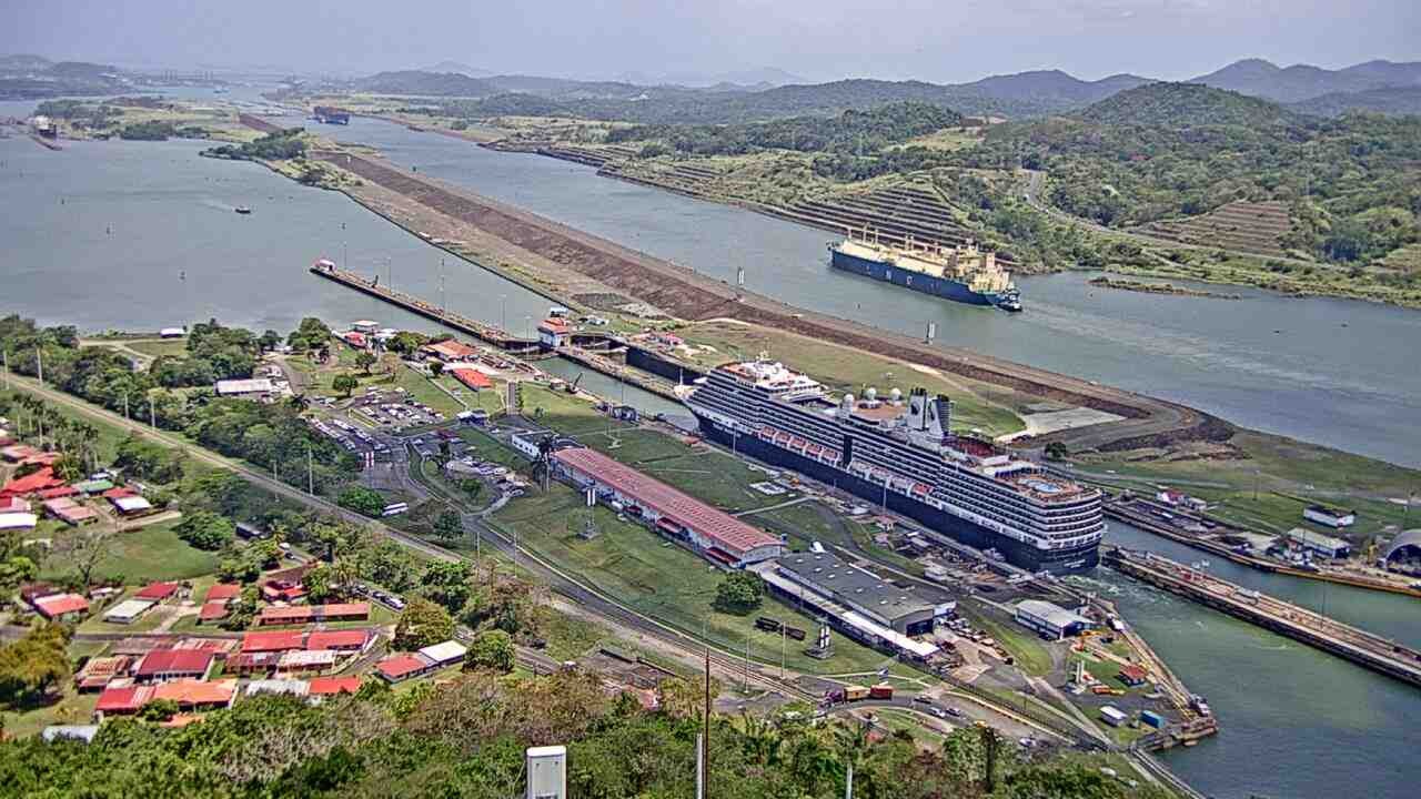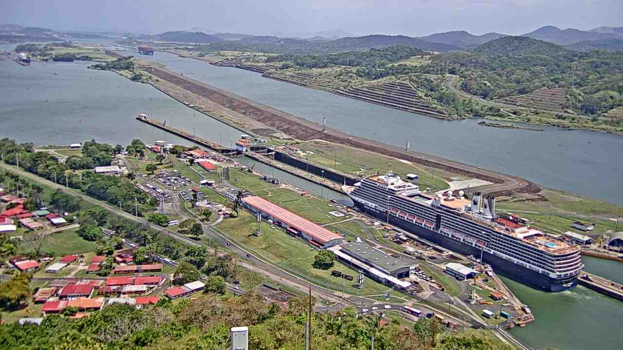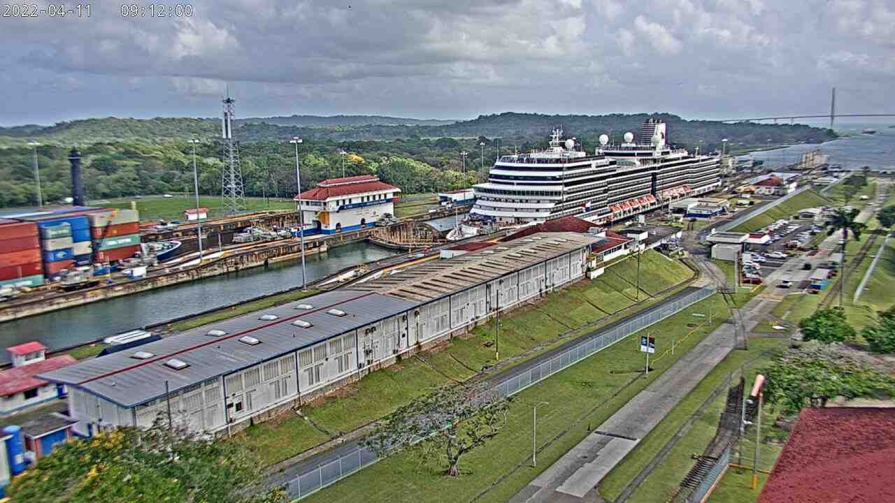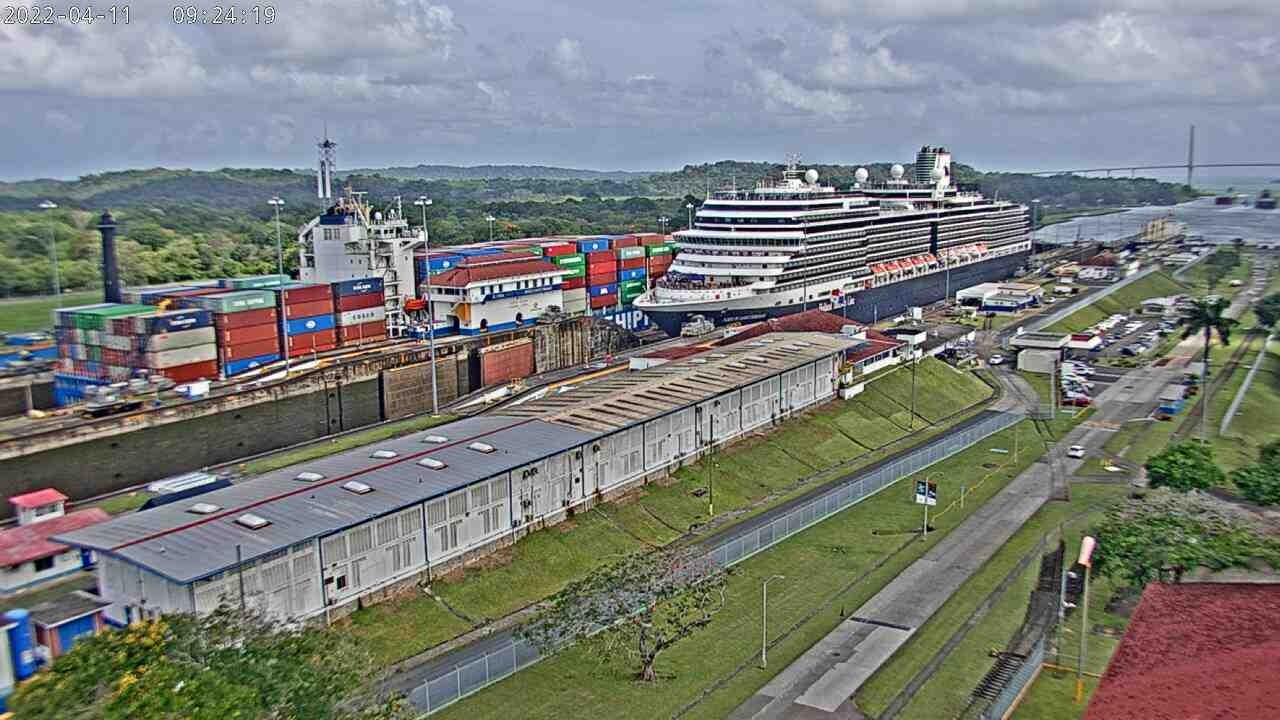 Met de koffie nog in ons hand snel terug naar de hut, want de kapitein heeft haast en we gingen dus al eerder de sluizen in. Wij gaan de sluizen van het “oude” panamakanaal nemen, de nieuwere zijn grotere en kunnen ook grotere schepen schutten. De New Amsterdam is een schip dat nog in de oude sluizen past. Wel zo leuk, want hier heb je die wel bekende locomotieven die het schip in positie houden en voorttrekken door de sluizenkamers.