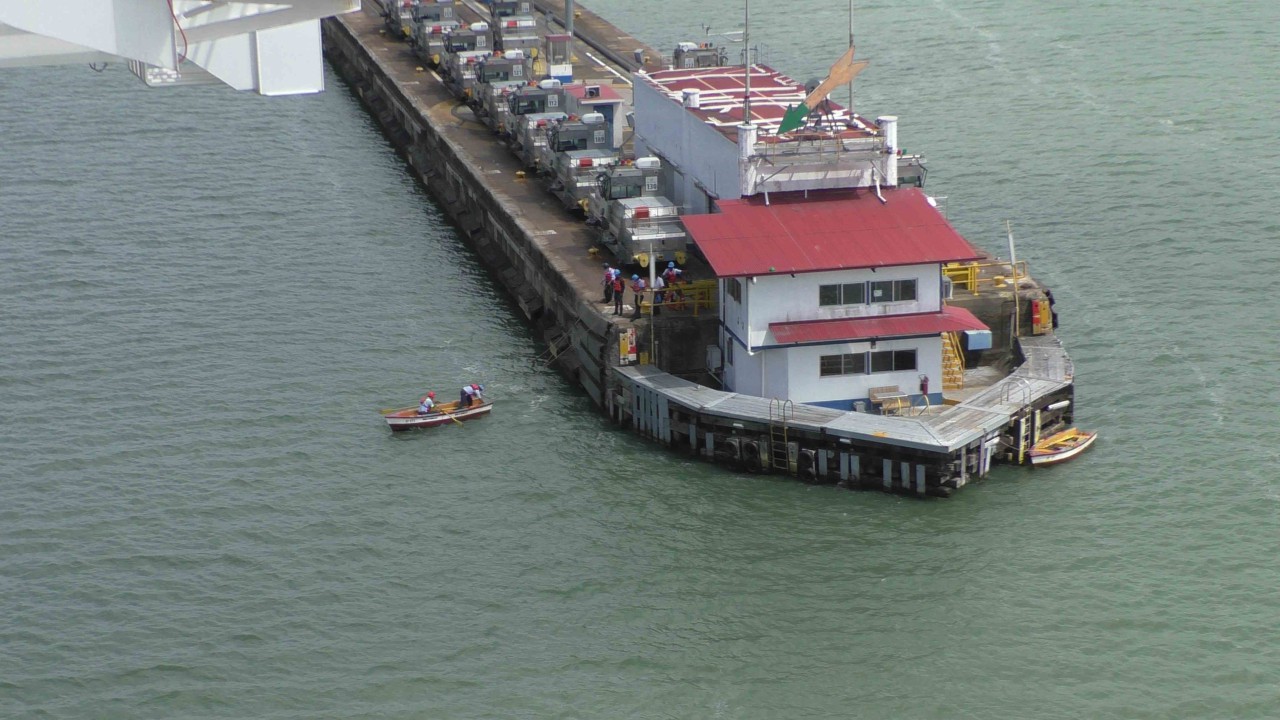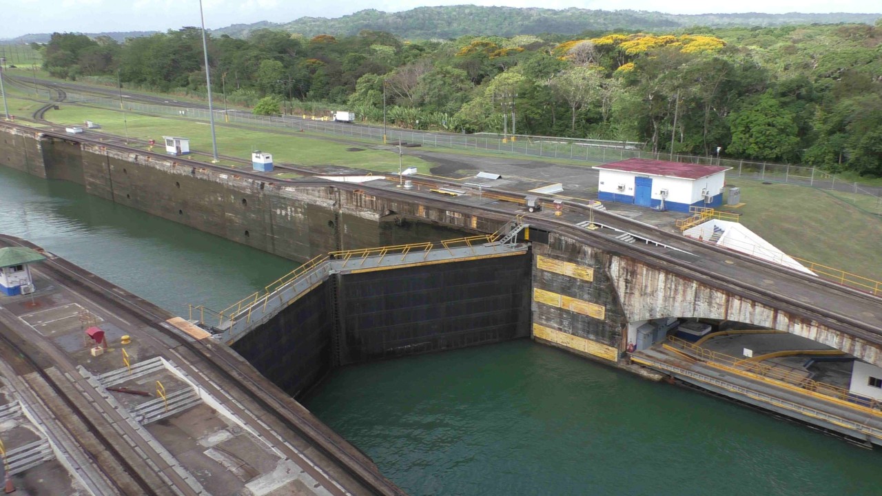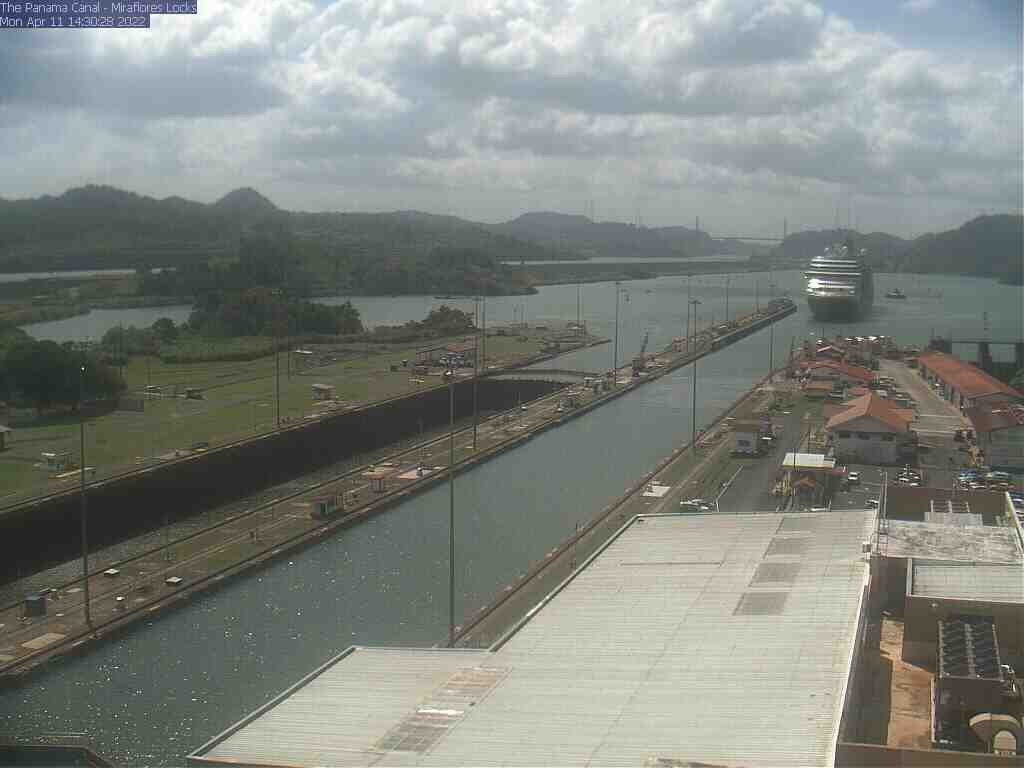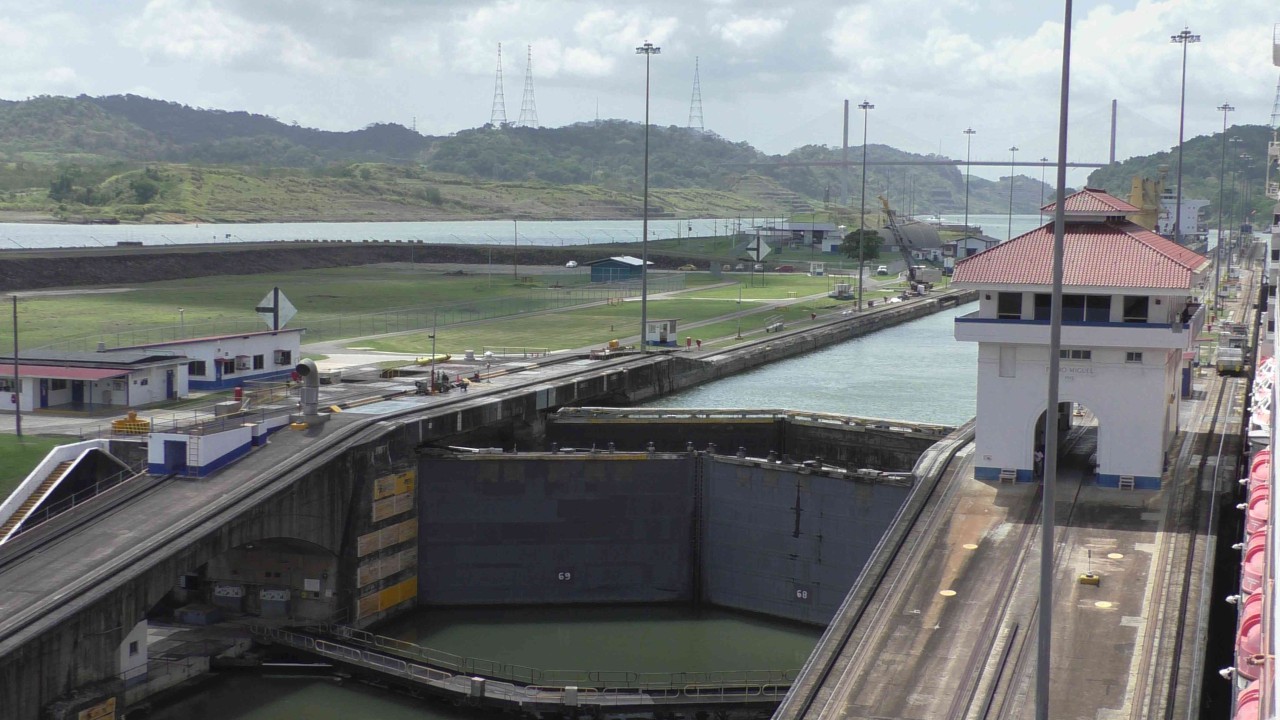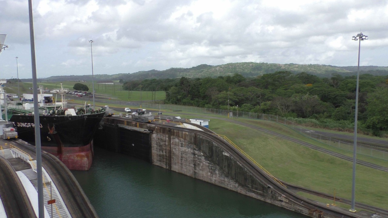 We komen aan bij de 2e sluis, de Pedro Miguel Lock, deze sluis heeft maar 1 kamer, een stukje verder zijn de Mariflores Locks en deze bestaat uit 2 kamers en brengt ons weer terug op zeeniveau.