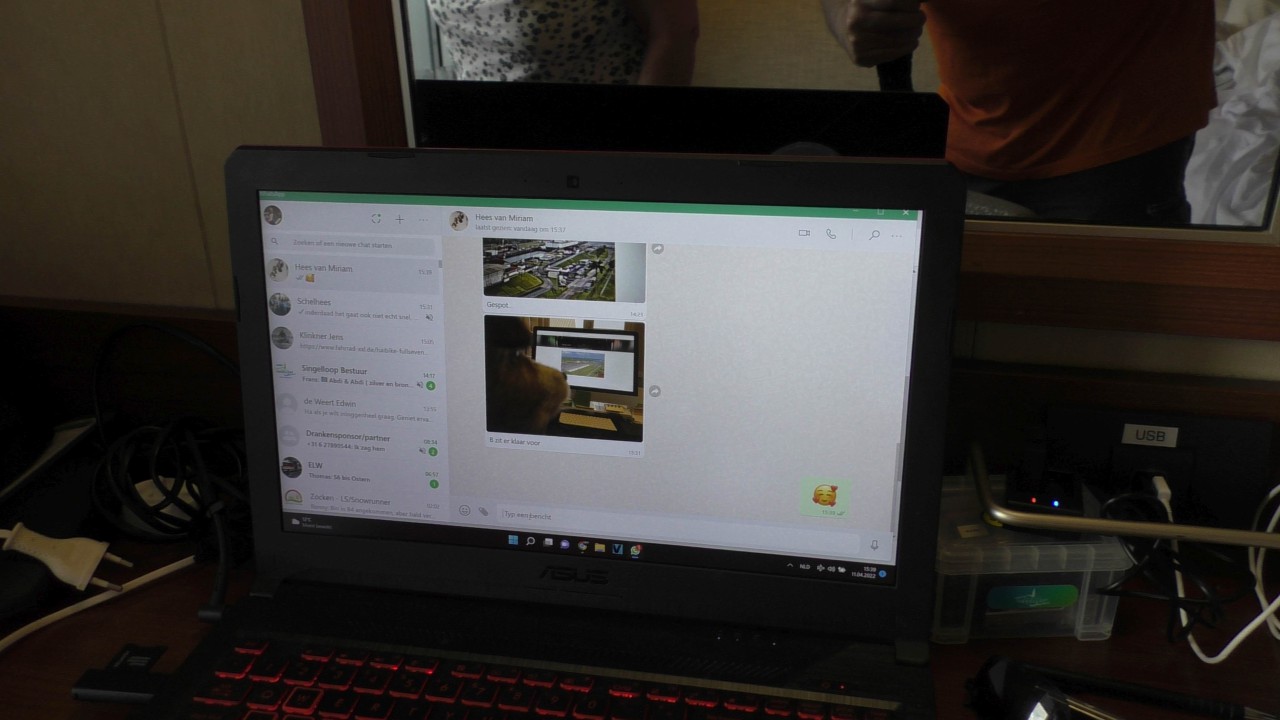 Omdat het buiten echt heel erg warm is, wisselen we af met binnen in onze hut in de airco en buiten op het balkon. In de hut kunnen we via de boegcamera kijken wat er voor ons gebeurt en we hebben ook de webcams van de diverse sluizen op staan. Ook krijgen we regelmatig een update vanuit Nederland. Dank je wel Miriam voor de foto’s en de info. Leuk……….