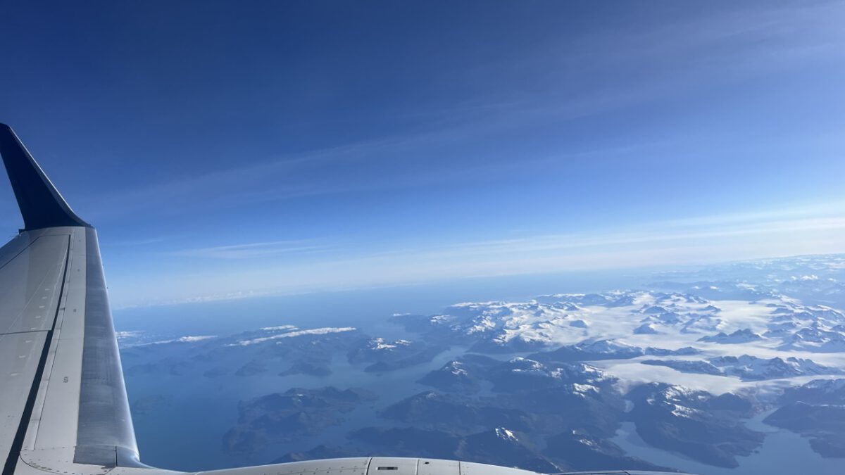 Nog drie uurtjes en dan… touchdown in Anchorage! Geen extra controles meer hier. Je loopt gewoon naar binnen, pakt je koffers van de band en wandelt naar de Uber-pick-up. Even in de app een ritje bestellen, en vier minuten later staan we buiten met een vriendelijke chauffeur die ons keurig naar het hotel brengt.