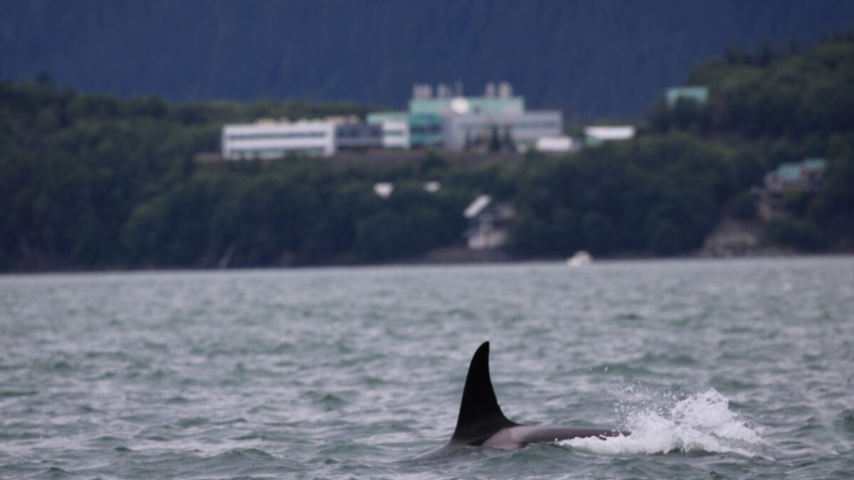 We worden opgevangen door Rachel, onze tourgids voor vandaag. Met een klein busje rijden we in zo’n twintig minuten naar een andere haven. Daar stappen we op een klein bootje en met veertien personen hebben we ruimte genoeg. De verschillende boten staan met elkaar in verbinding en al snel kraakt de marifoon: er is een pod (groep) orka’s gespot, en laat dat nou net op onze route liggen.