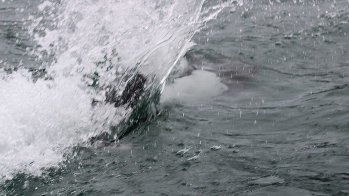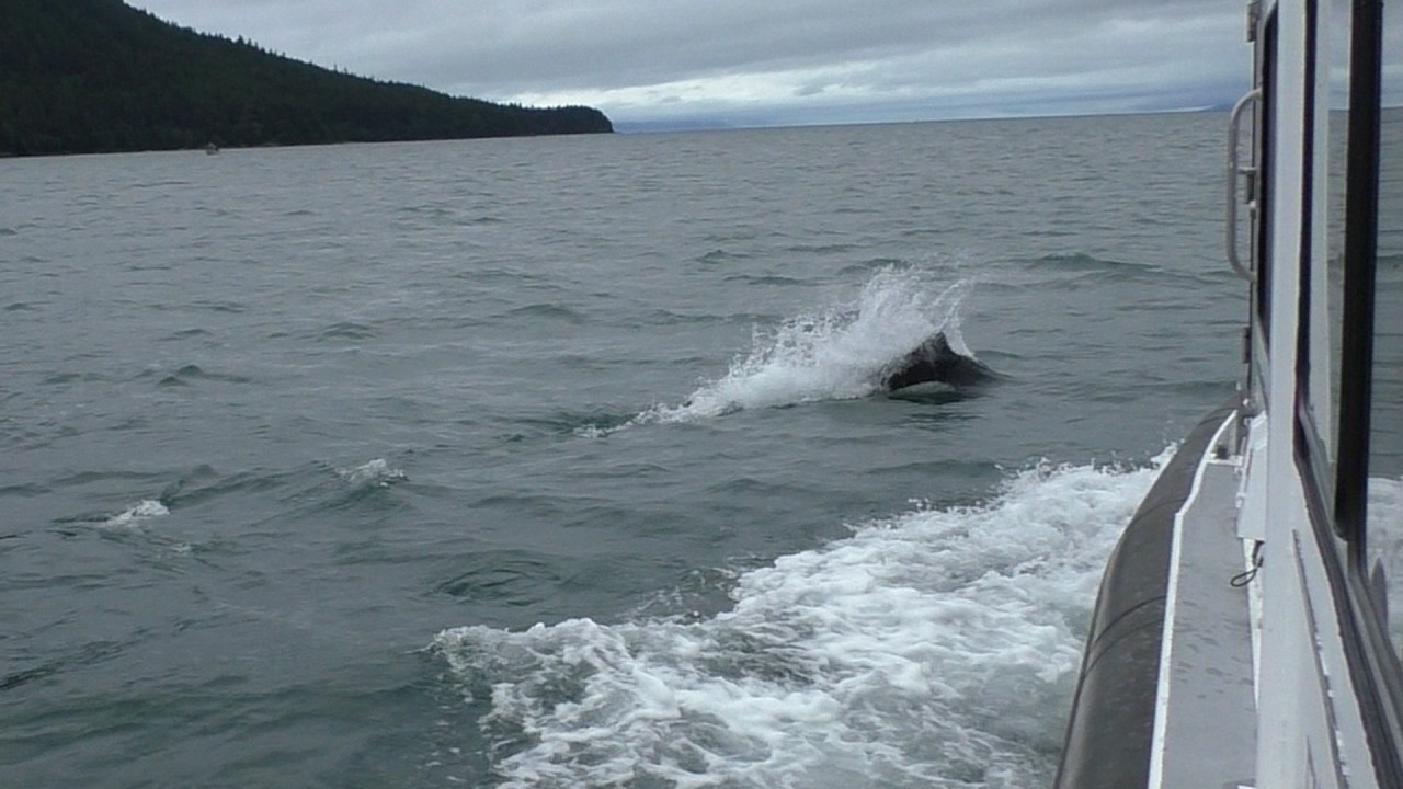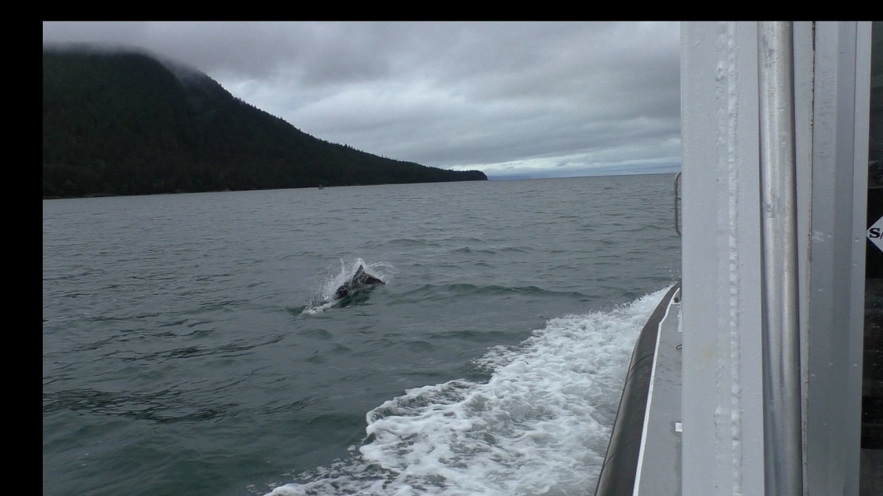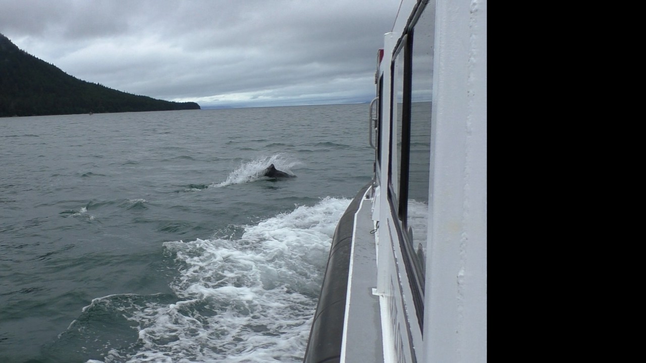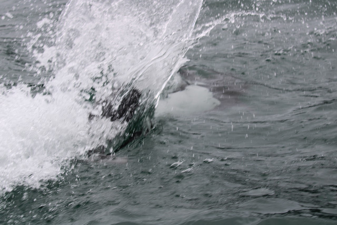 De kapitein spot een paar Dall’s porpoises (bruinvissen). Ze zijn supersnel en hebben een karakteristieke spray, een zogenaamde “hanenstaart”. Ze zijn lastig te fotograferen, maar met de videocamera hebben we ze toch even kunnen vastleggen.