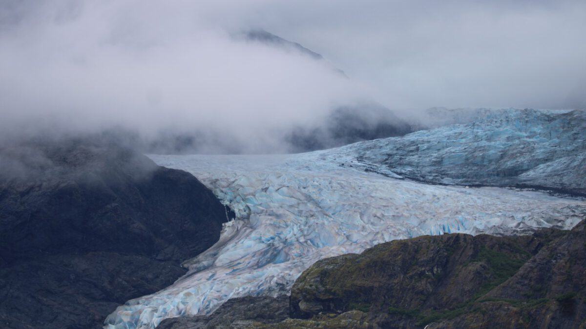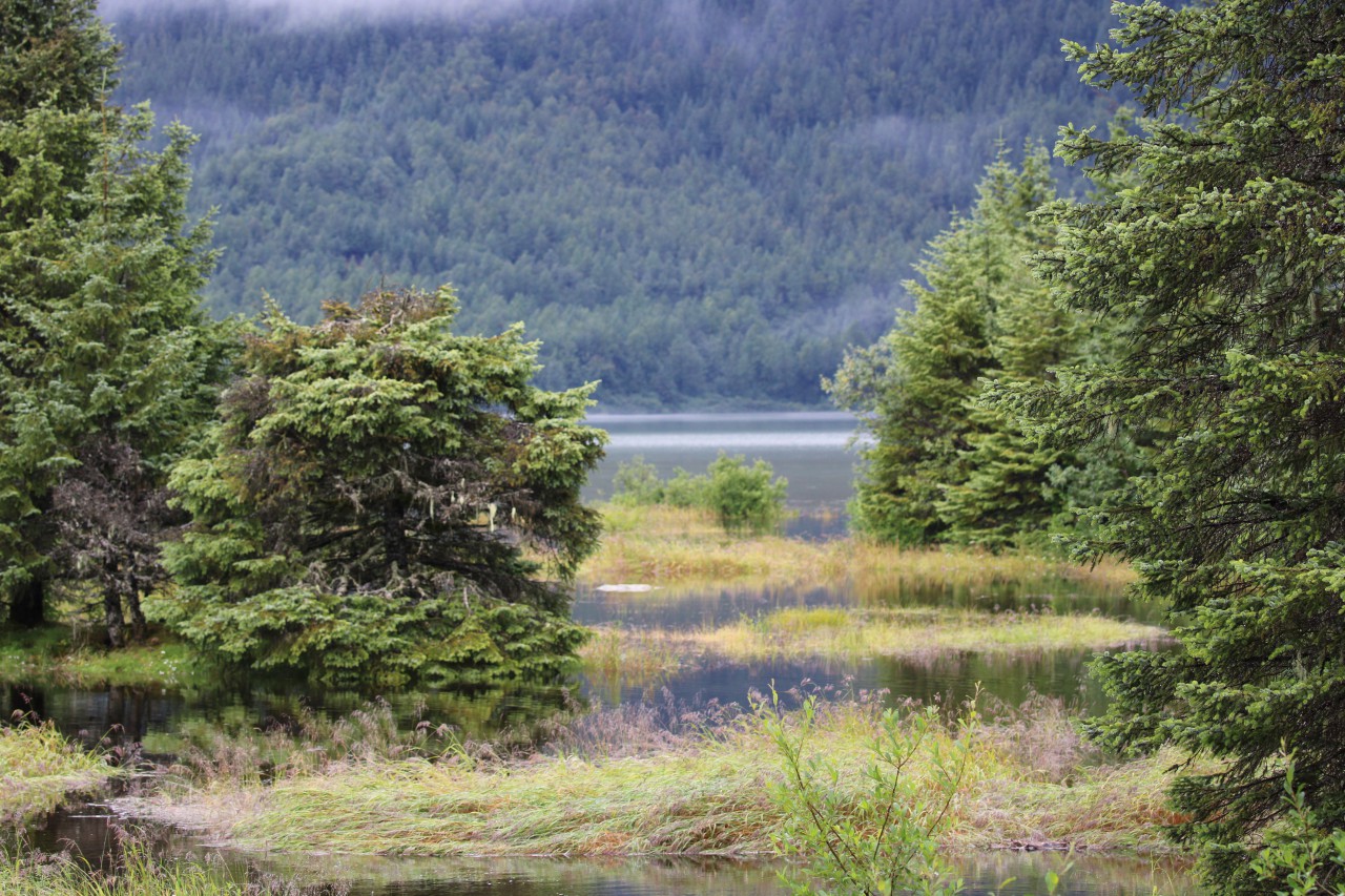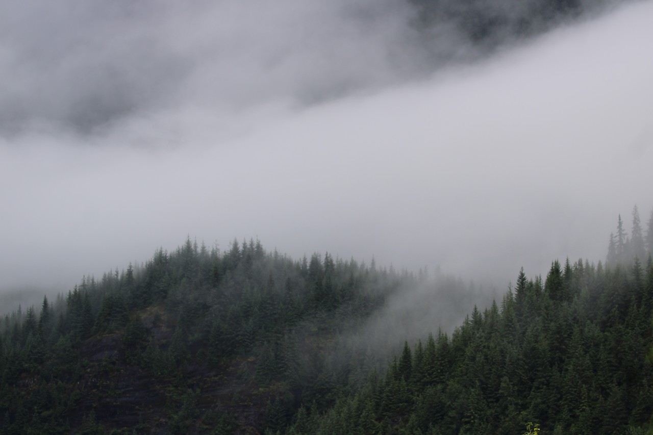 We zijn op tijd wakker en als we op ons balkon stappen, druilt de regen naar beneden. De bergen in het fjord zijn gehuld in dikke wolken en mist. Heeft op zich ook wel wat. We hadden vooraf al gezien dat er voor vandaag waarschijnlijk de hele dag regen werd voorspeld. Later blijkt weer hoe onvoorspelbaar die verwachtingen zijn. Ja, we hebben echt wel regen gehad, maar eerlijk gezegd viel het mee. Eén keer hebben we de capuchon opgezet, en die kon tien minuten later alweer af. Verder bleef het dreigend, maar in de loop van de dag trok de mist en nevel steeds verder weg. En nu, terwijl ik deze blog typ en we nog in de haven van Juneau liggen, is de mist helemaal verdwenen en zijn de bergen en toppen gewoon zichtbaar.