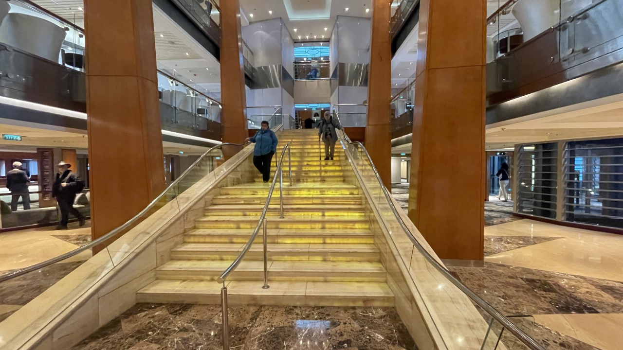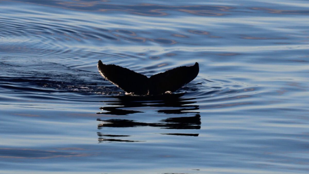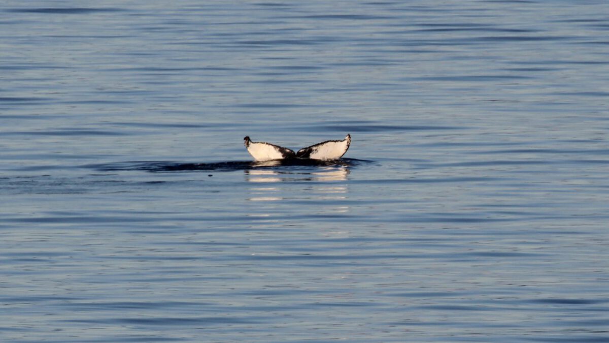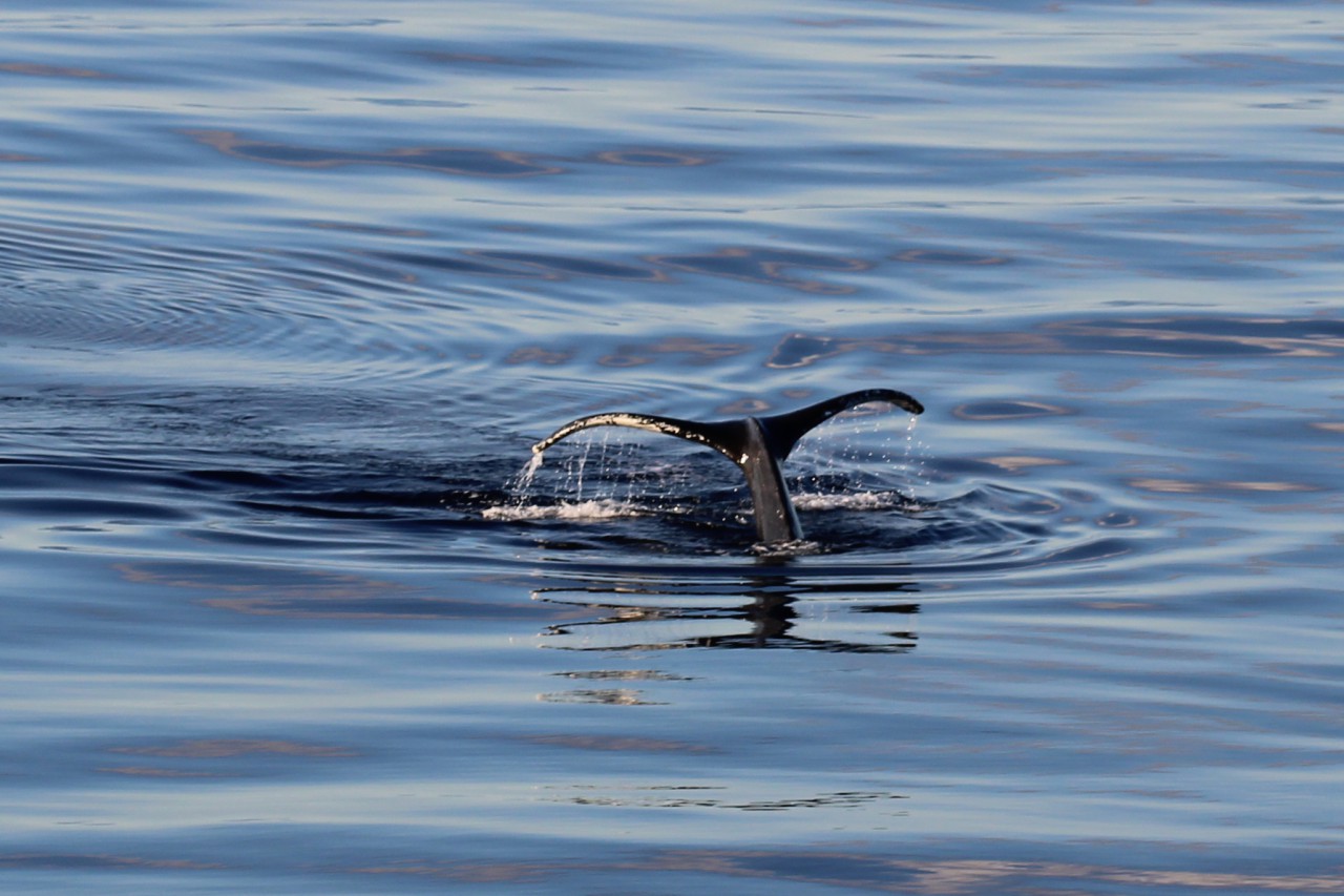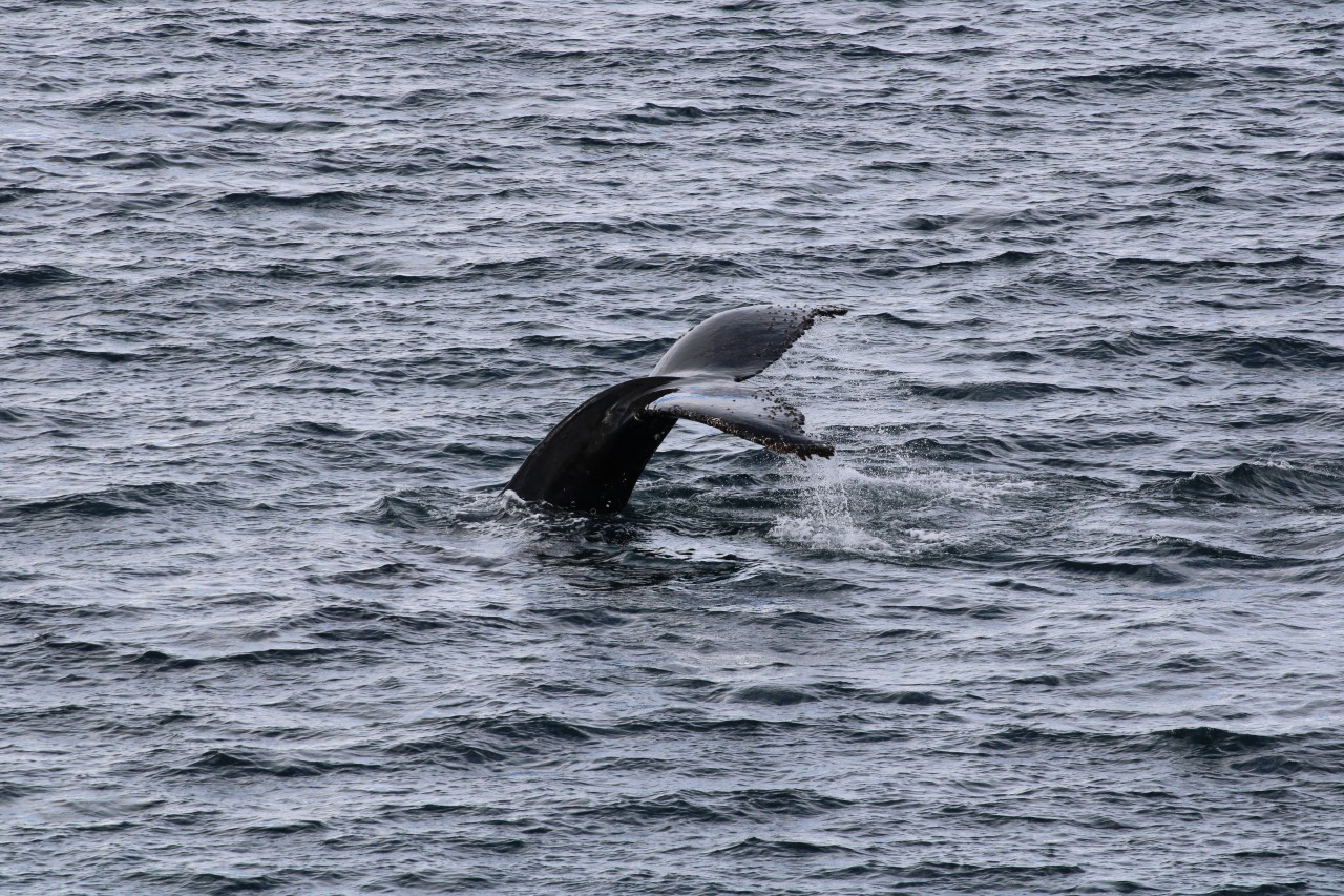 Zes uur varen verder zitten wij nog steeds op ons balkon, in het zonnetje, speurend naar de spray van walvissen. En laten we zeggen: ik ben gestopt met tellen hoeveel we er hebben gezien. Het waren er tientallen. Tussendoor hebben we gewoon ons diner gehad – even geen uitzicht – maar dat werd ruimschoots goedgemaakt.