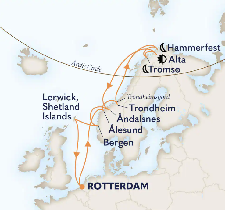 In mijn vorige post liet ik al voorzichtig vallen dat het een soort thuiswedstrijd zou worden. Nou ja, deels dan. Inschepen én ontschepen doen we dit keer gewoon in Rotterdam. Geen gedoe met vliegen, koffers slepen of tijdzones. Voor de rest gaan we wél weer lekker op pad: Noorwegen en Engeland staan op het programma. Ik neem jullie even mee in de route en wat we globaal gepland hebben.