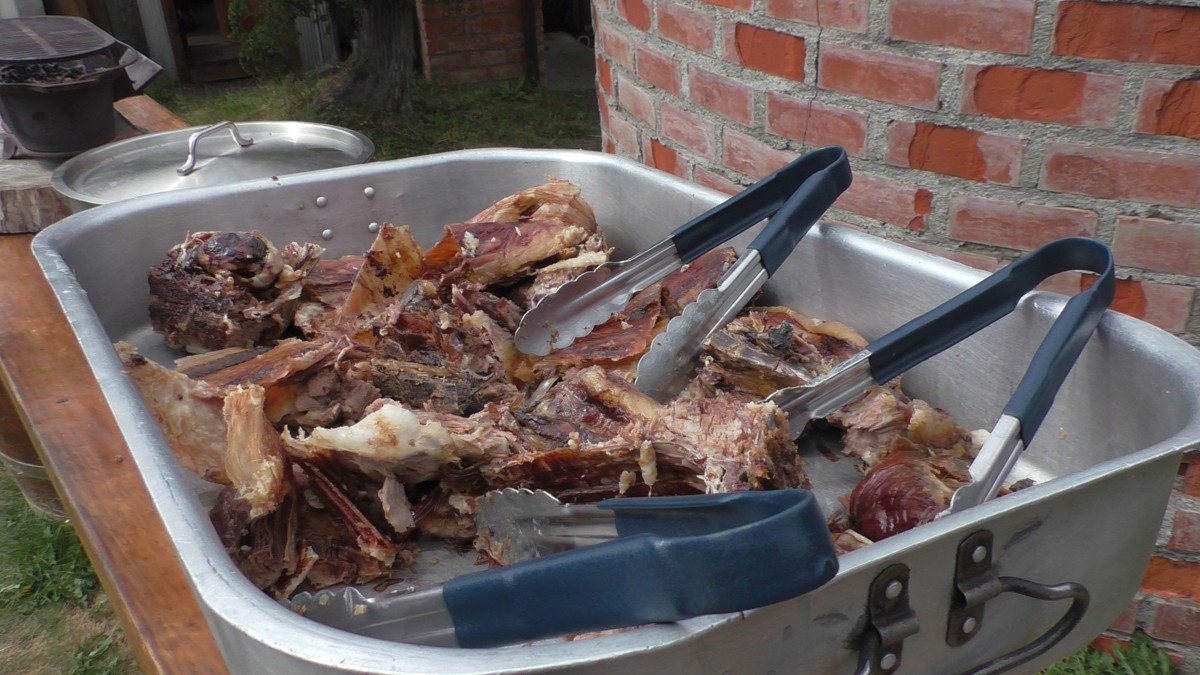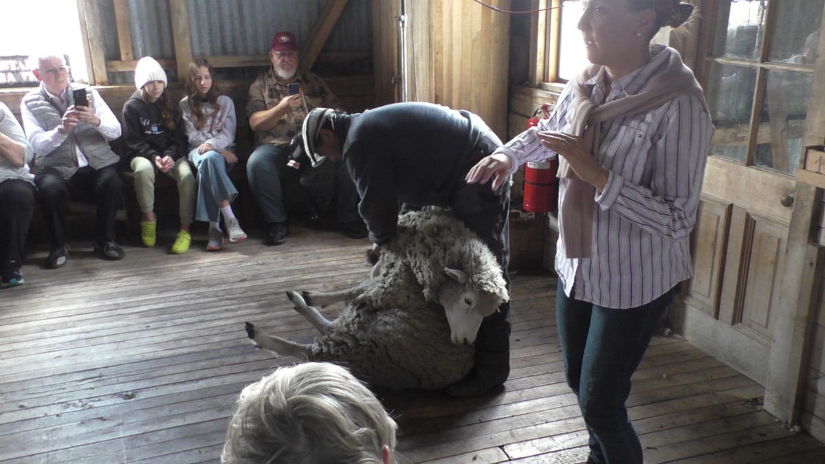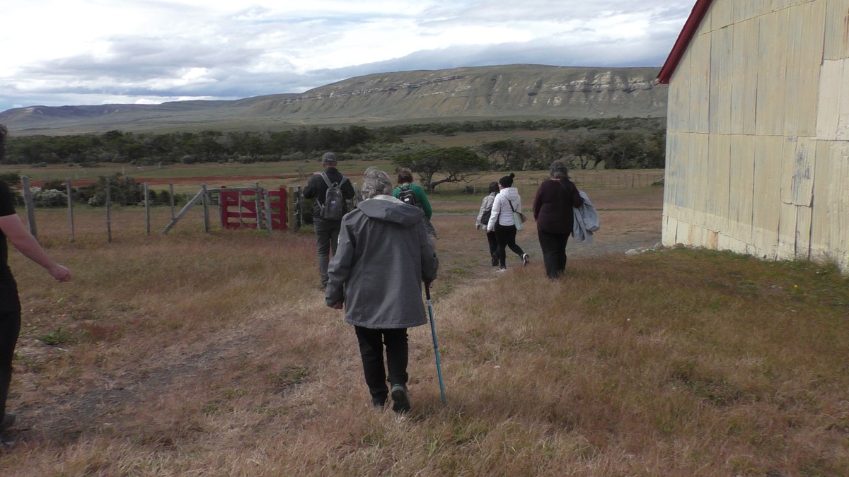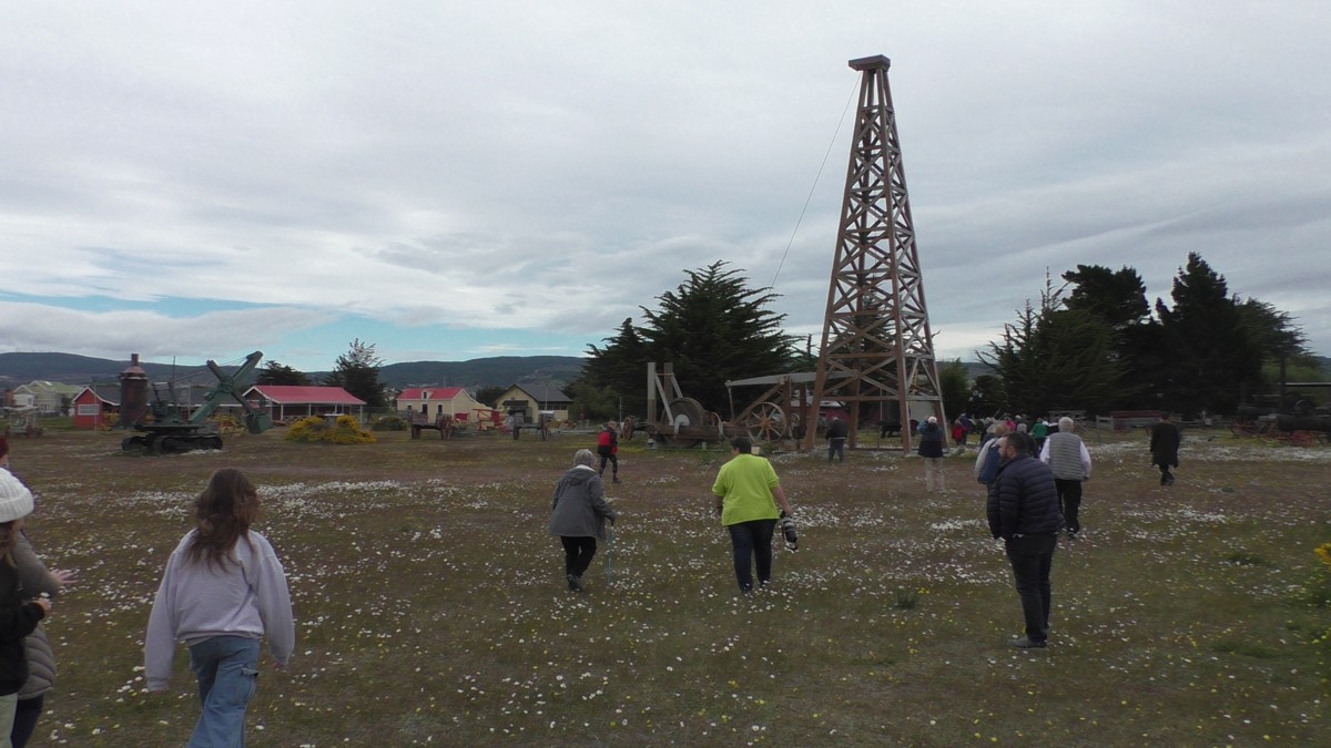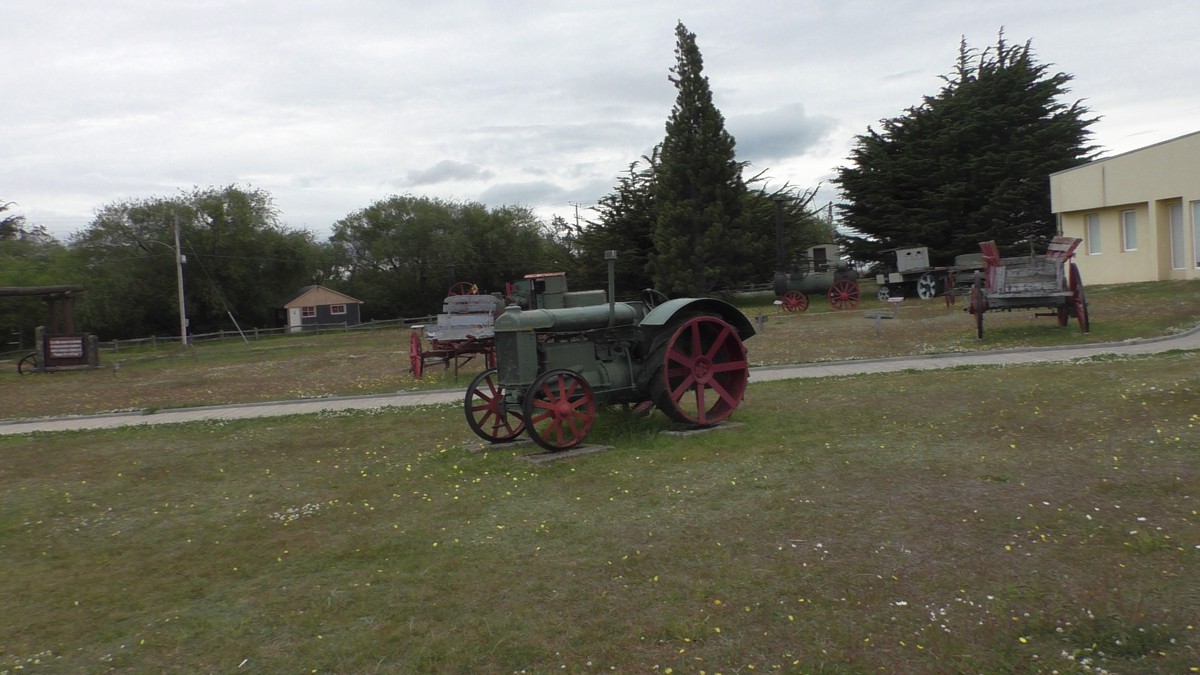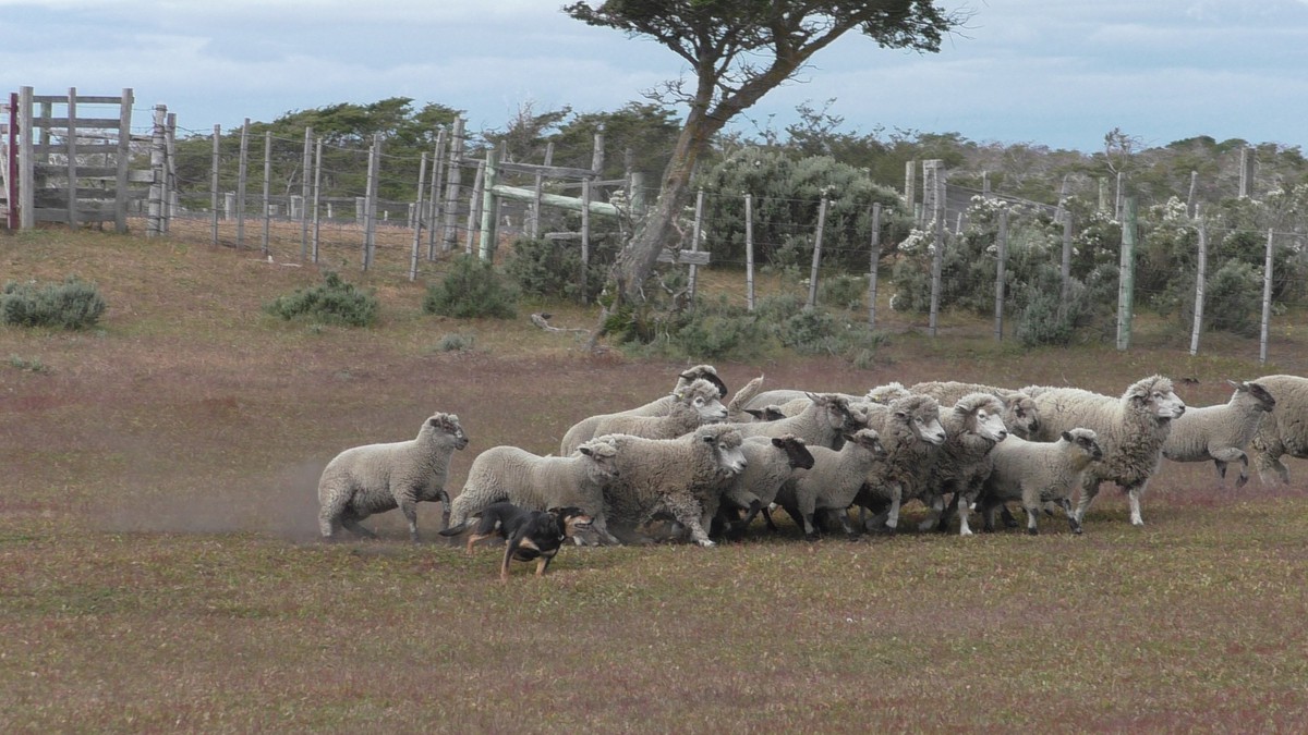 Onze boot kan niet aanleggen in deze haven dus we gaan weer tenderen. We zijn wel de eerste groep die van boord mag en worden met de Tender netjes naar de haven gebracht en daar staat een zeer luxe toeringcar op ons te wachten. We hebben de tour Punta Arenas Sights & Patagonian Estancia on the Pampas wat eigenlijk inhoud dat we een stukje van de stad gaan zien en we gaan naar een schapenboerderij, één van de hoofdinkomsten van deze streek.Eerst stoppen we bij een openluchtmuseum, deze is eigendom van het naast gelegen Techniek Universiteit en hier staan wat oude machines en materiaal. Leuk om dit even te bekijken, maar we blijven niet al te lang, want we moeten nou een goed 1.15 uur in de bus naar de schapenboerderij die echt midden in de patagonische pampus ligt. De boerderij is een echt familiebedrijf en we worden door de dochter van de eigenaar hartelijk ontvangen met een lokale snaps en worden gelijk uitgenodigd aan tafel te gaan zitten. We krijgen heerlijk lamsvlees voorgeschoteld en na deze heerlijke lunch volgt er een demonstratie hoe honden de schaapskudde onder bedwang houden. Leuk om te zien en ook hoe slim de hond is om de kudde bij elkaar te houden. Na deze demonstratie laten ze zien hoe een schaap wordt gescheerd. Nou hebben wij dat al veel vaker gezien, want onze buurman vroeger in de Kraaijenberg had zelf meerdere schapen en we hebben het vaak genoeg gezien en geholpen bij het scheren. Wol was tot voor een paar jaar de voornaamste inkomensbron, maar sinds de prijs van een kilo wol gedaald is van 7 dollar naar 0,70 dollarcent is het nu vooral het vlees wat meer opbrengt.