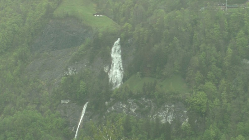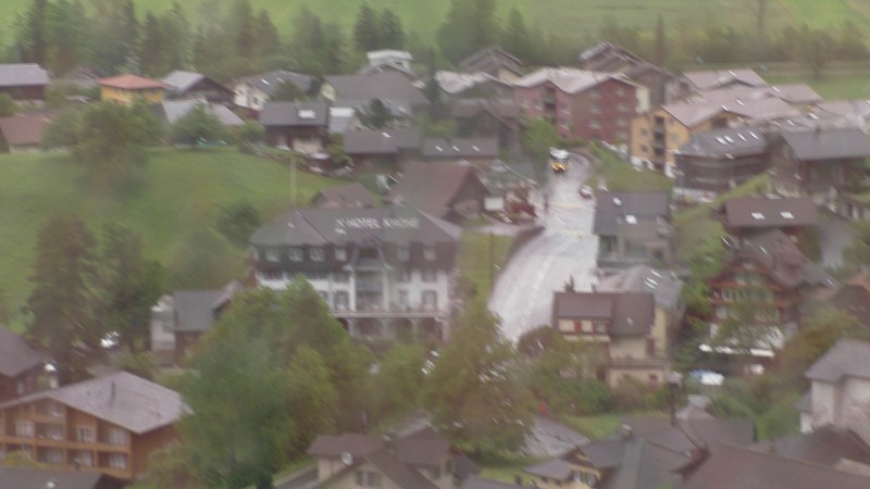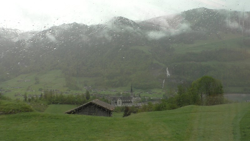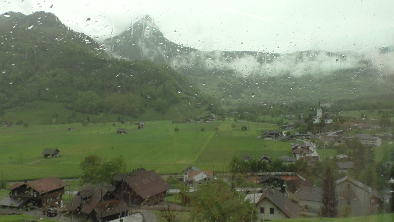 Inmiddels is het weer wat aan het miezelen, is nog niet zo heel erg, maar genoeg om ook weer aan de terugreis te denken. Onze treinreis is onderdeel van onze interrailpass (3 dagen onbeperkt reizen) dus we lopen op ons gemak naar het station en stappen weer in de trein die ons in 2 uur en 9 minuten terug brengt naar Wilderswil.