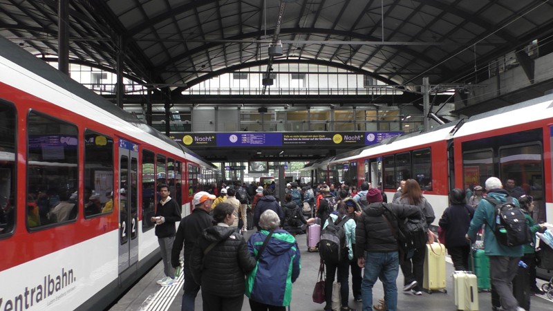 We gaan met de trein vanuit Wilderswil naar Luzern, het is een erg mooie route met zelfs een aantal keren flink klimmen en dalen (naar boven de 1000m). Je hoort duidelijk de tandrad zijn best doen.