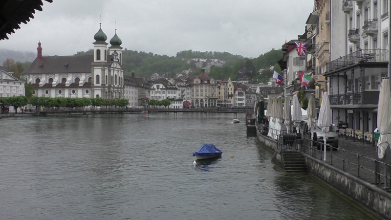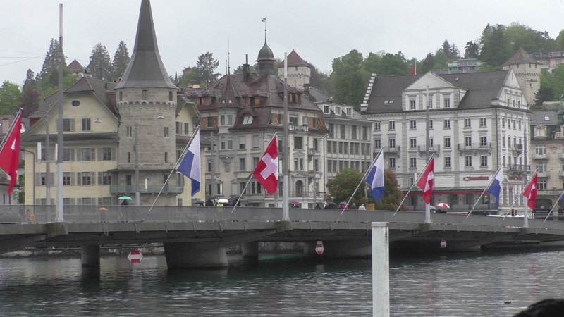 Tja, en dan zit het weer toch een beetje tegen. De voorspelling is regen, regen en nog meer regen. Dus wat ga je dan doen. Je zoekt een stad op. Hmmmm, lastig. We hebben al zoveel stadjes gezien, maar Luzern is wel een leuk stadje en heeft ook nog een paar mooie herinneringen aan de toenmalige treinreis van Bertie en Rien in 2007.