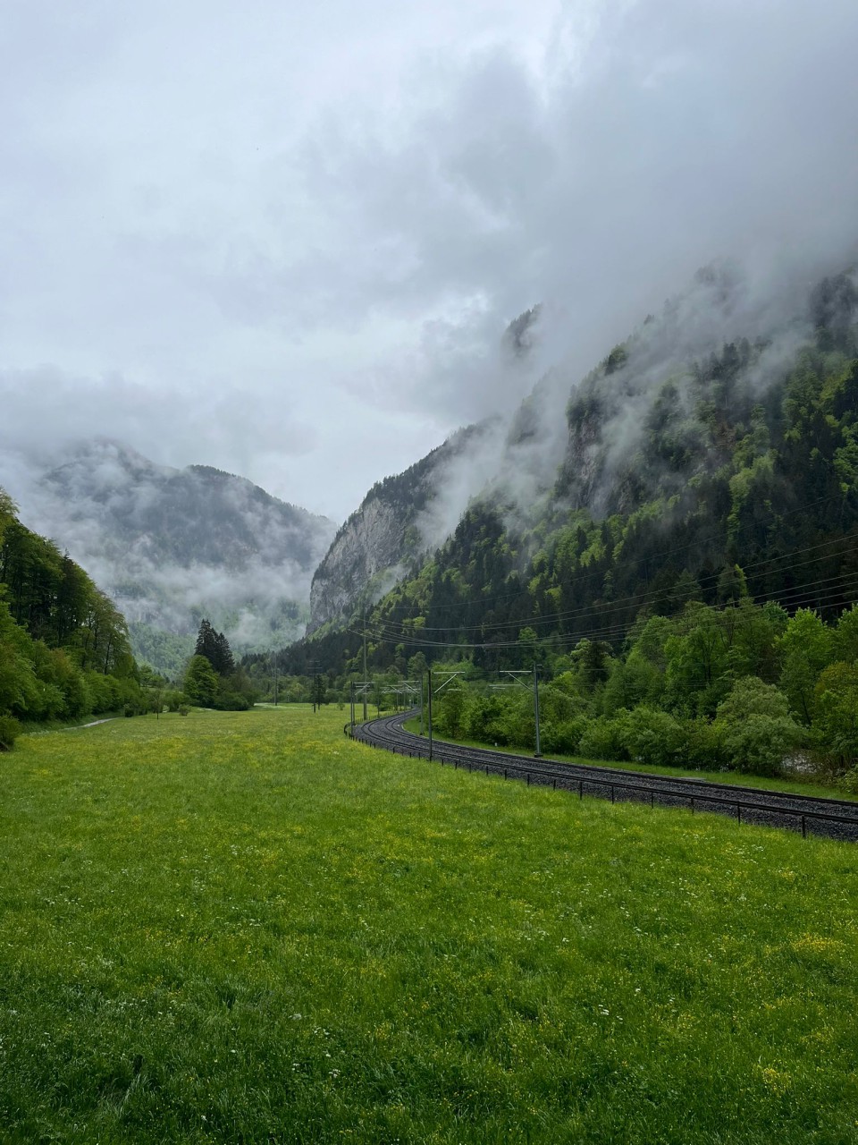 Inmiddels is het weer wat aan het miezelen, is nog niet zo heel erg, maar genoeg om ook weer aan de terugreis te denken. Onze treinreis is onderdeel van onze interrailpass (3 dagen onbeperkt reizen) dus we lopen op ons gemak naar het station en stappen weer in de trein die ons in 2 uur en 9 minuten terug brengt naar Wilderswil.