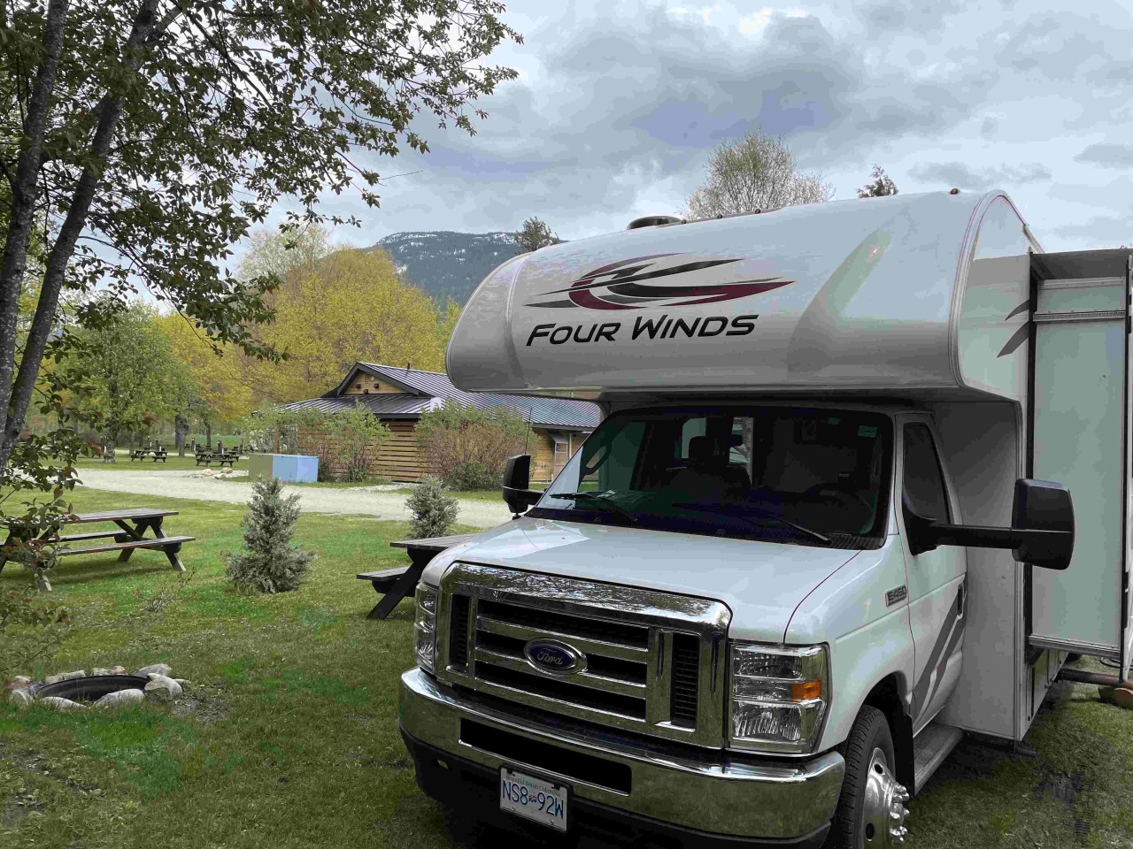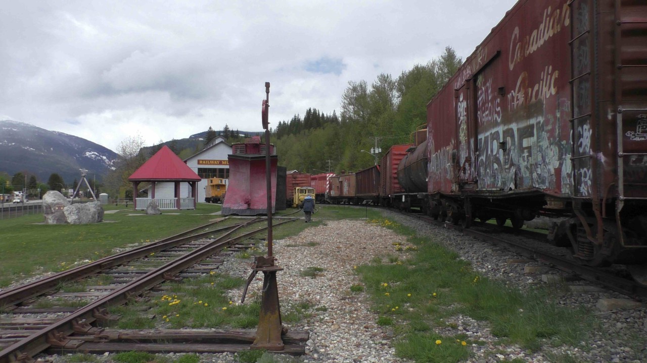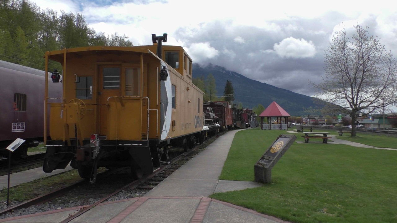 Vannacht heeft het ook geregend en als je het tikken op het dak hoort slaapt dat best lekker. We hebben geen wekker gezet dus toen we wakker werden hebben we eerst koffie gezet en daarna pas gegeten. We willen later in de ochtend naar het dorpje lopen om daar het trein museum te bezoeken. Revelstone is een belangrijk knooppunt voor goederenverkeer per spoor en dit begin al in 1885 toen ene Lord Revelstone vond dat er een spoorlijn moest komen en dit ook met zijn bank financierde.