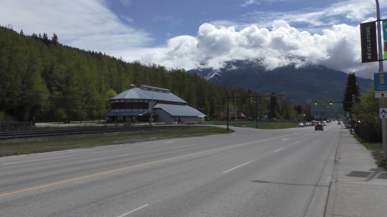 We lopen verder richting de mainstreet op zoek naar een koffietent. Ja ze hebben we een starbucks in Revelstoke, maar die staat net aan de andere kant van het dorpje en dat vonden we net iets te ver lopen. In downtown zijn er ook genoeg koffietentjes en we genieten even later van een heerlijke cappuccino met een apple-pie. Het weer is afwisselend, zo schijnt de zon, maar af en toe komt er een windvlaag vanuit de bergen en die is erg fris, dus het is afwisselend de jas dicht en jas open, maar het allerbelangrijkste is het is droog.