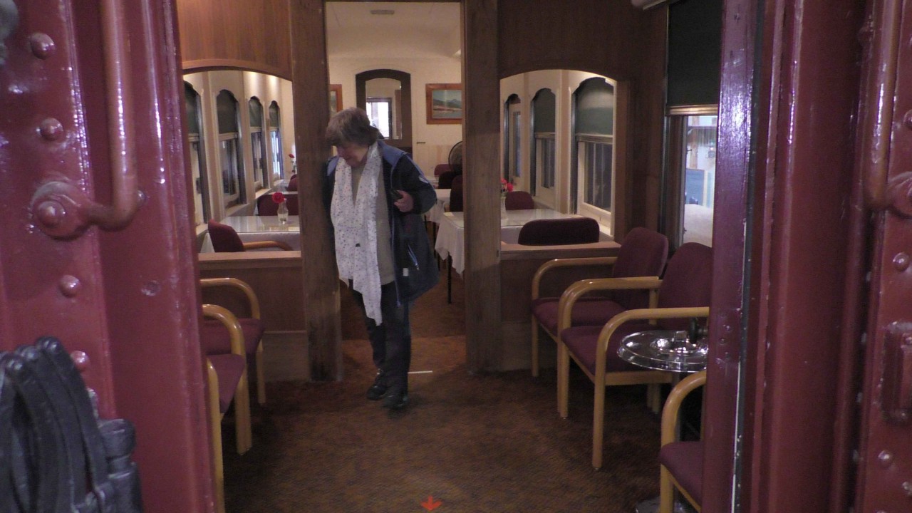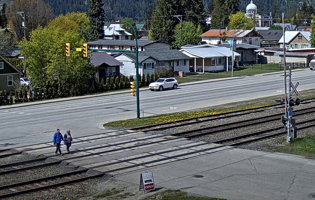 We lopen vanaf de camping direct een ijzeren brug op die over de Colombia rivier gaat en lopen door een woonwijk naar de hoofdstraat, daar is ook tevens het spoorwegmuseum. Het is er erg rustig, tenminste staan er 3 auto’s geparkeerd……… Het museum heeft ook een webcam die live streamt op YouTube en we hebben even teruggekeken en ja hoor je ziet ons aan komen lopen. Grappig………
