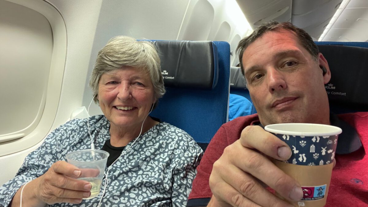 De terugreis verliep verder heel relax, ook de comfortstoelen waren hun geld weer waard. Bertie heeft nog als afzakkertje een wijntje genomen en ik heb jet bij koffie gehouden. We hebben niet echt kunnen slapen, dus dat wordt straks nog een uitdaging.