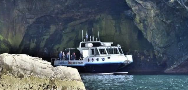 Als het weer meewerkt, varen we ook langs de indrukwekkende rotsboog Giant's Leg. Zo'n natuurverschijnsel waarvan je hoopt dat de zee rustig genoeg is om er dichtbij te komen.