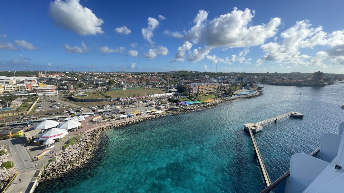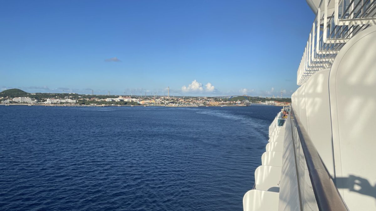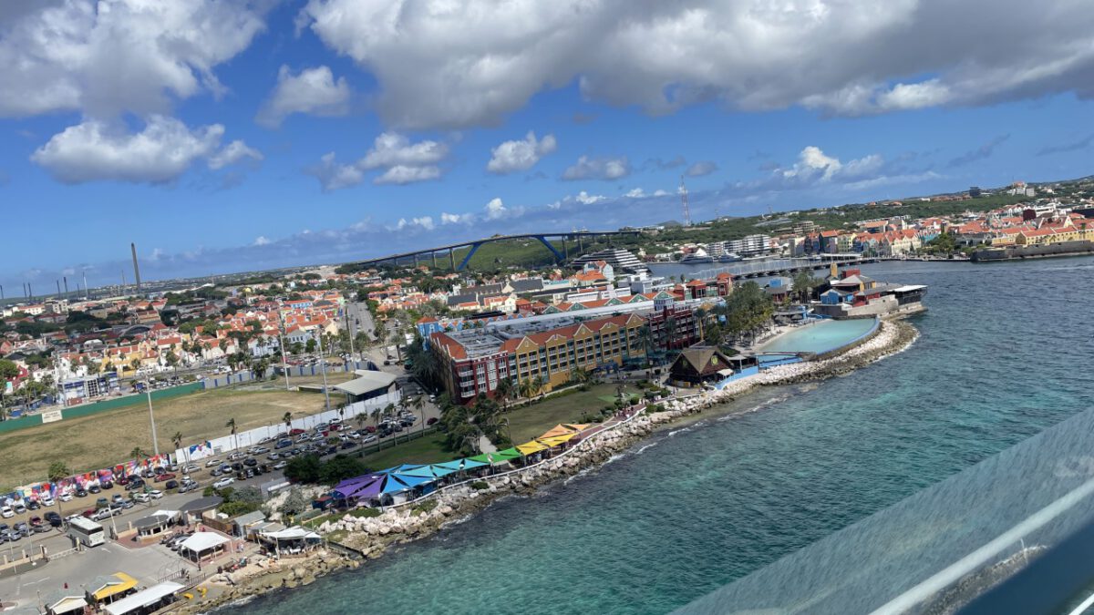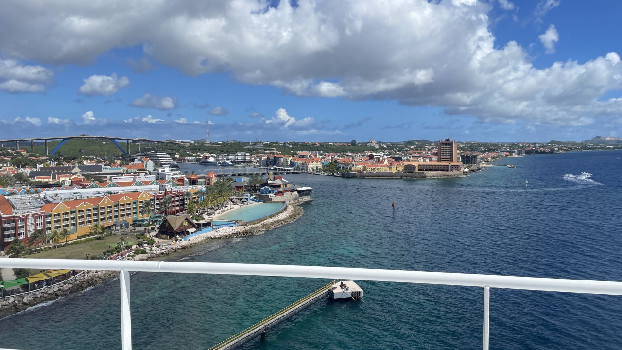 Vandaag ook nog een stukje Hollands grondgebied. We zijn vanochtend al heel vroeg aangekomen op Curaçao. Bij het opendoen van de gordijnen stond de zon al uitbundig te schijnen.